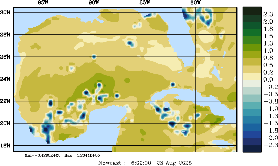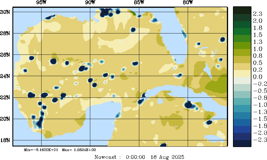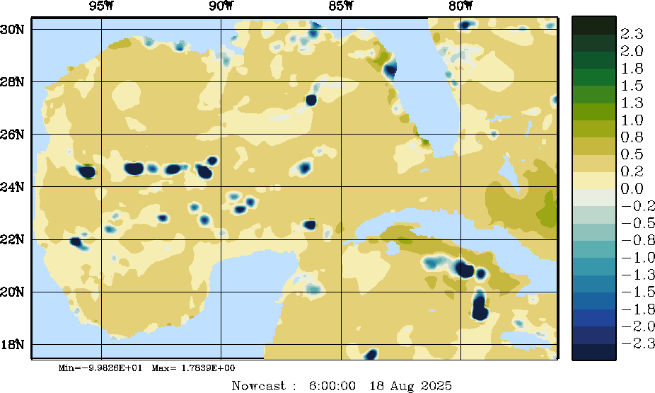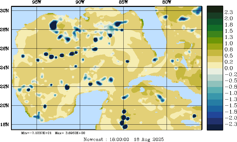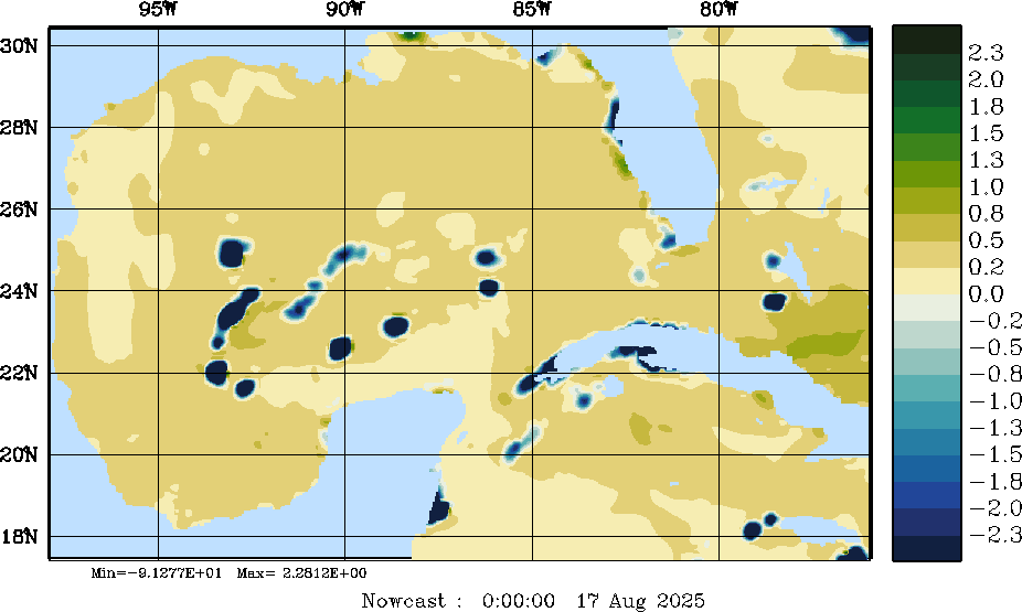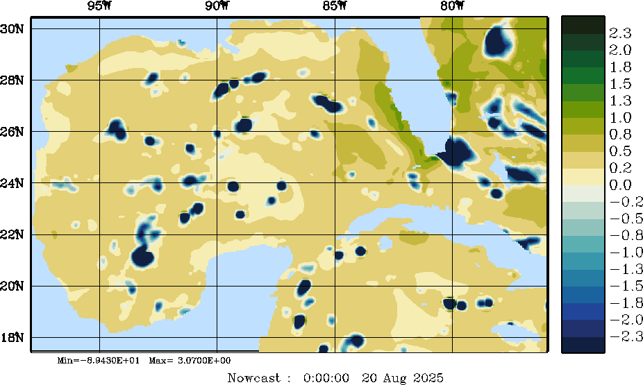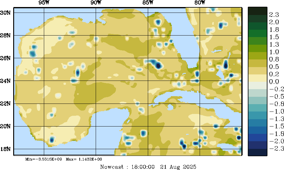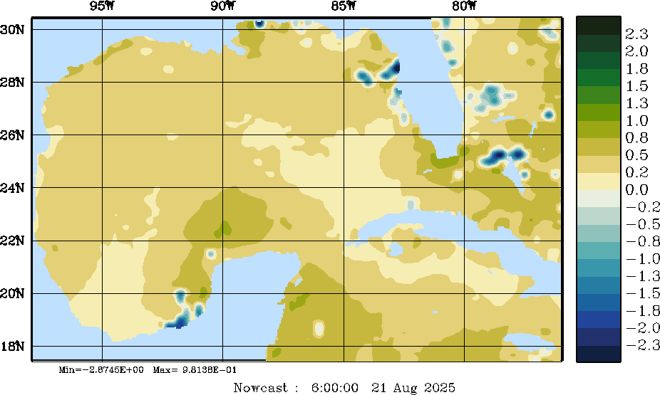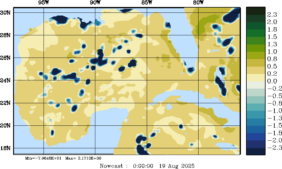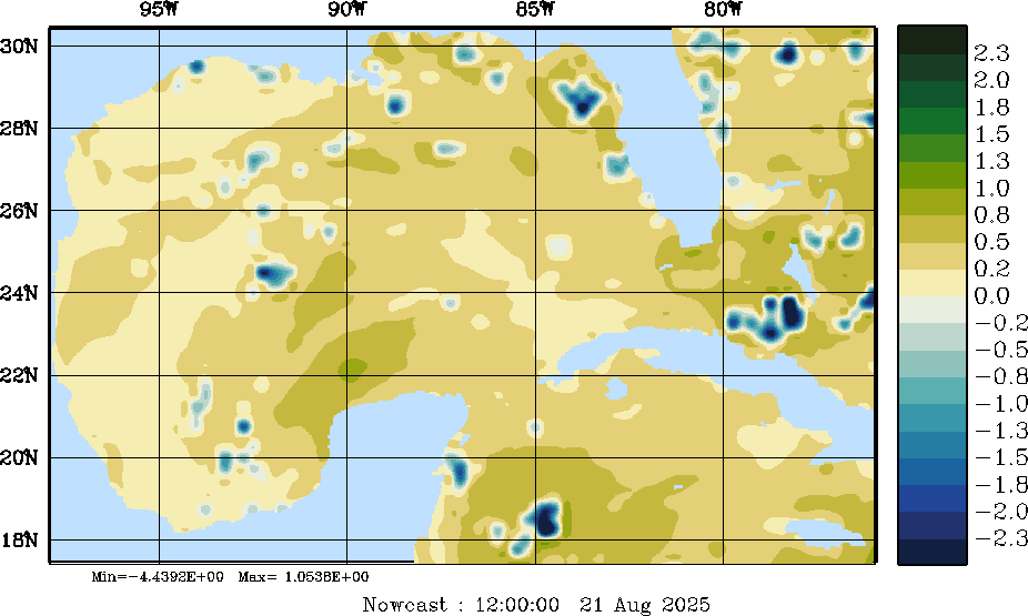 | E - P Snapshots (cm/day); processed by MSEAS from merged NCEP fields |
