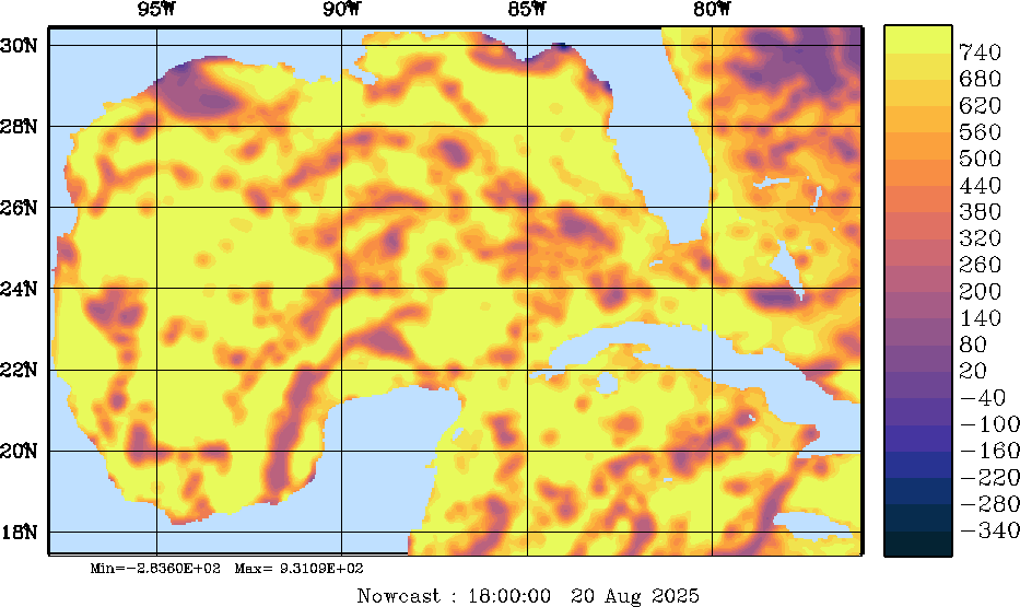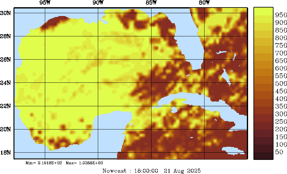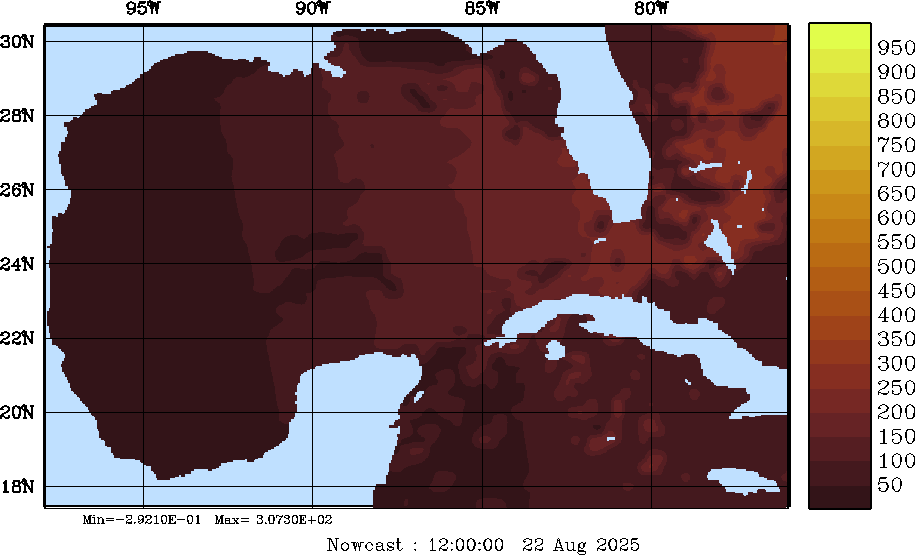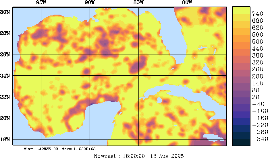 | SW Radiation Snapshots (W/m2); processed by MSEAS from merged NCEP fields |