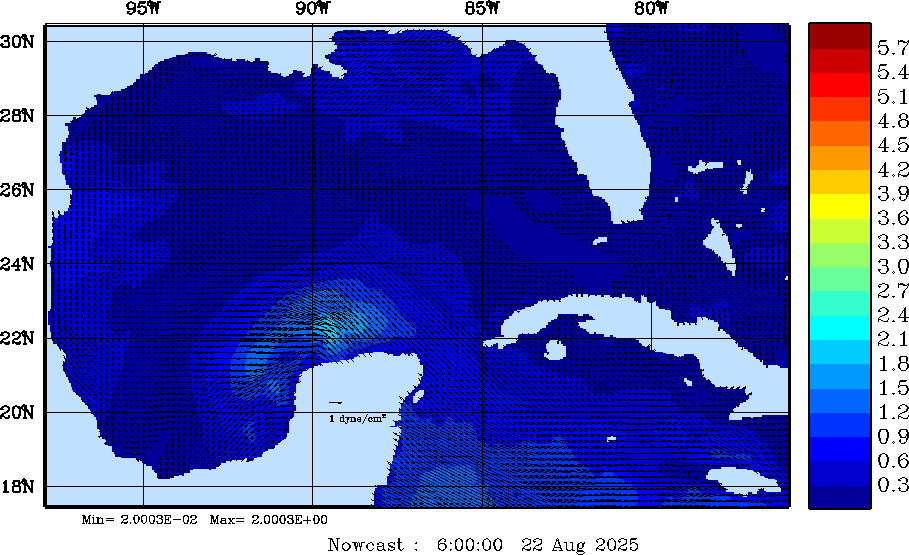 | Wind Stress Snapshots (dynes/cm2); processed by MSEAS from merged NCEP fields |