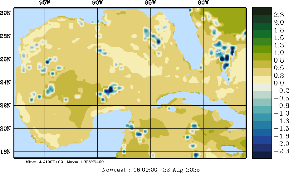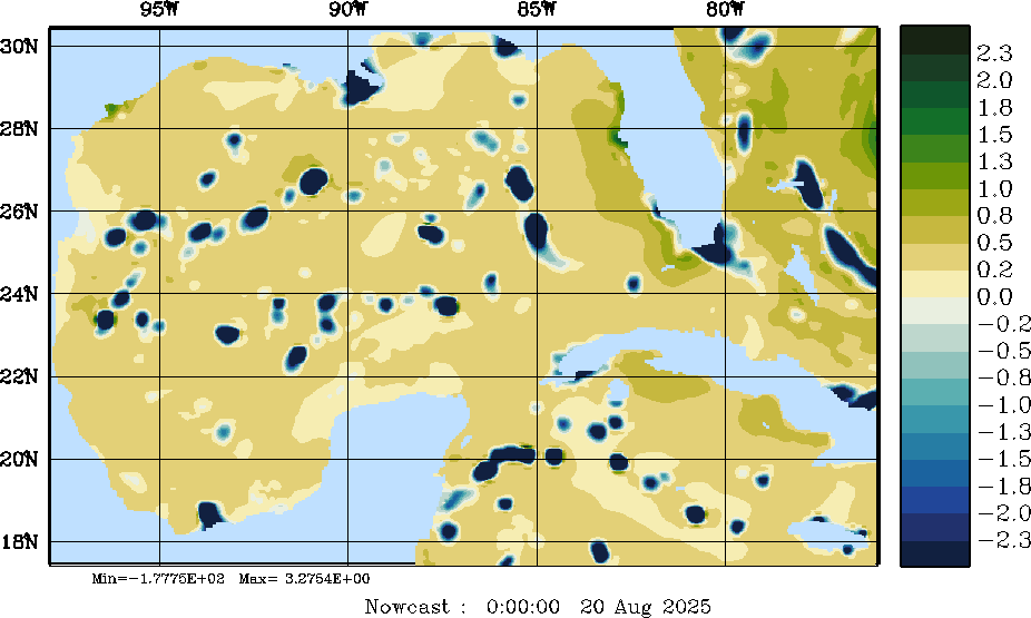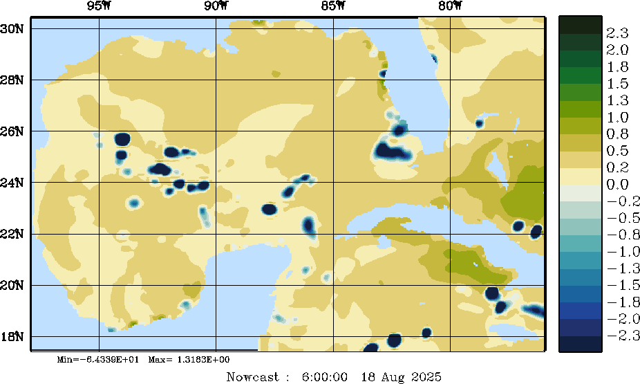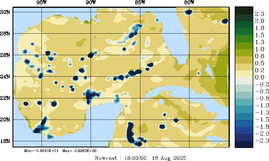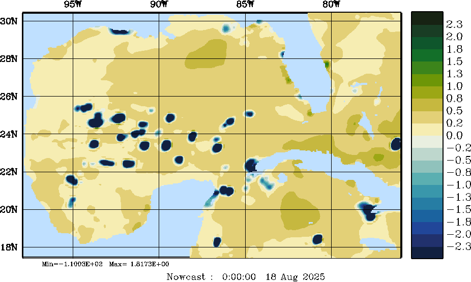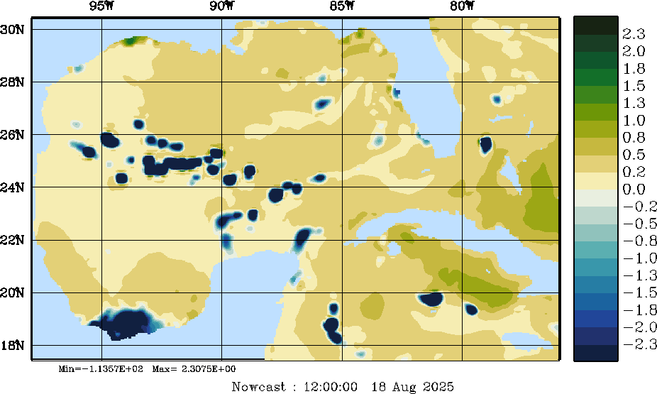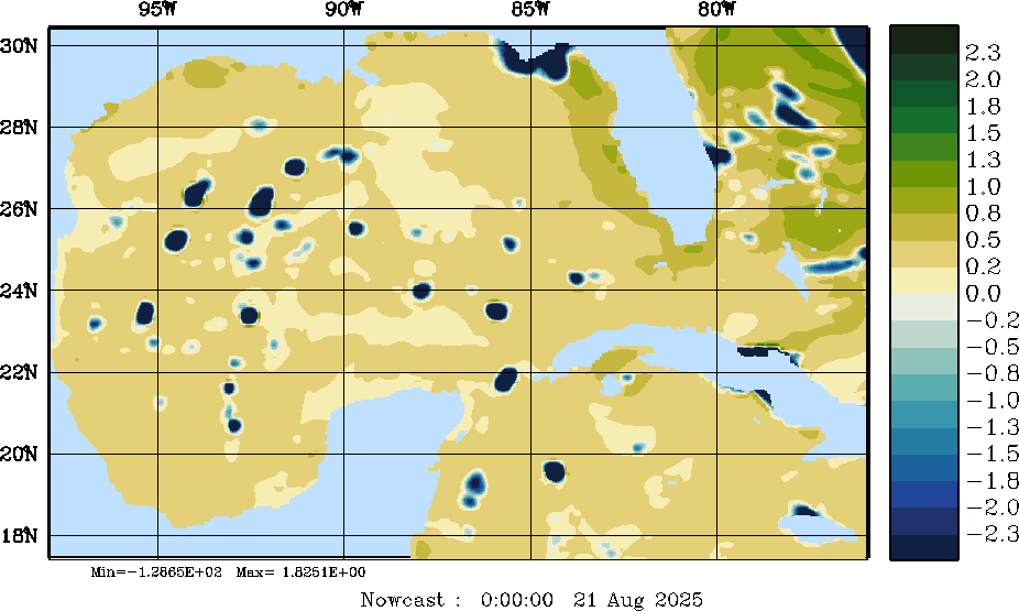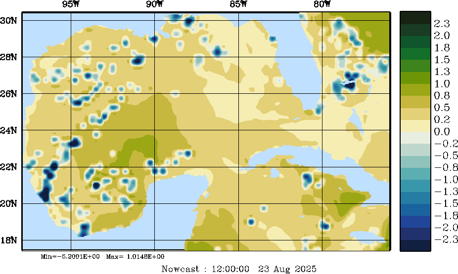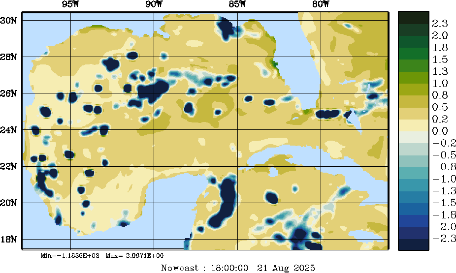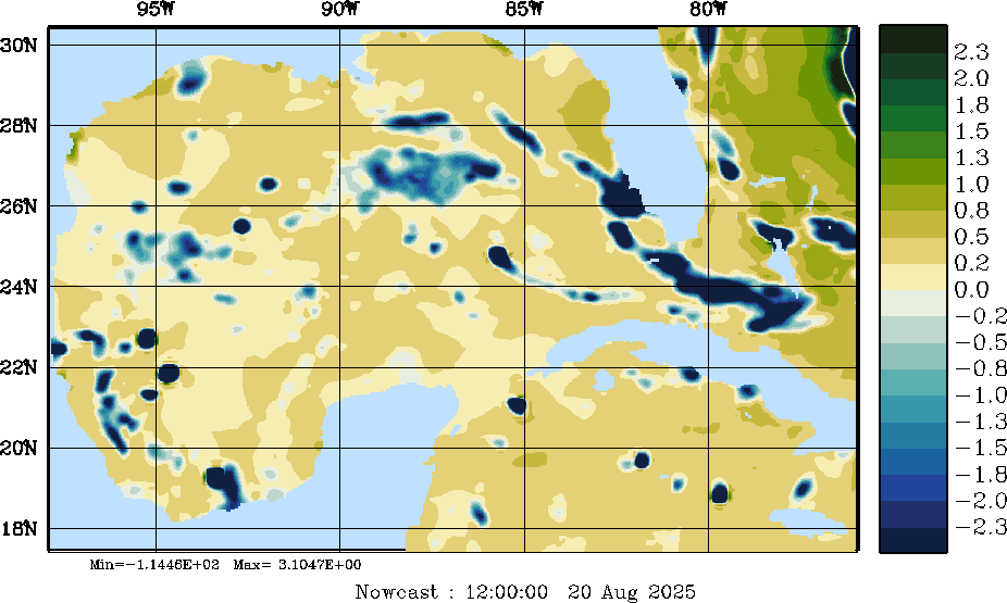 | E - P Snapshots (cm/day); processed by MSEAS from merged NCEP fields |