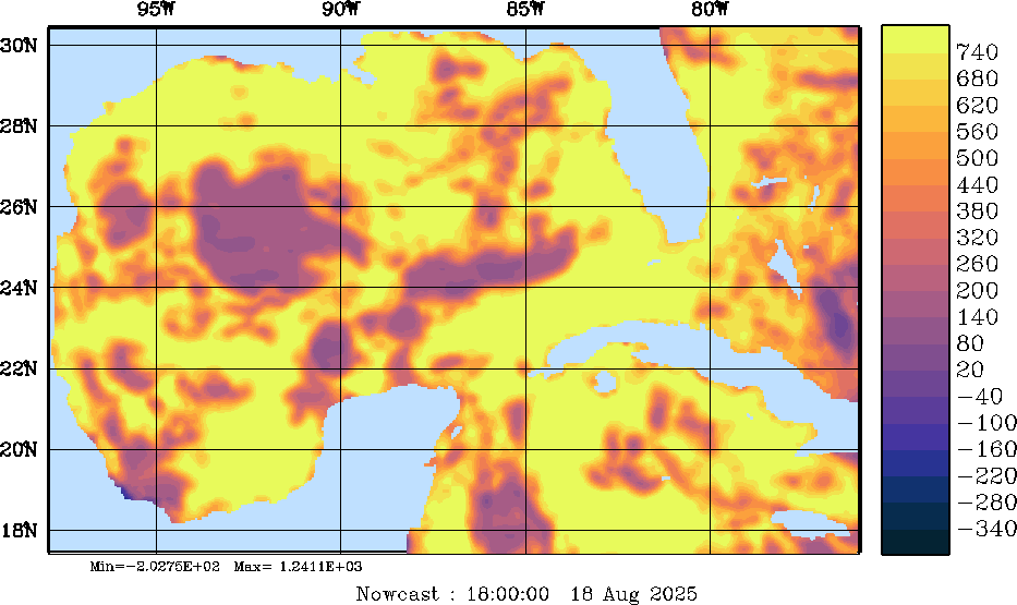 | SW Radiation Snapshots (W/m2); processed by MSEAS from merged NCEP fields |