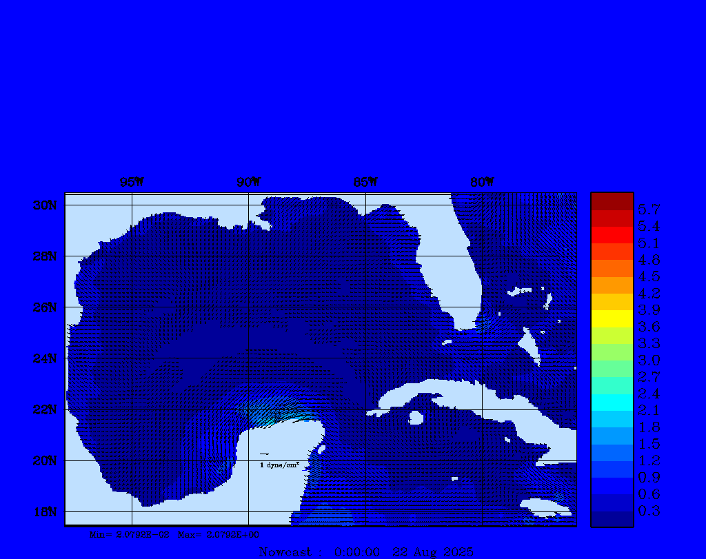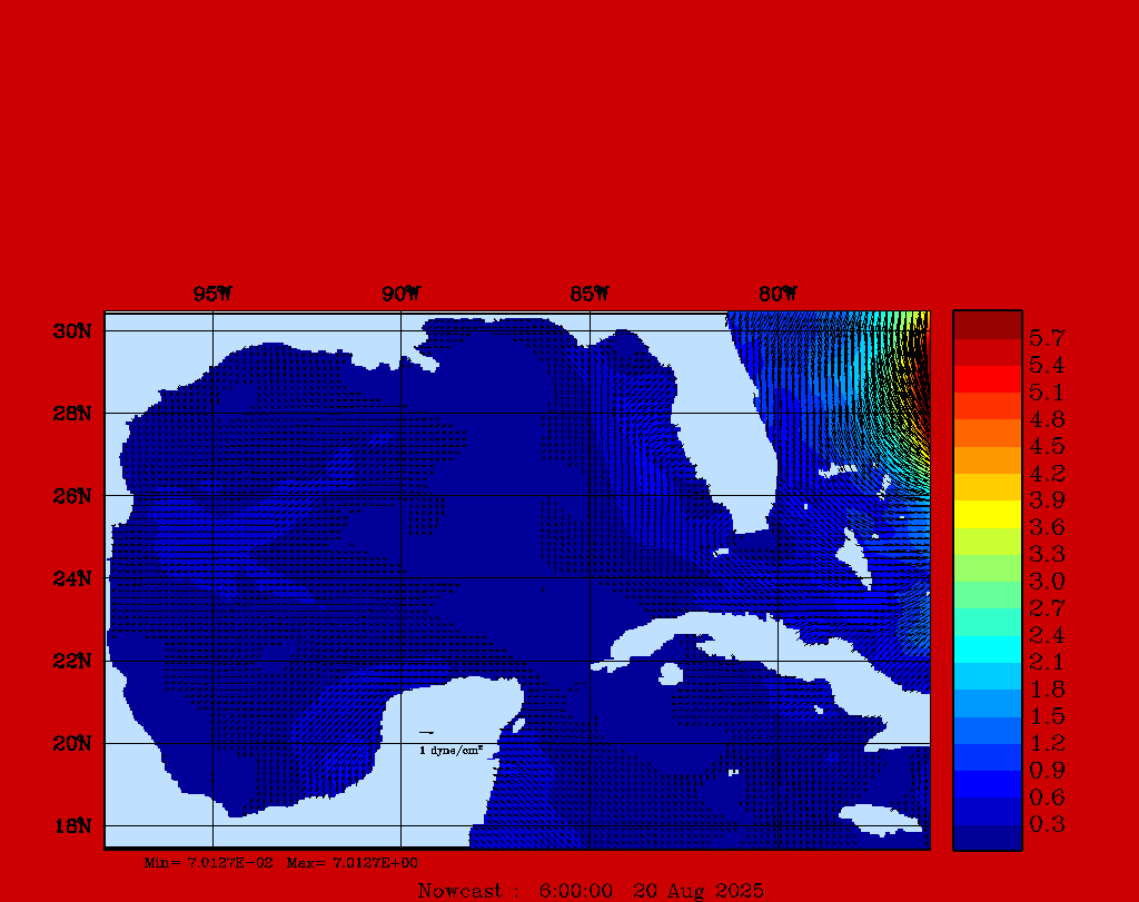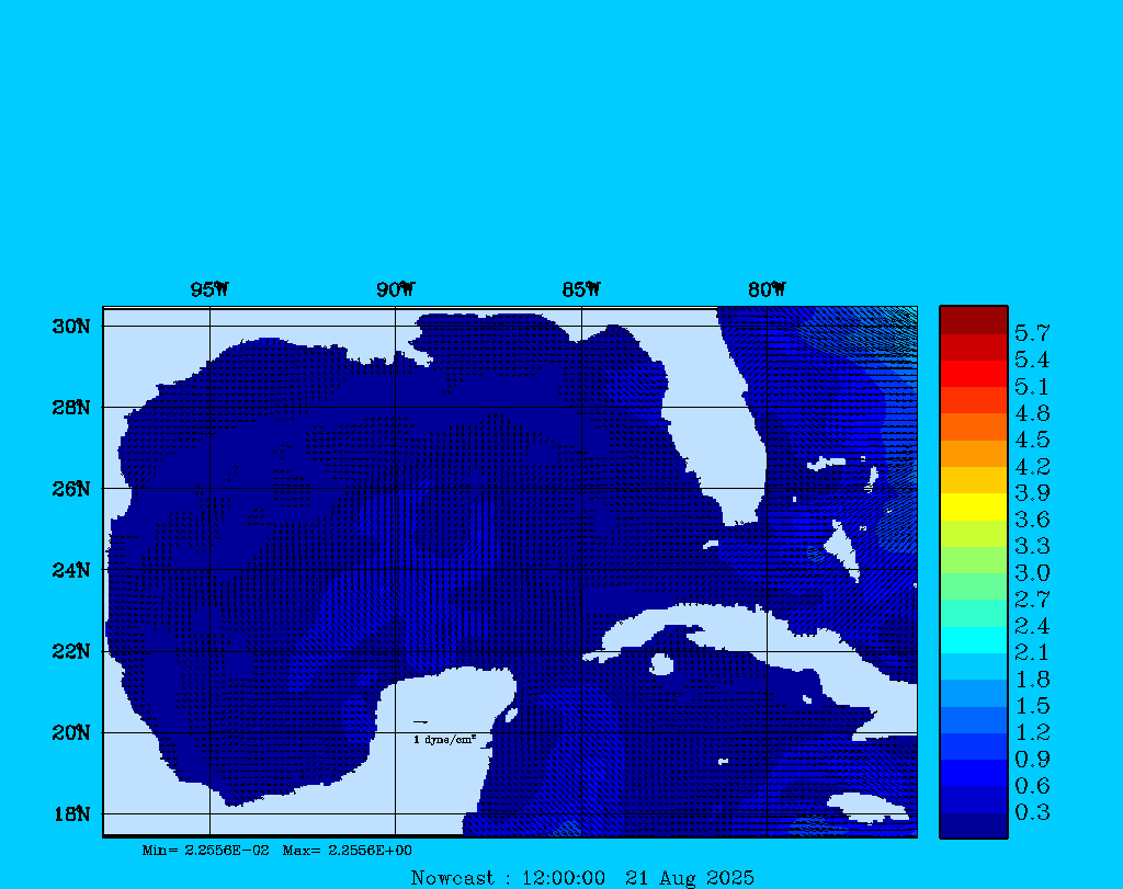 | Wind Stress Snapshots (dynes/cm2); processed by MSEAS from merged NCEP fields |