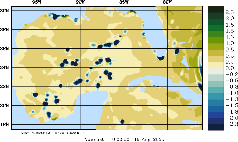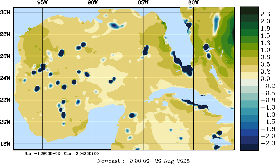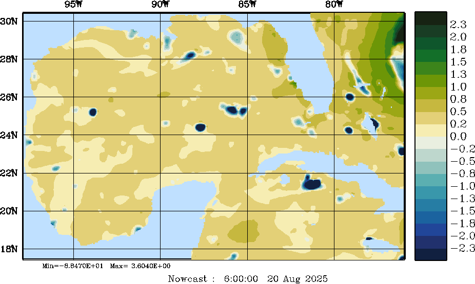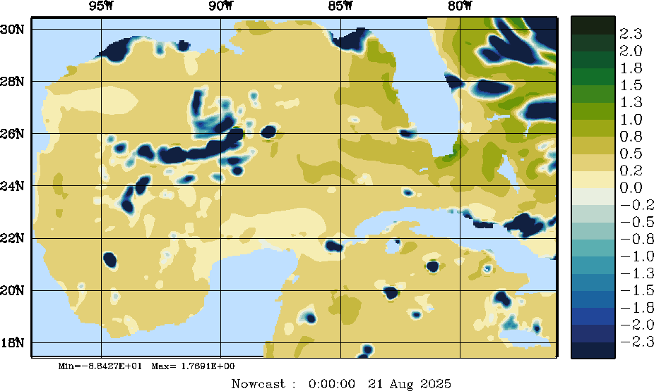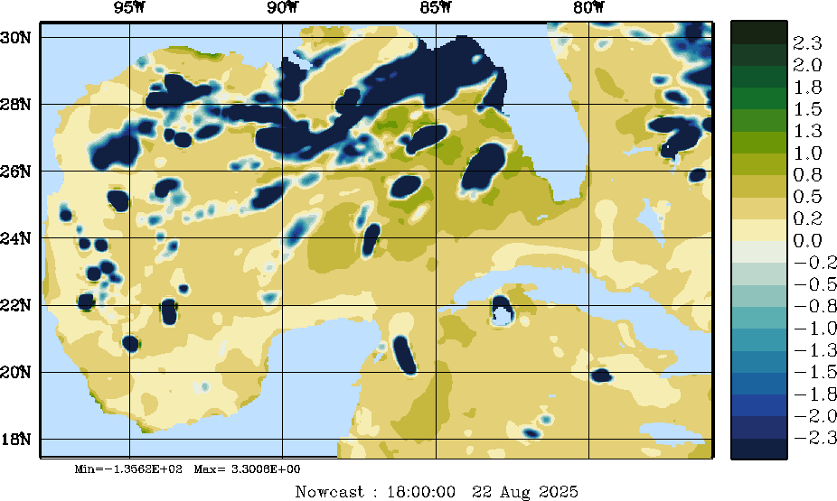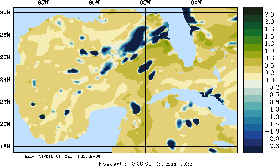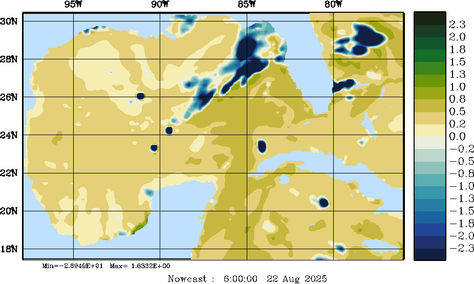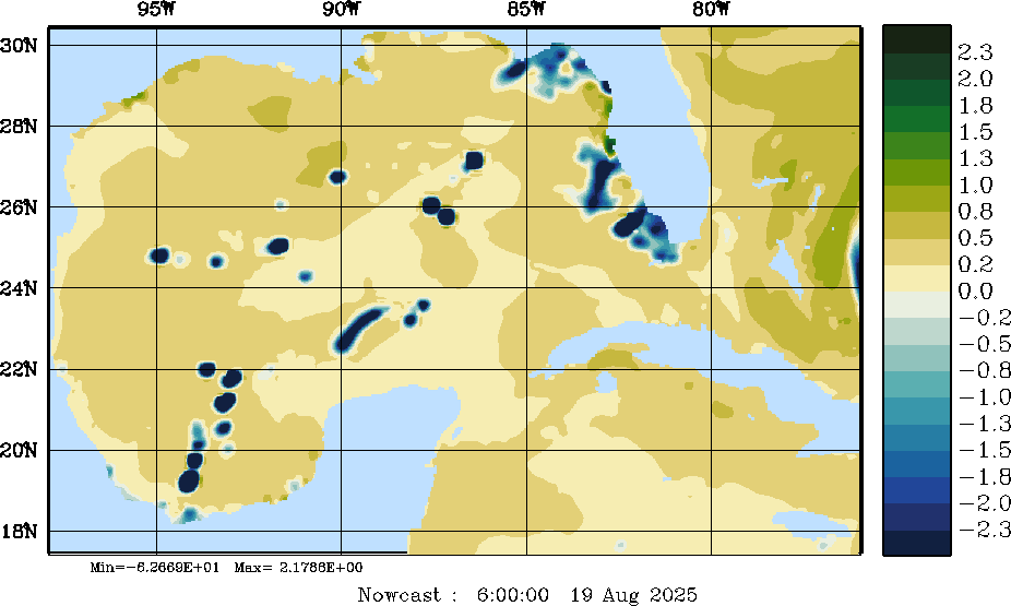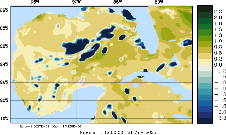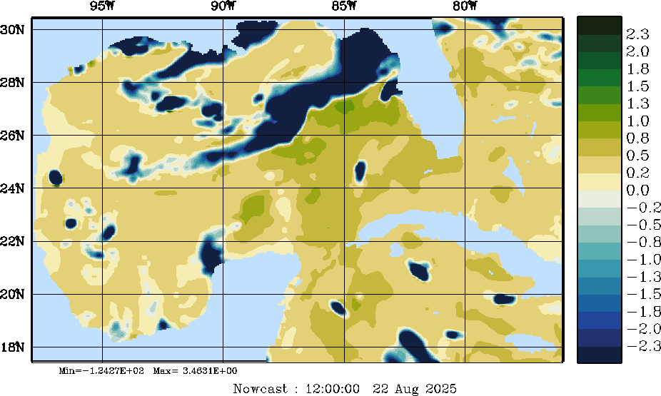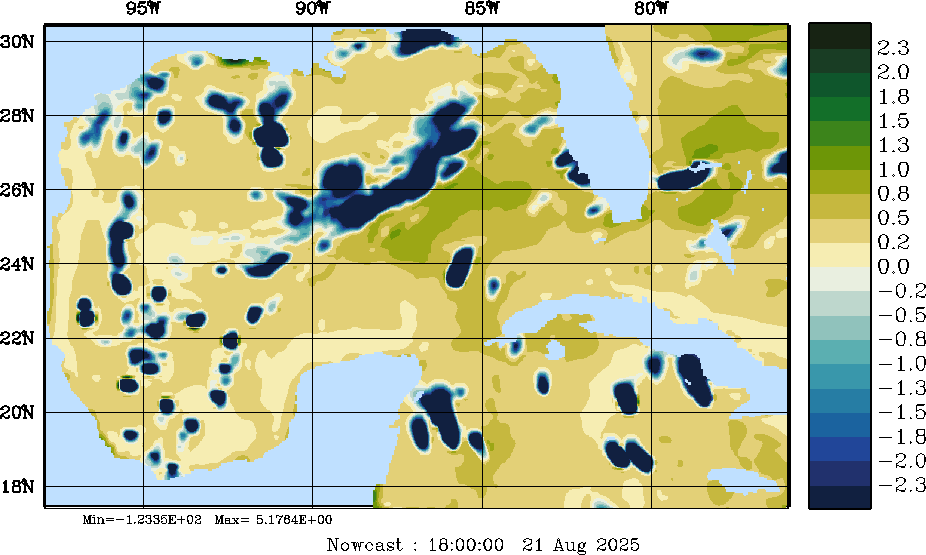 | E - P Snapshots (cm/day); processed by MSEAS from merged NCEP fields |