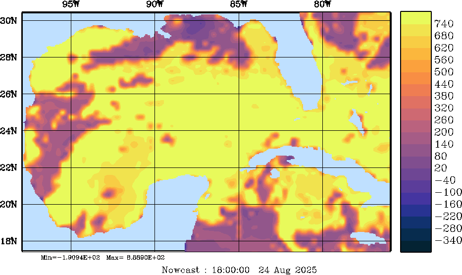 | SW Radiation Snapshots (W/m2); processed by MSEAS from merged NCEP fields |