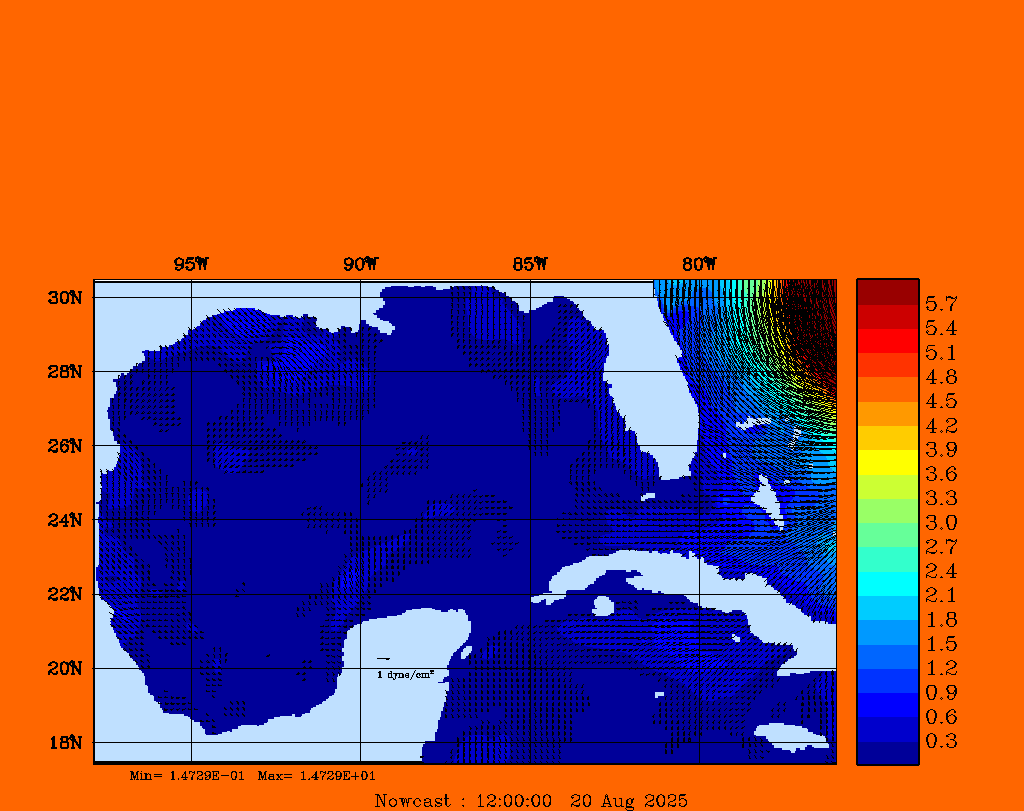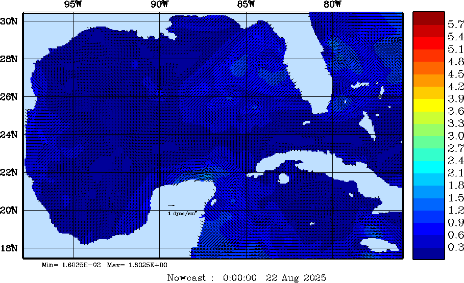 | Wind Stress Snapshots (dynes/cm2); processed by MSEAS from merged NCEP fields |