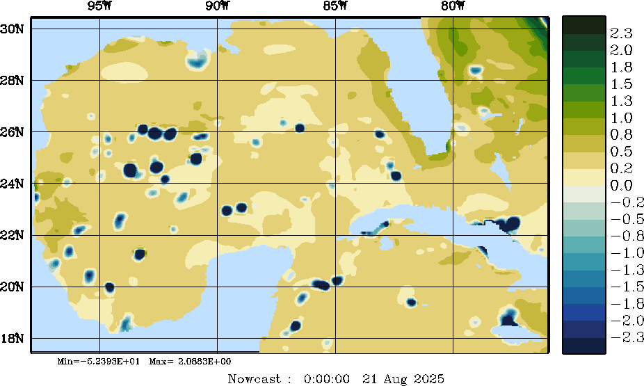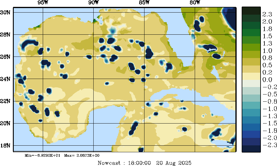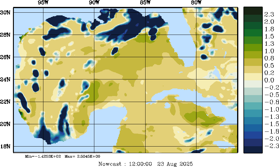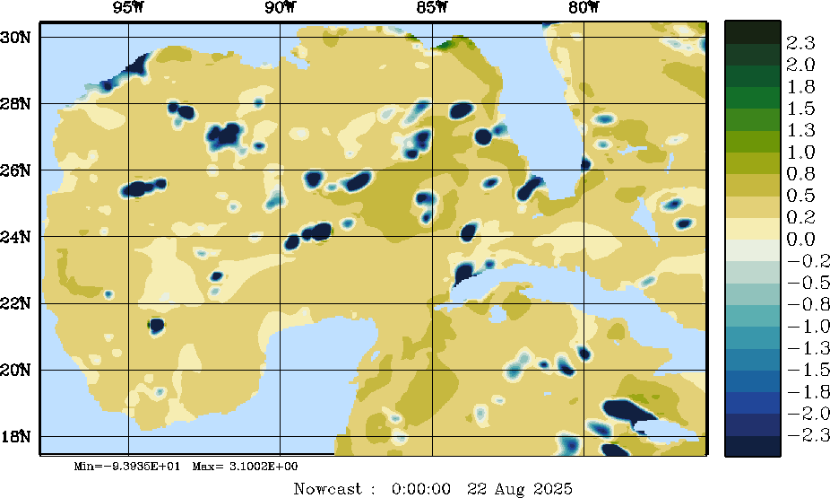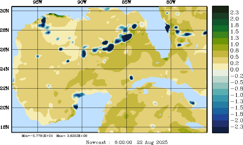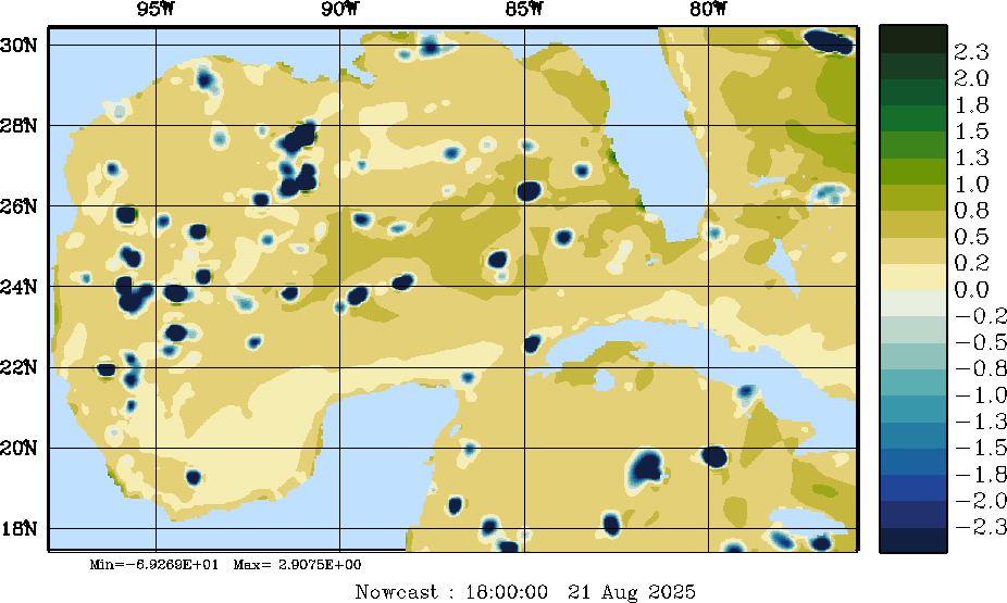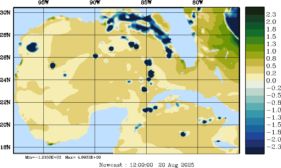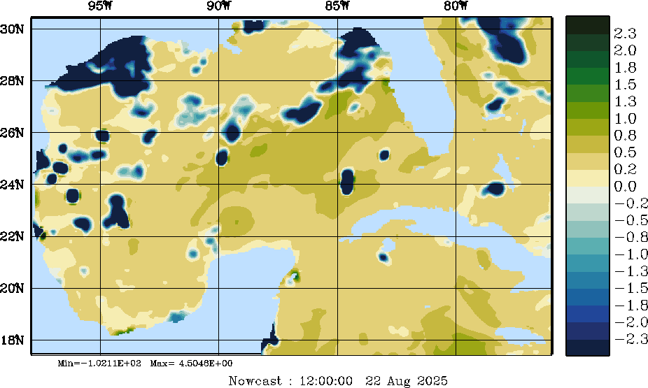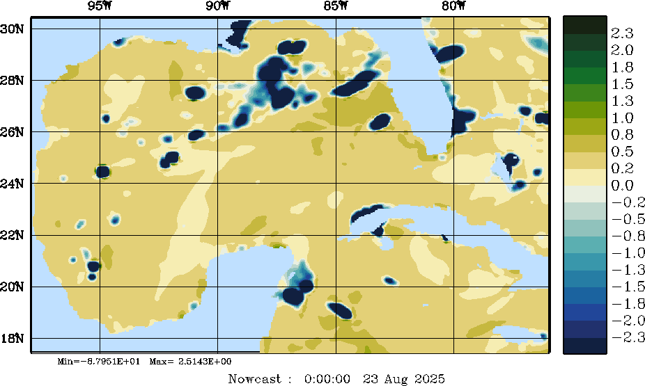 E - P Snapshots (cm/day); processed by MSEAS from merged NCEP fields |