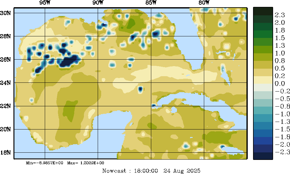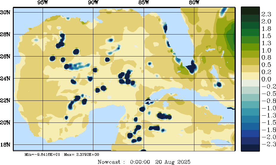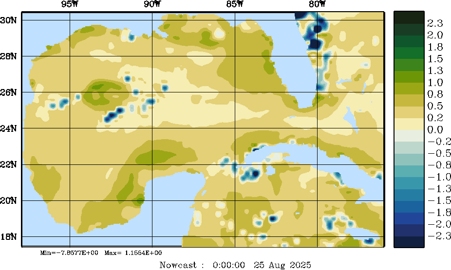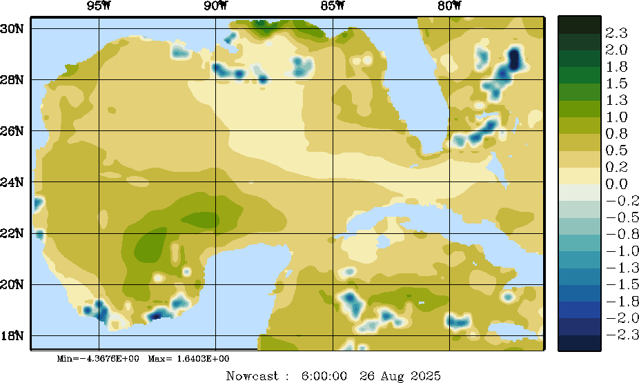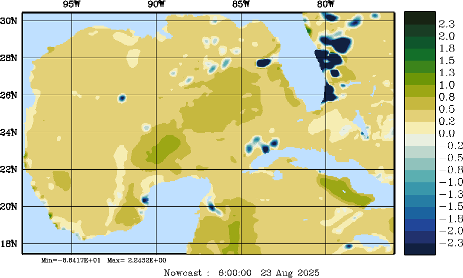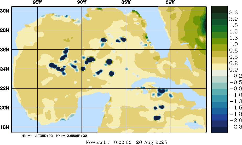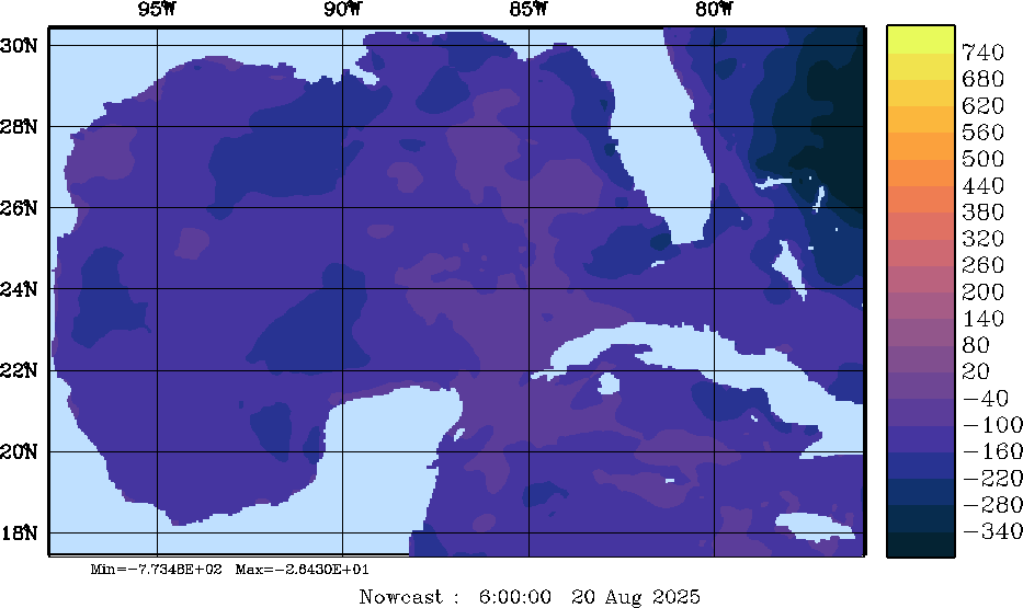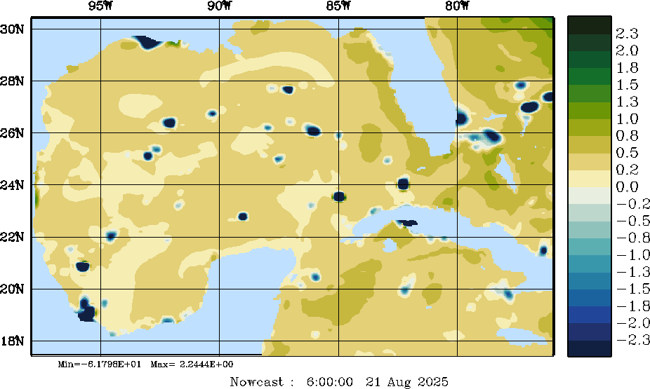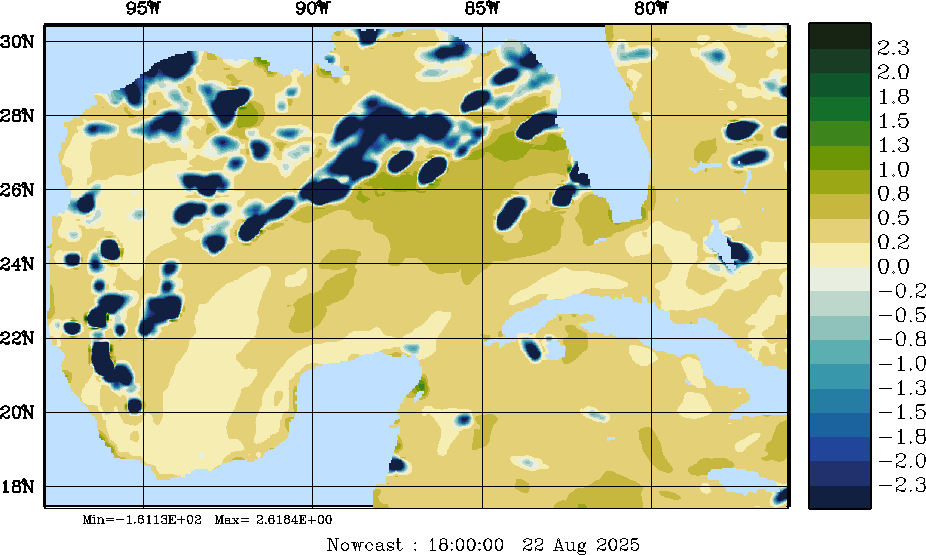 E - P Snapshots (cm/day); processed by MSEAS from merged NCEP fields |