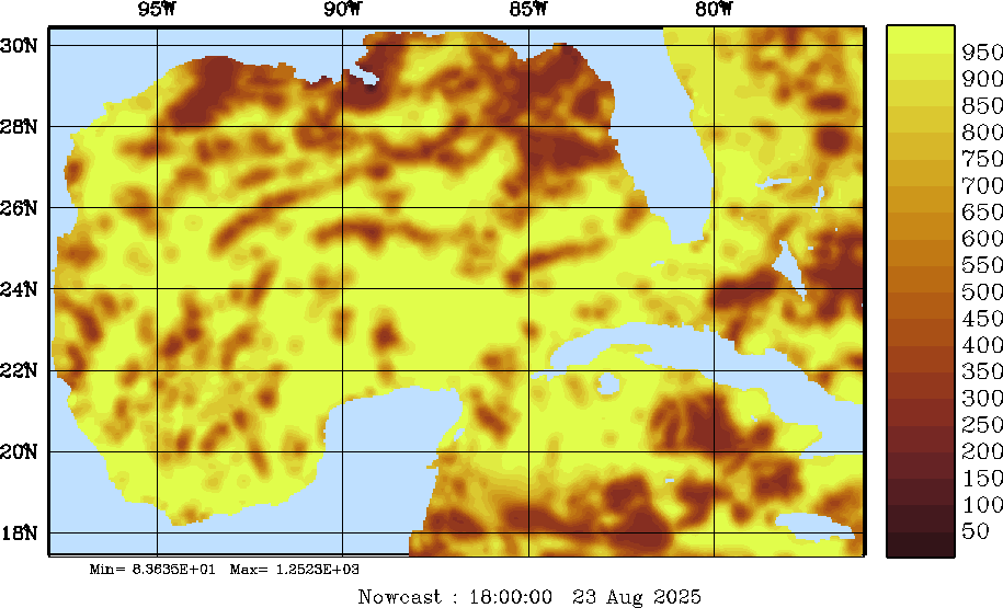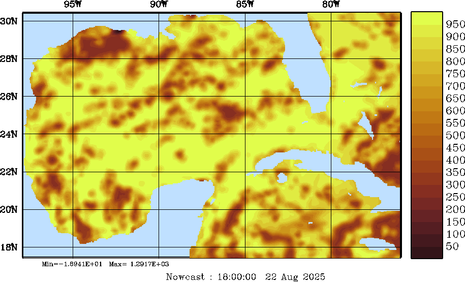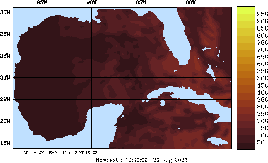 SW Radiation Snapshots (W/m2); processed by MSEAS from merged NCEP fields |