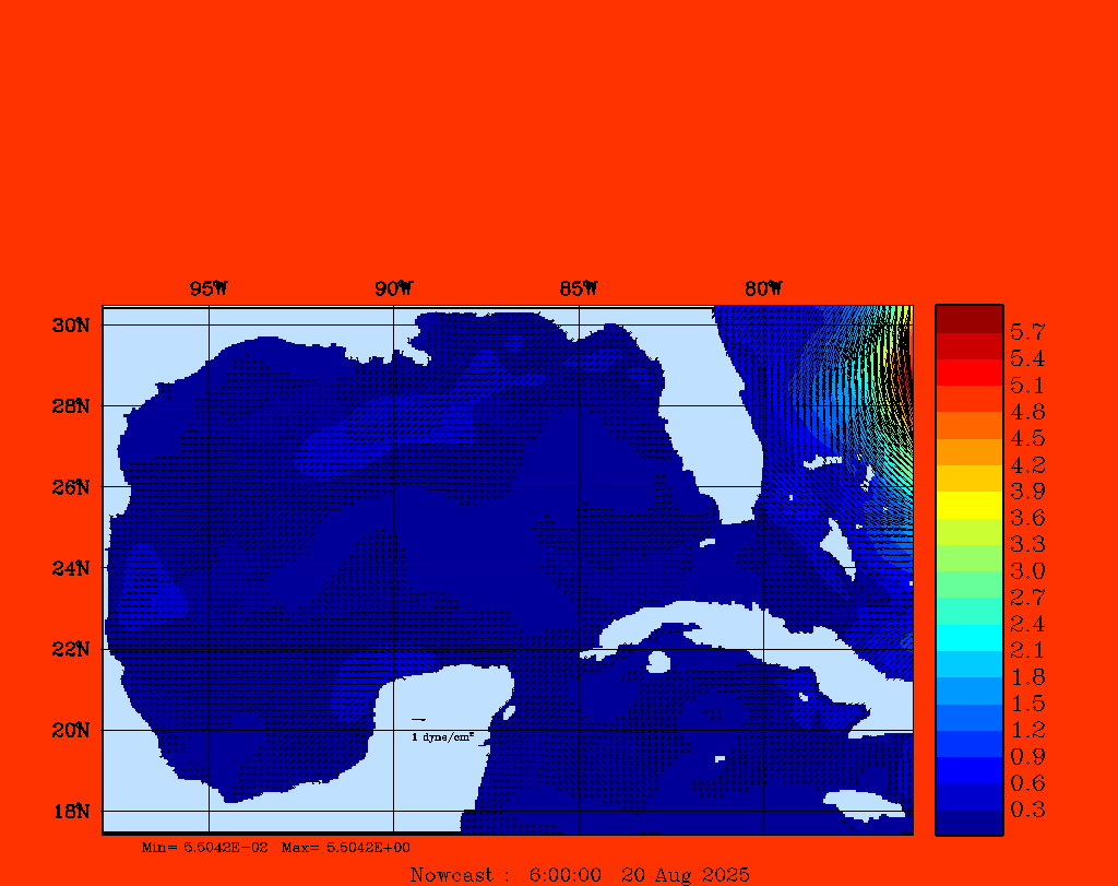 Wind Stress Snapshots (dynes/cm2); processed by MSEAS from merged NCEP fields |