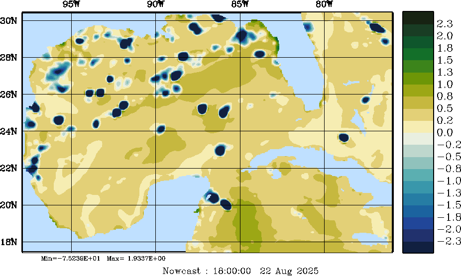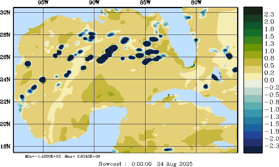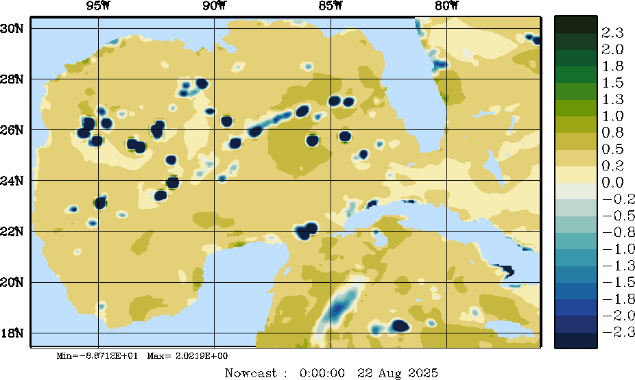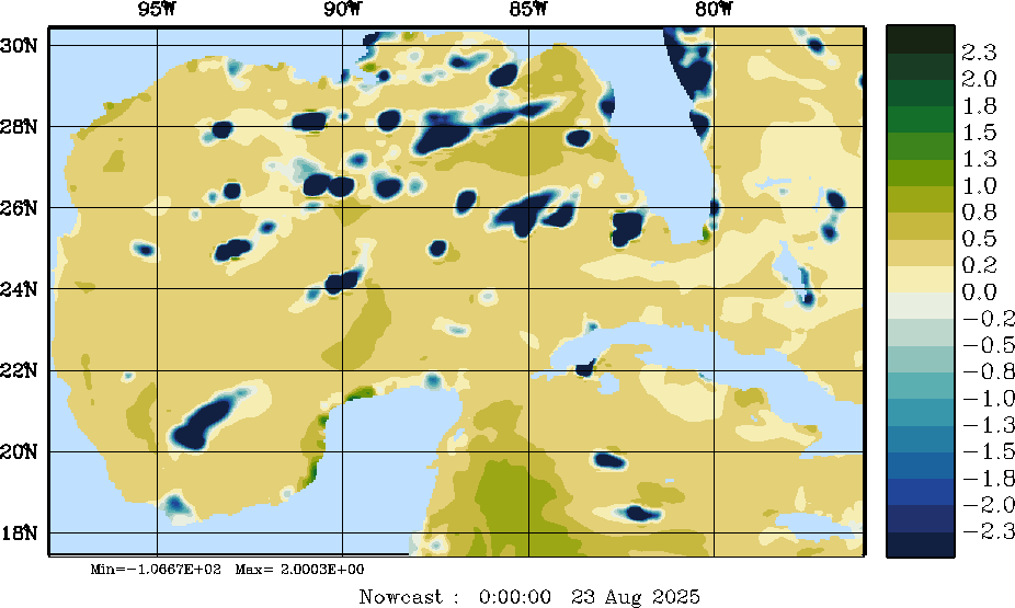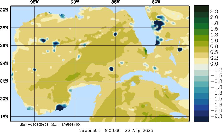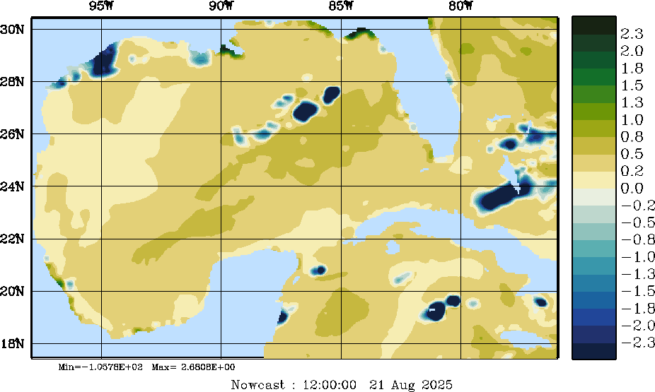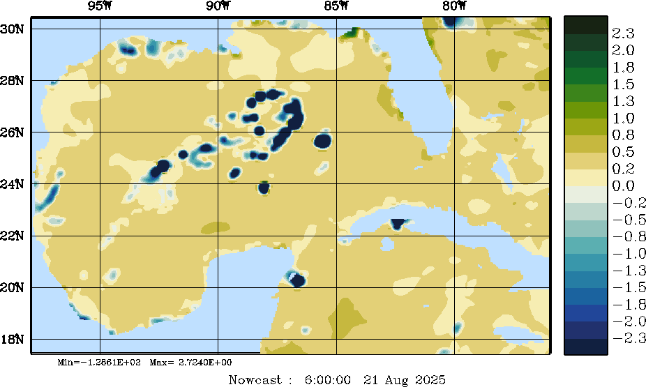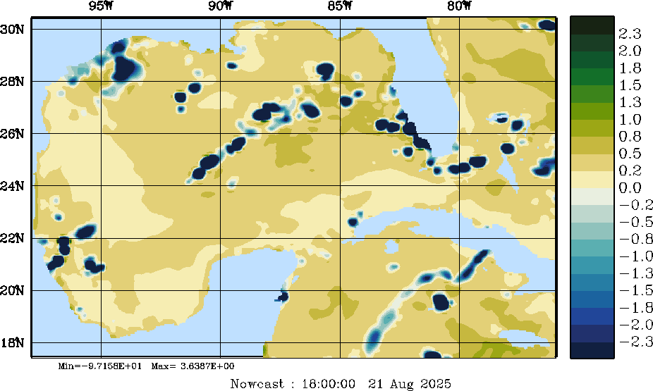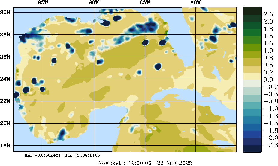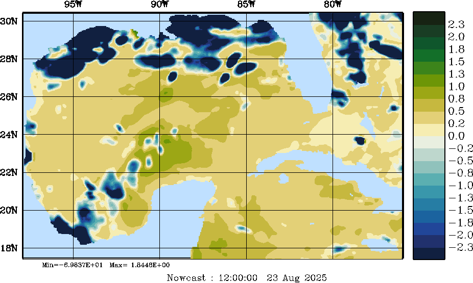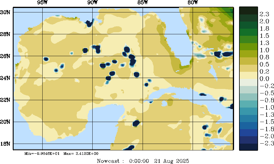 | E - P Snapshots (cm/day); processed by MSEAS from merged NCEP fields |