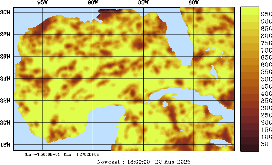 | SW Radiation Snapshots (W/m2); processed by MSEAS from merged NCEP fields |