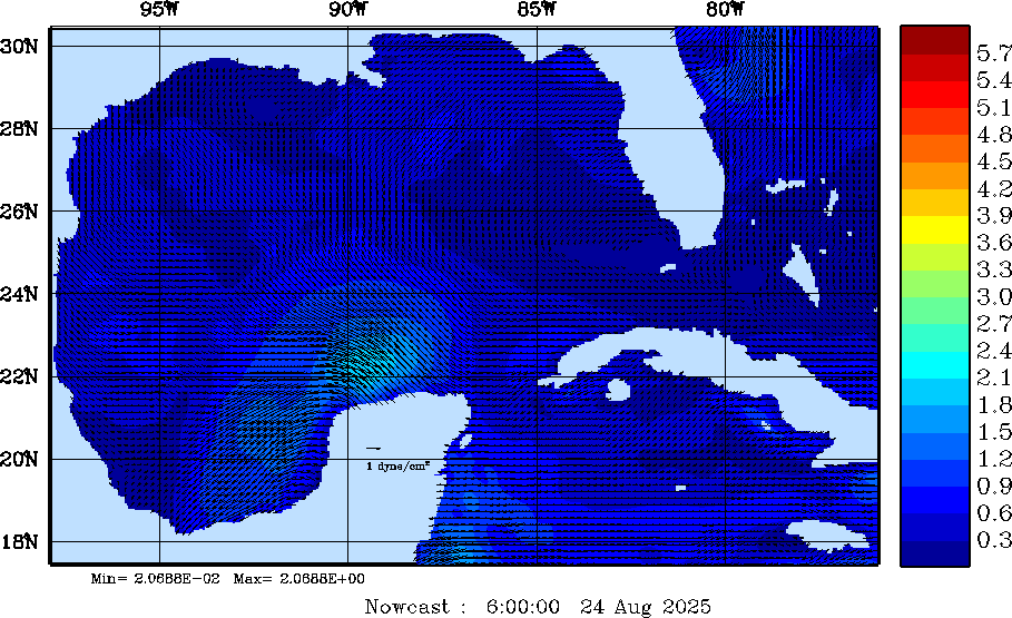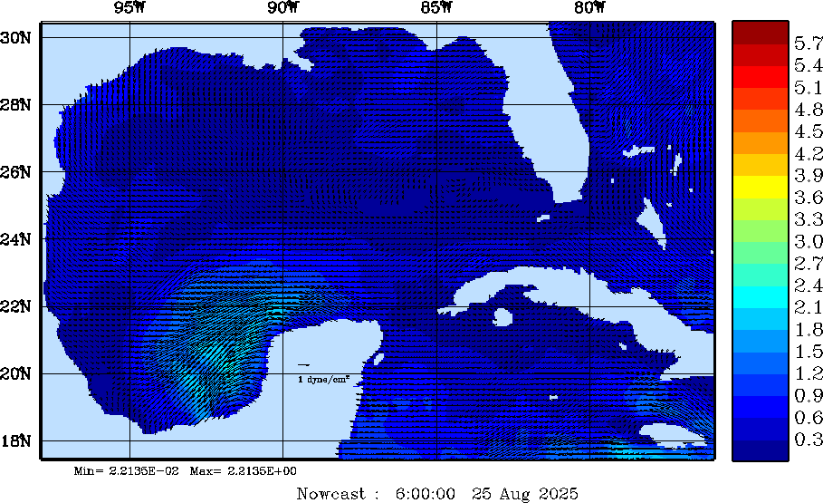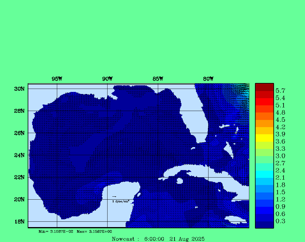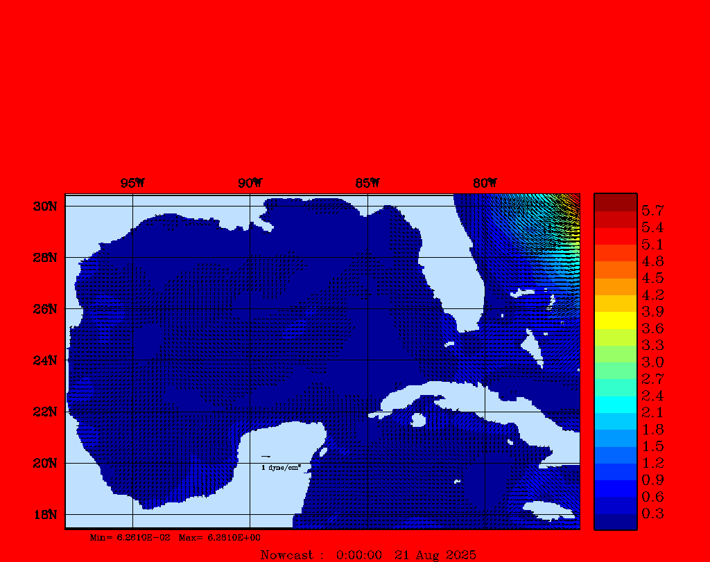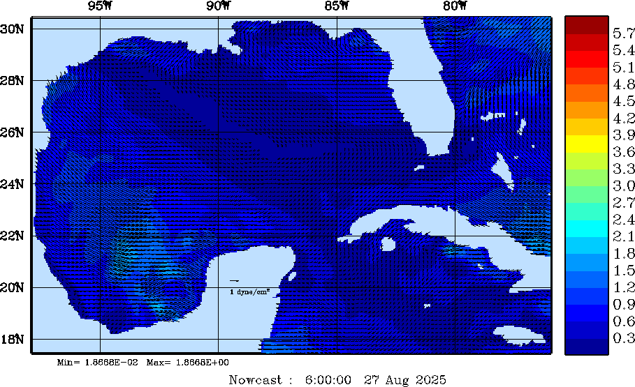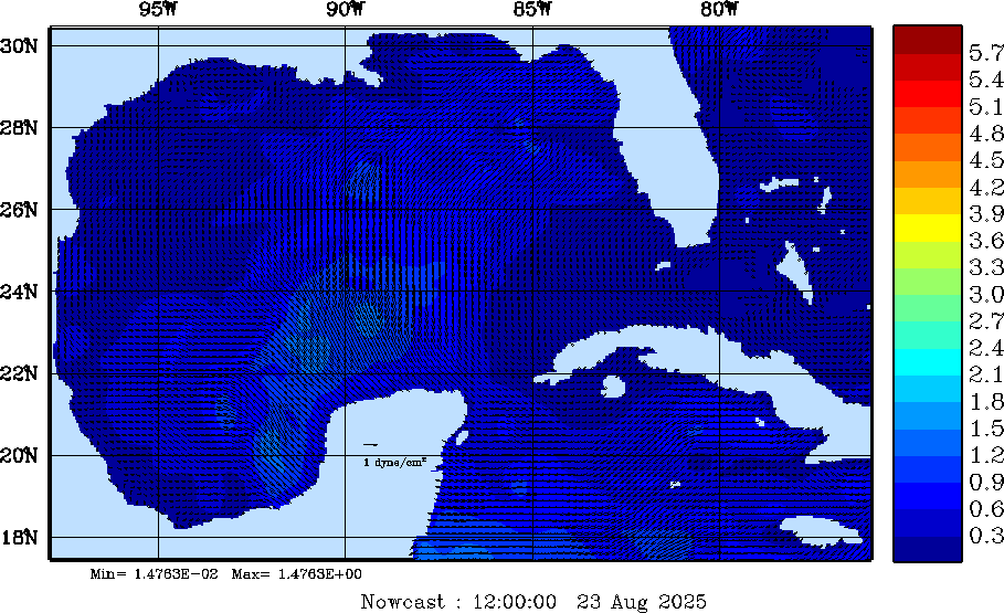| Wind Stress Snapshots (dynes/cm2); processed by MSEAS from merged NCEP fields |