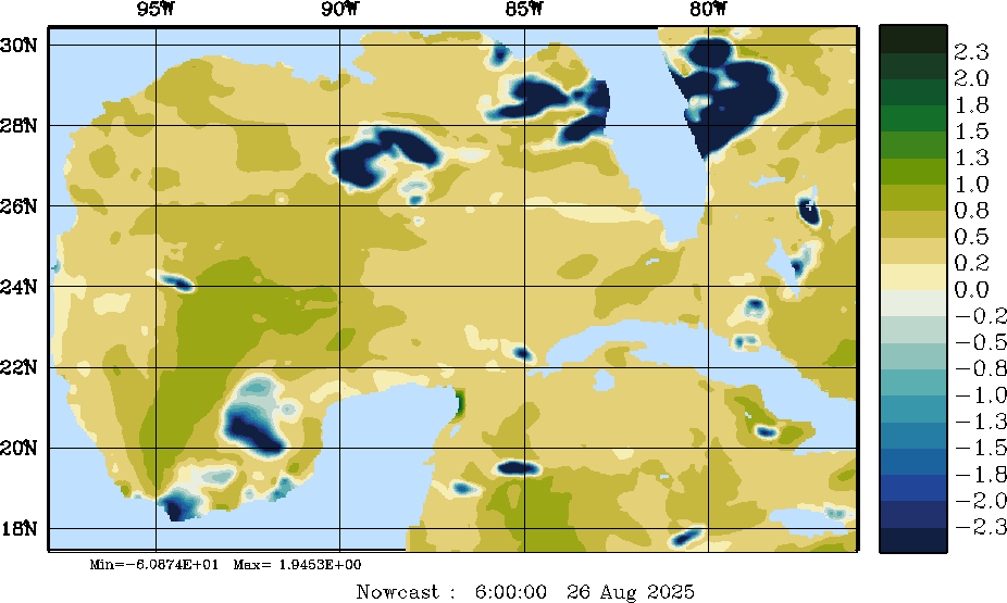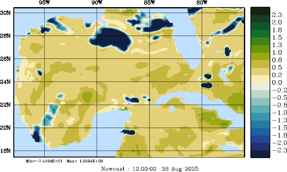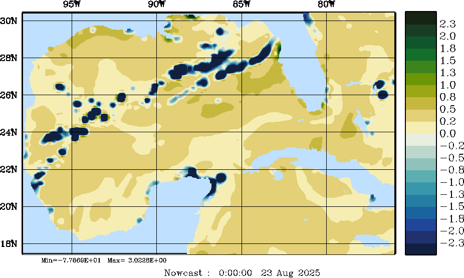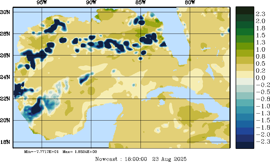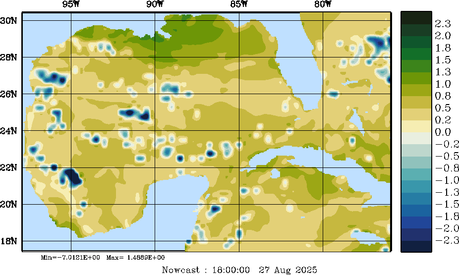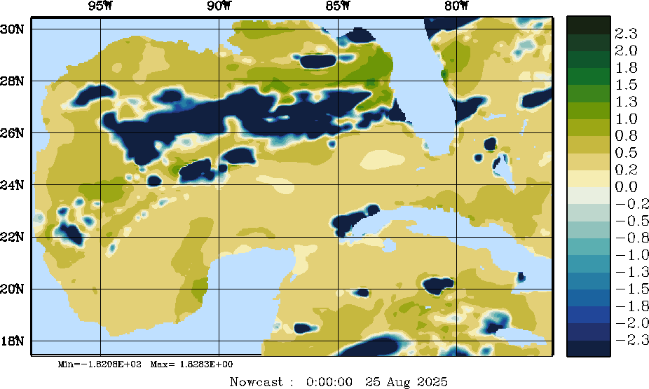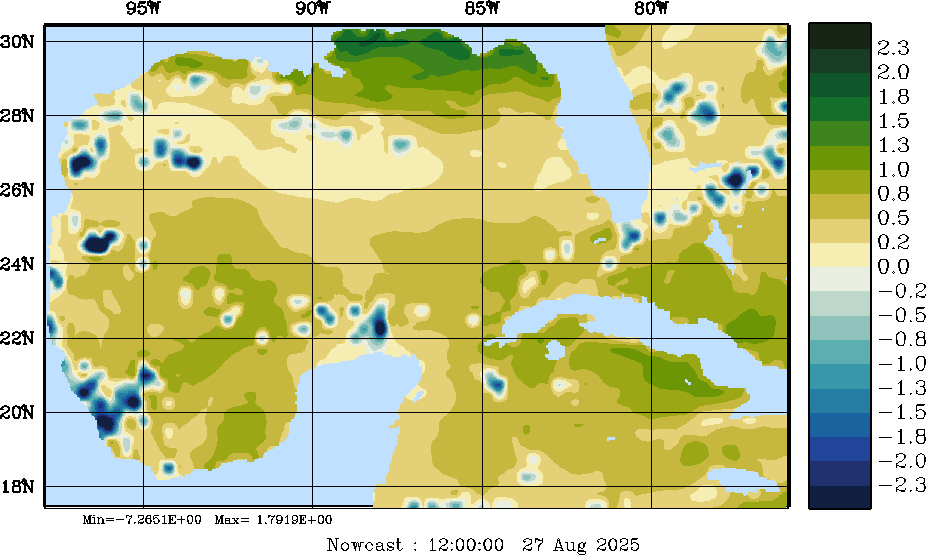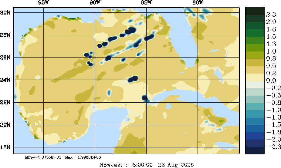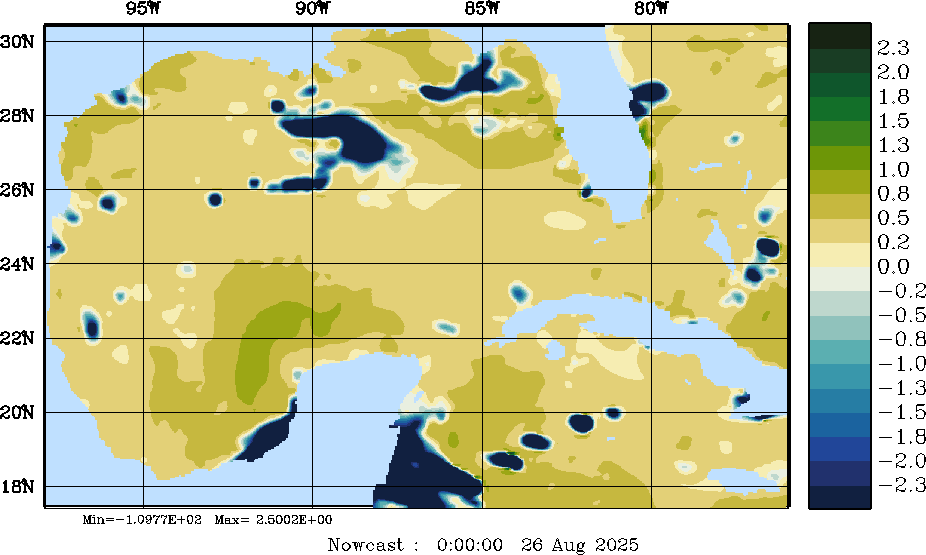 E - P Snapshots (cm/day); processed by MSEAS from merged NCEP fields |