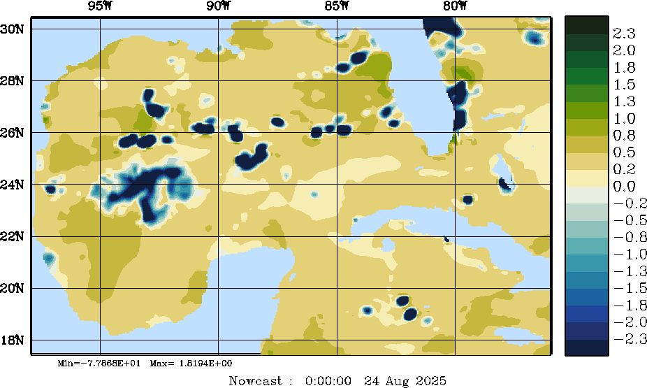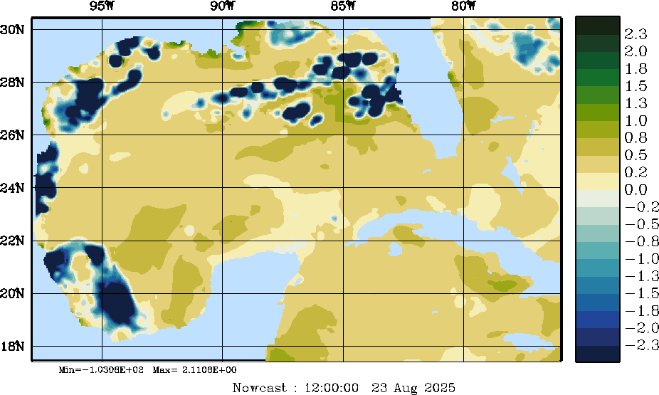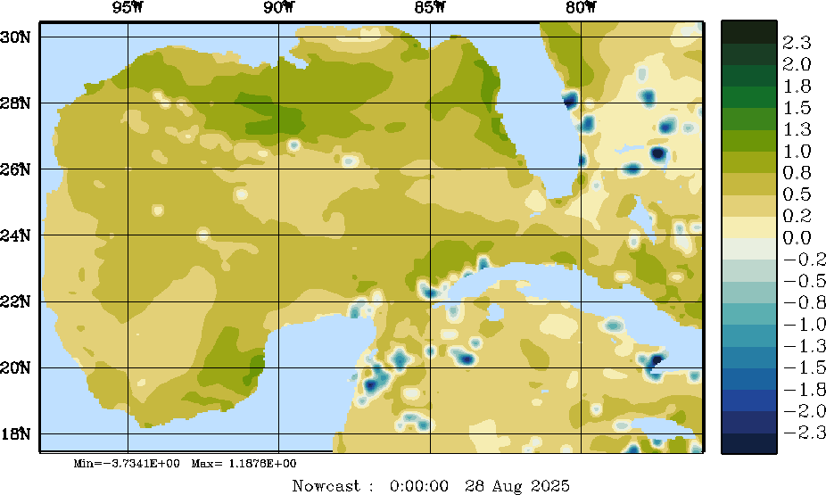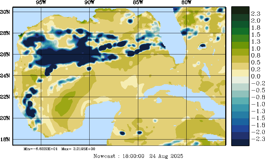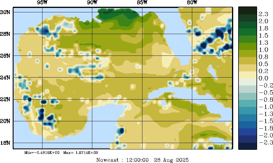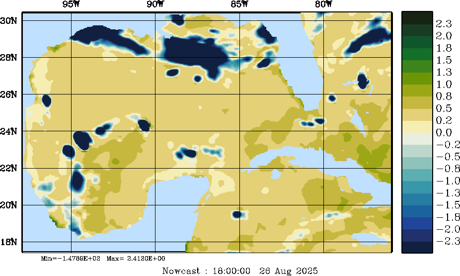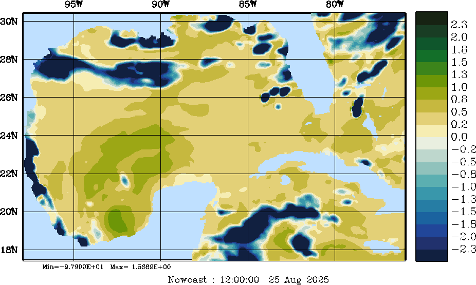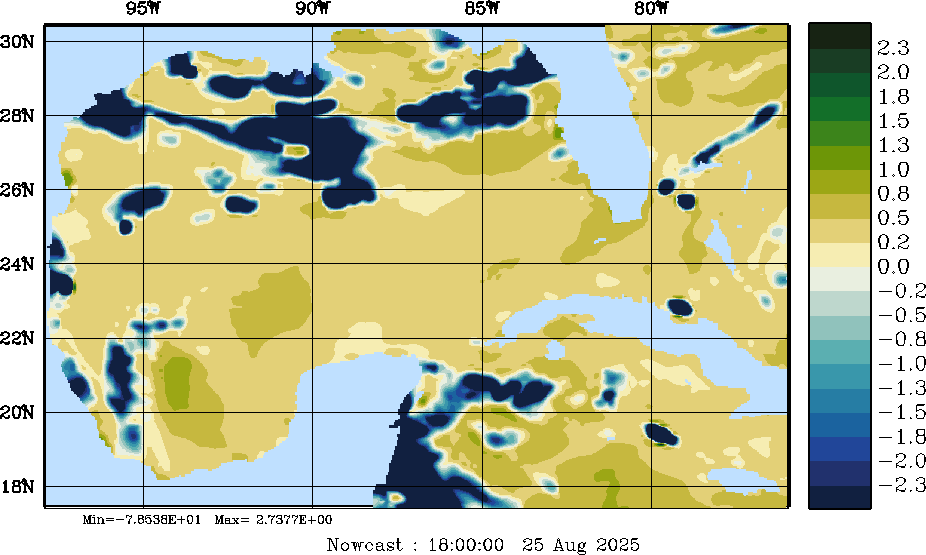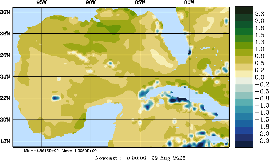 E - P Snapshots (cm/day); processed by MSEAS from merged NCEP fields |