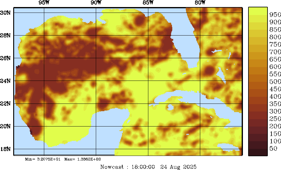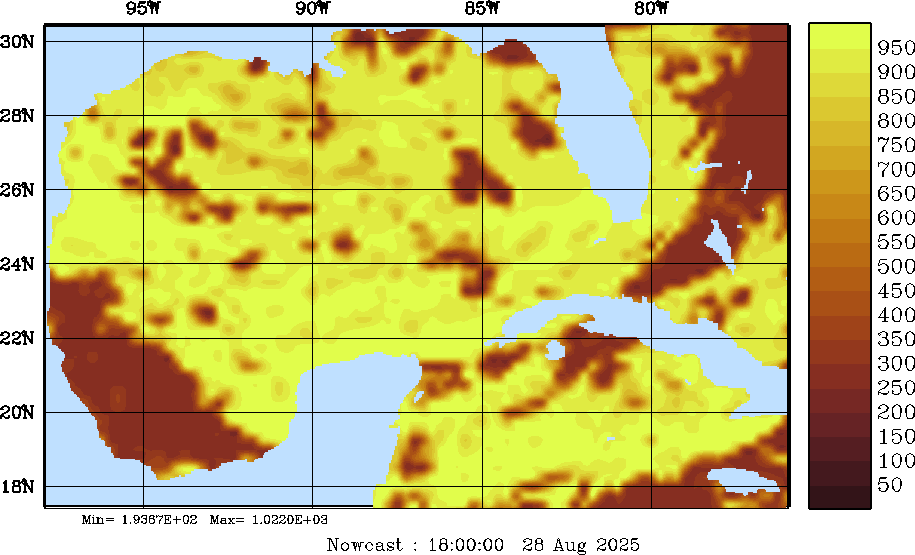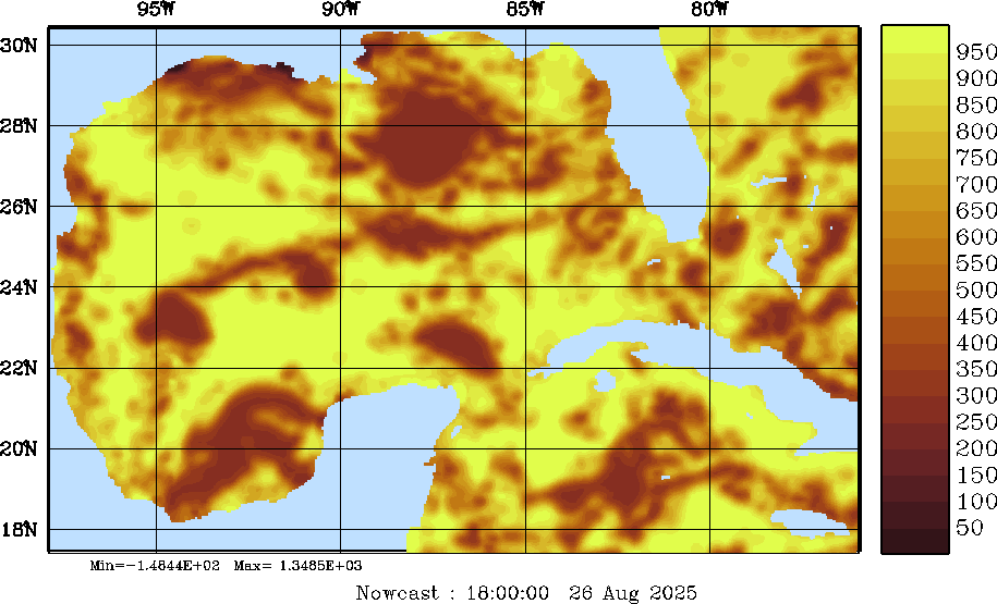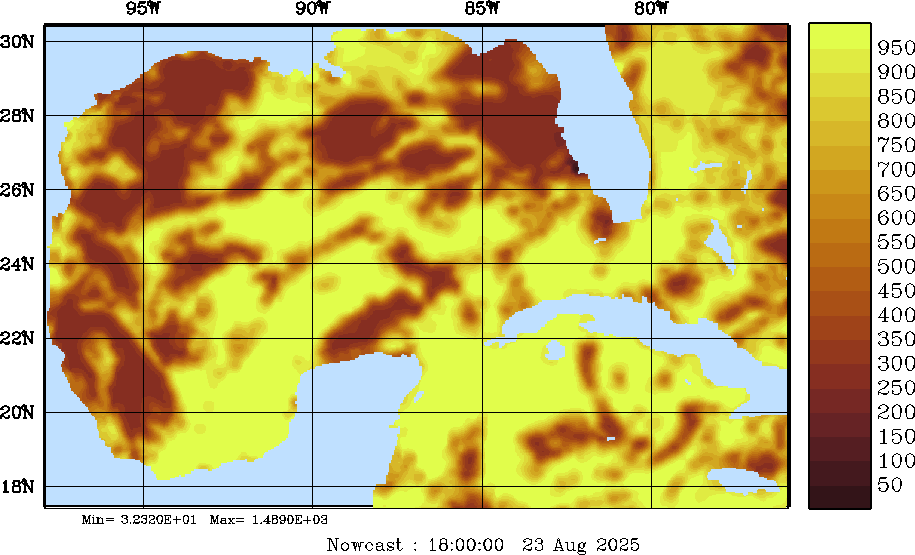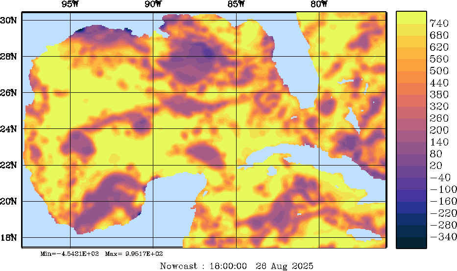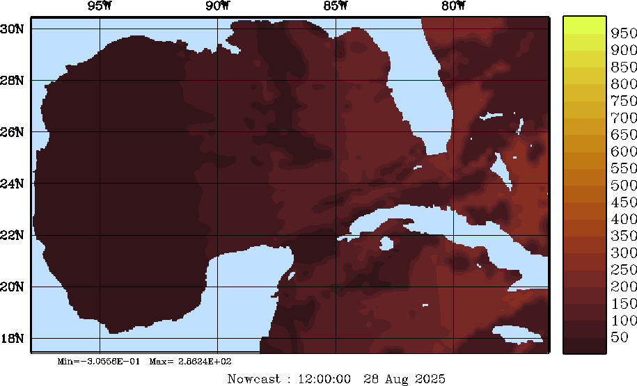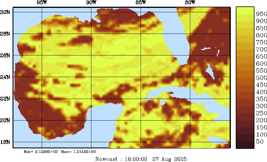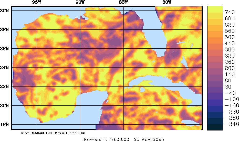 SW Radiation Snapshots (W/m2); processed by MSEAS from merged NCEP fields |
