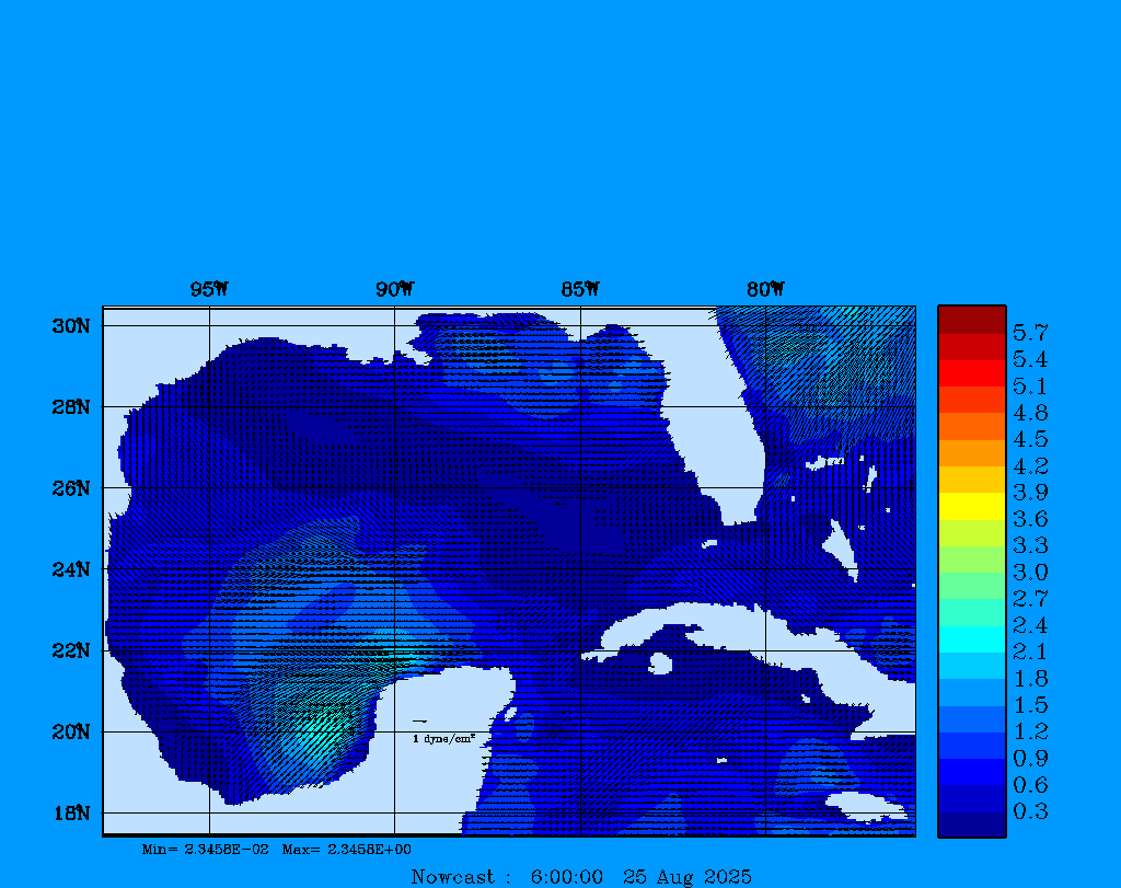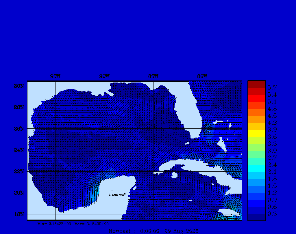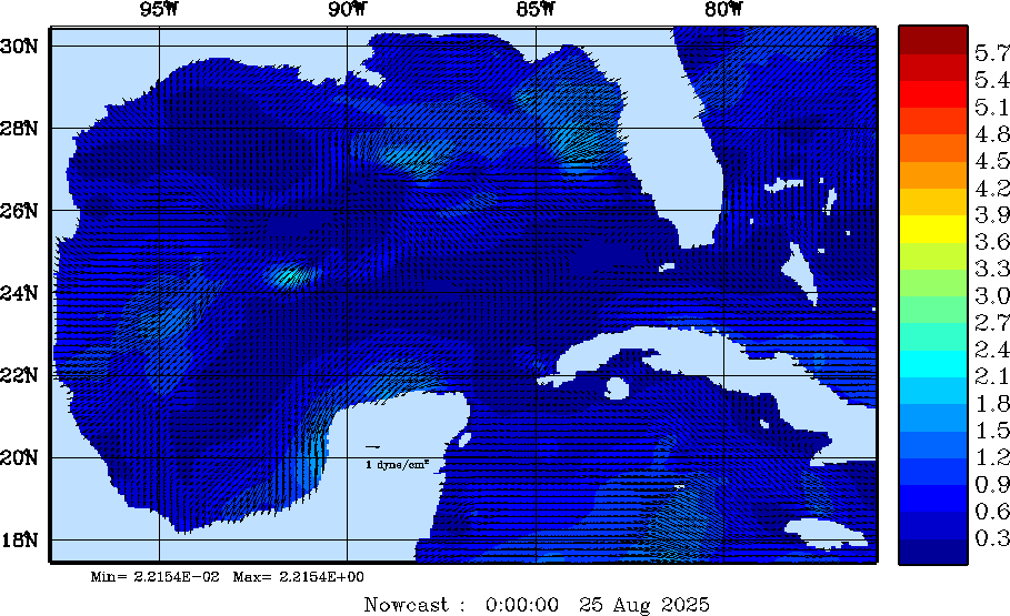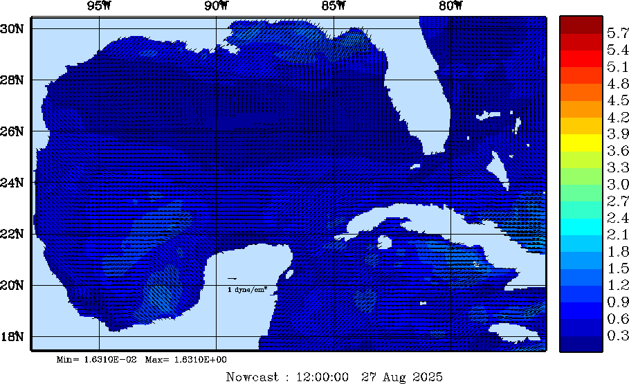 Wind Stress Snapshots (dynes/cm2); processed by MSEAS from merged NCEP fields |