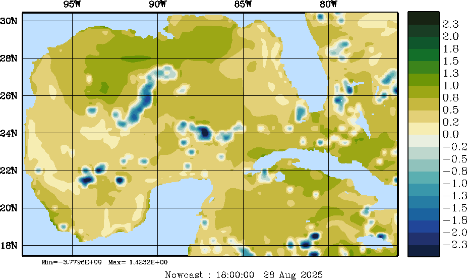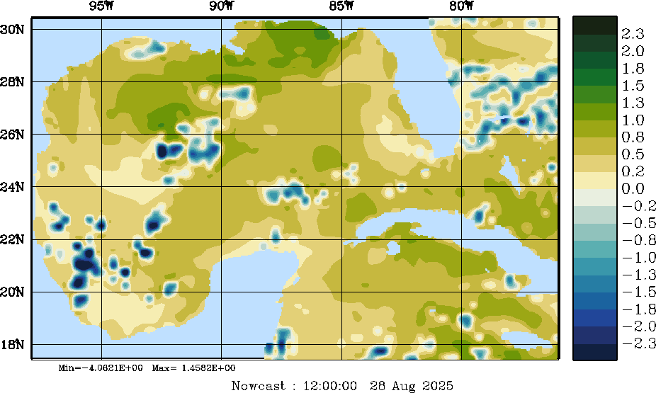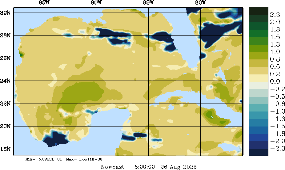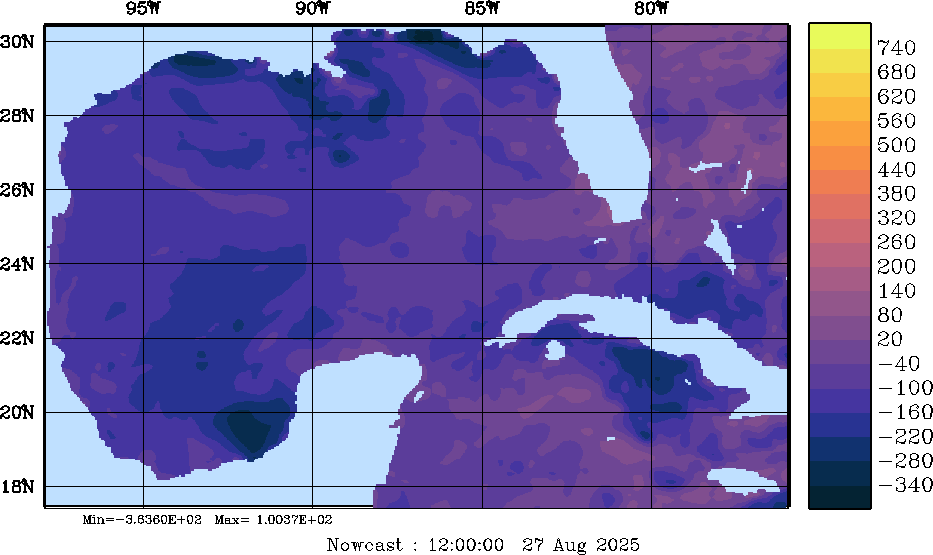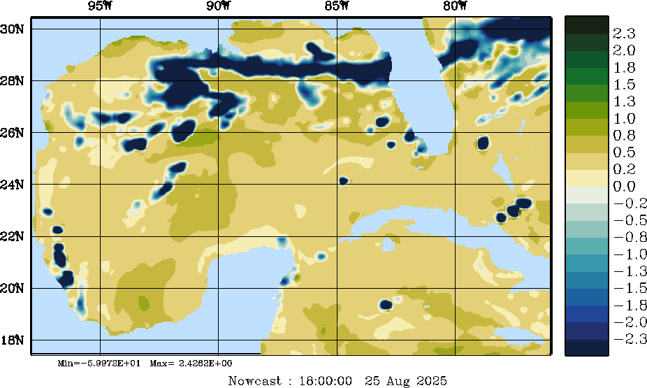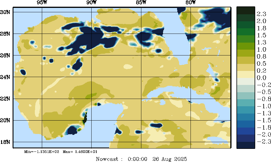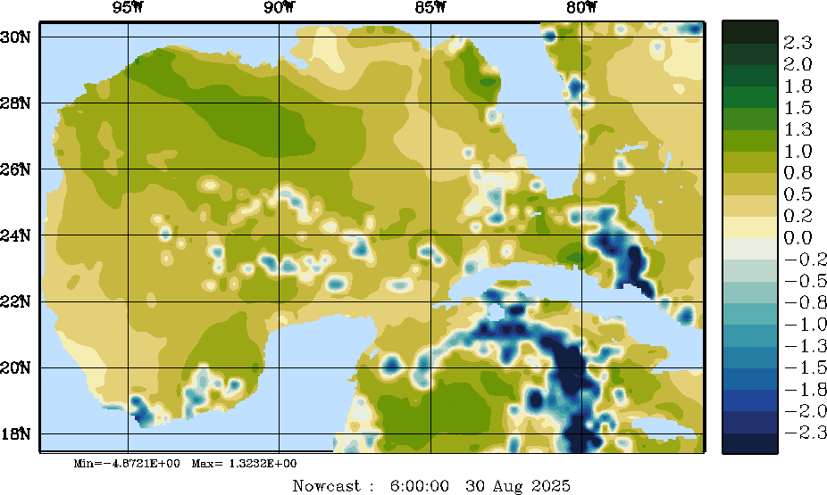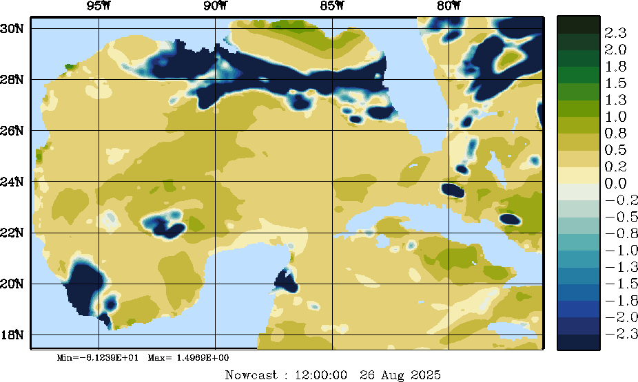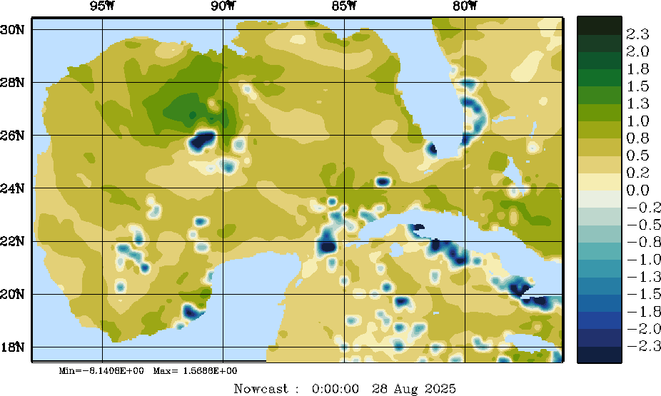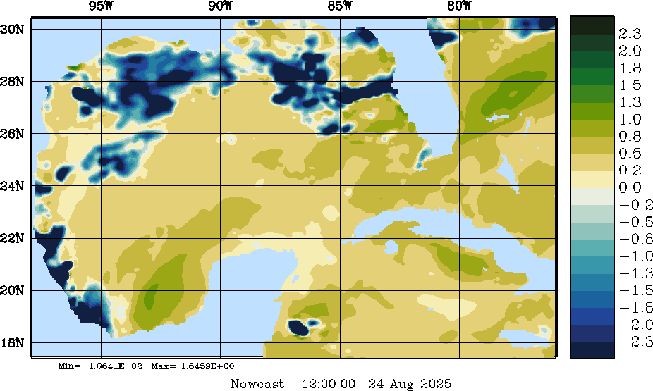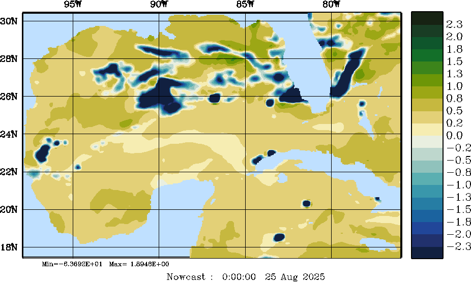 E - P Snapshots (cm/day); processed by MSEAS from merged NCEP fields |