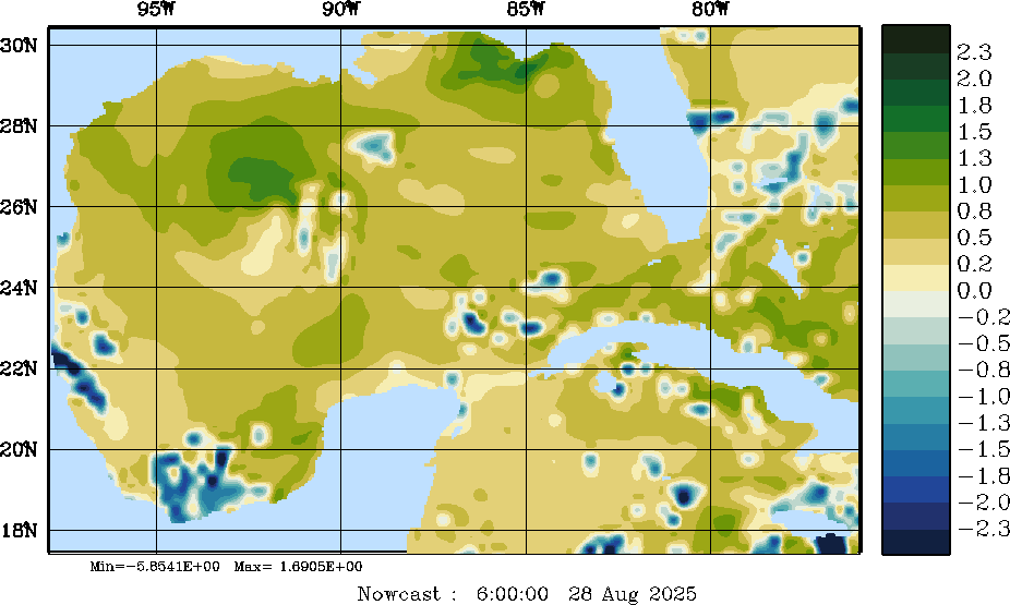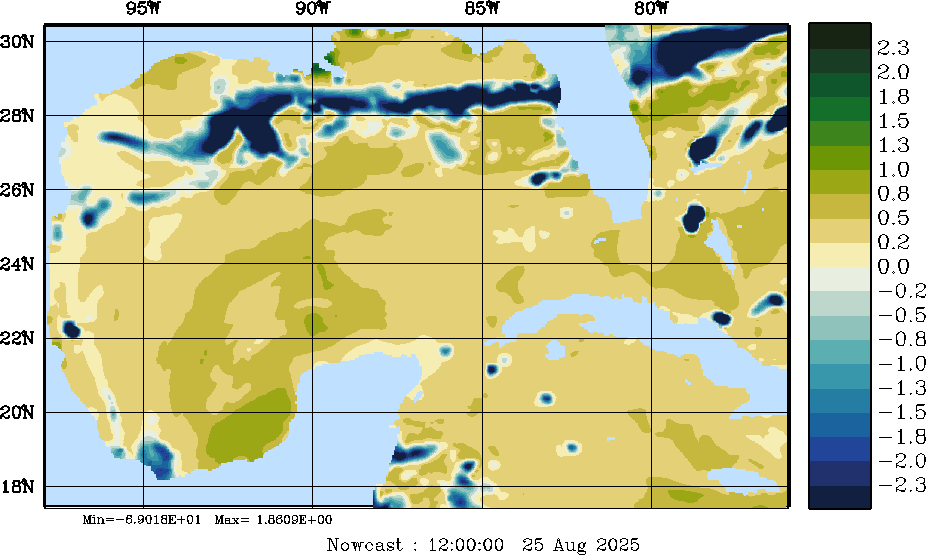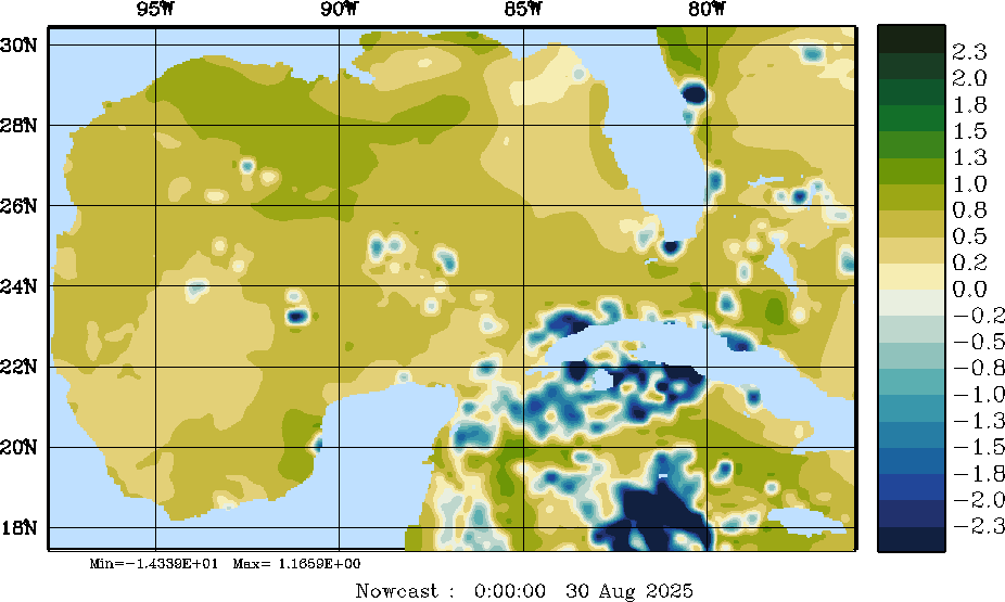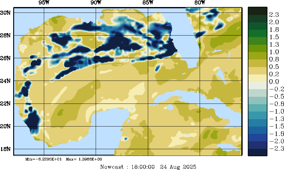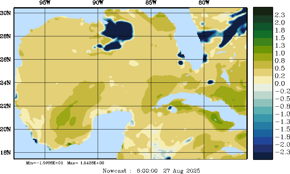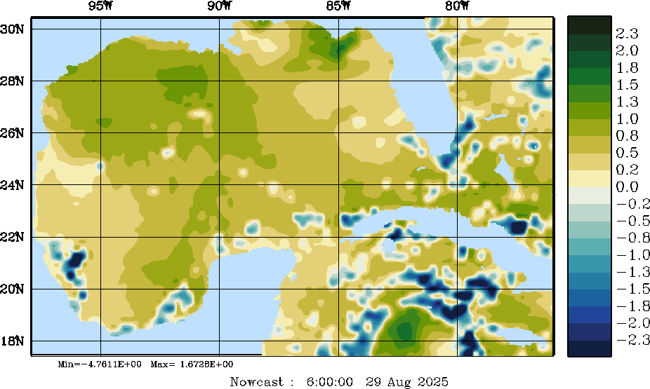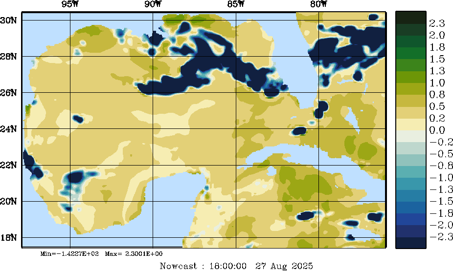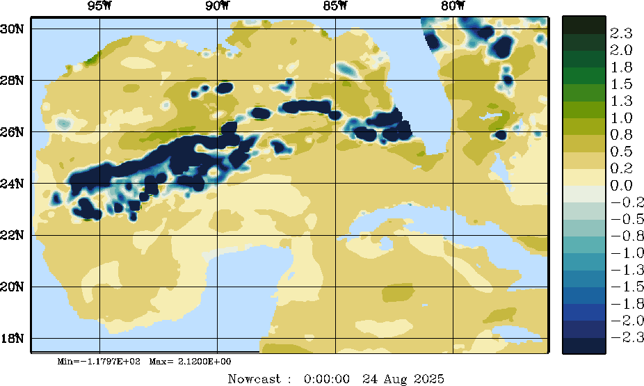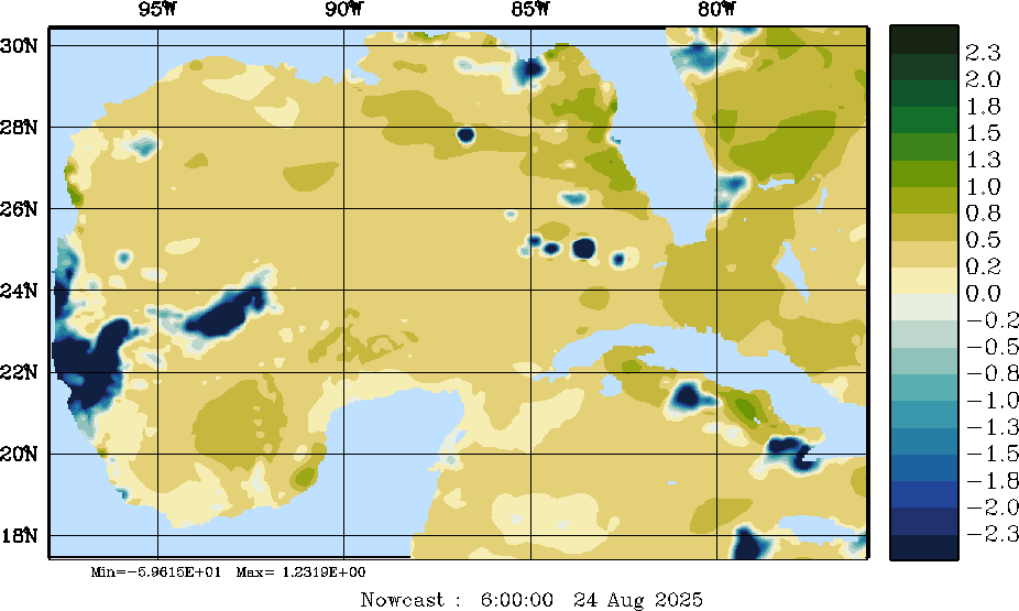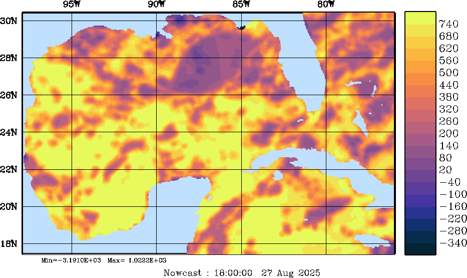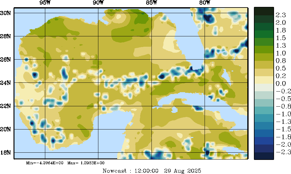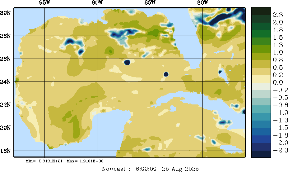 E - P Snapshots (cm/day); processed by MSEAS from merged NCEP fields |