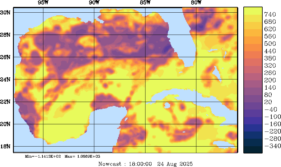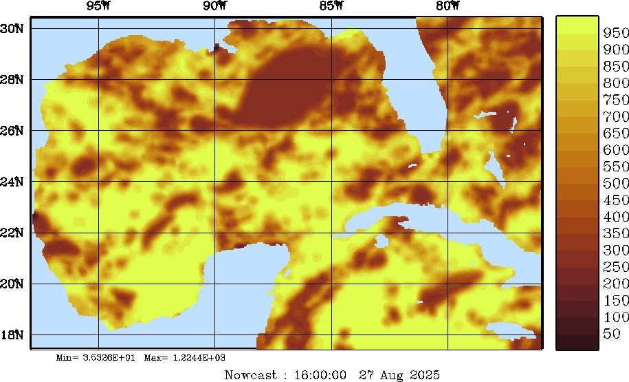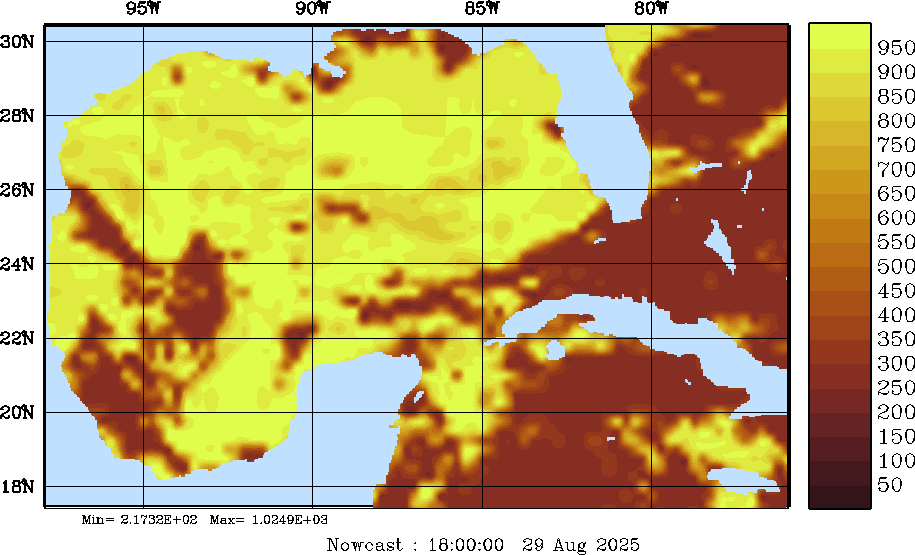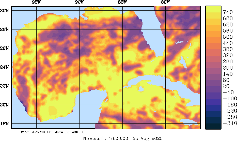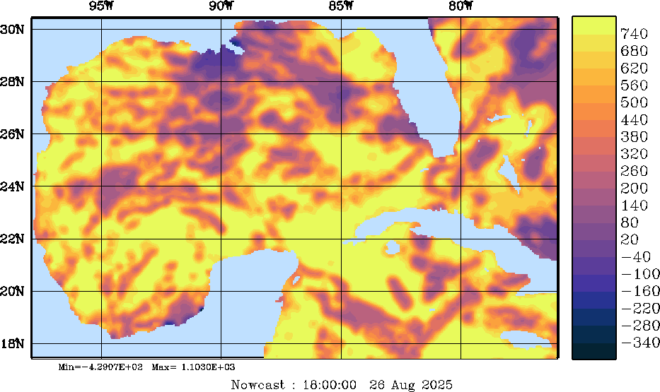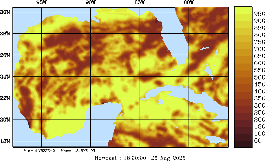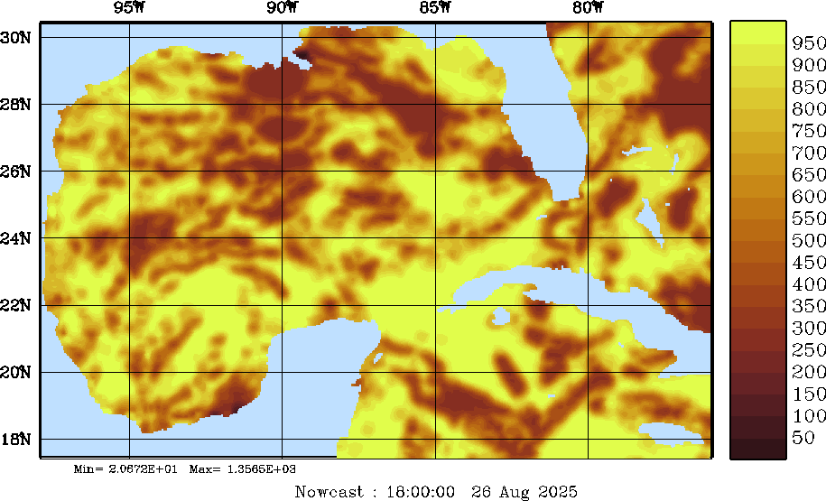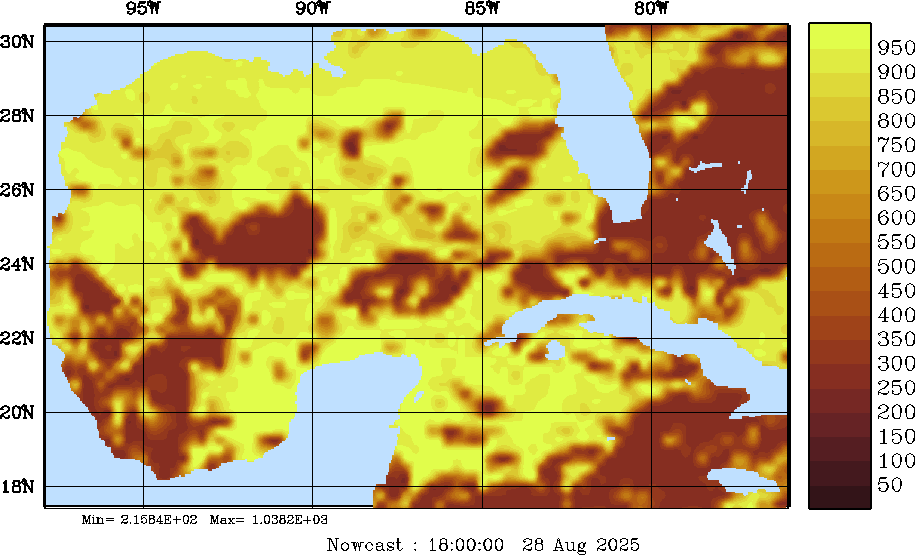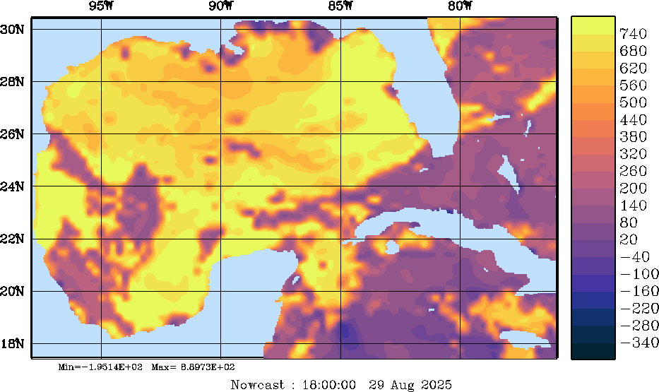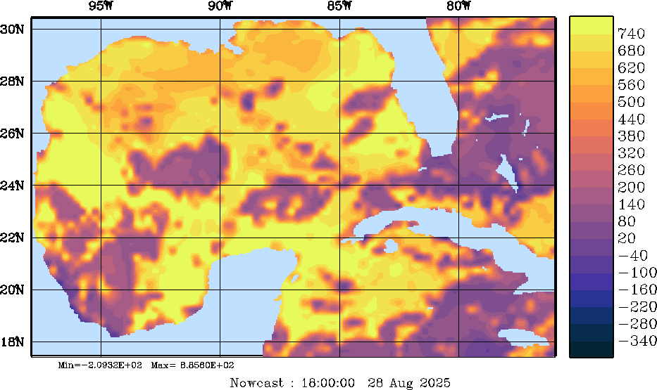 SW Radiation Snapshots (W/m2); processed by MSEAS from merged NCEP fields |