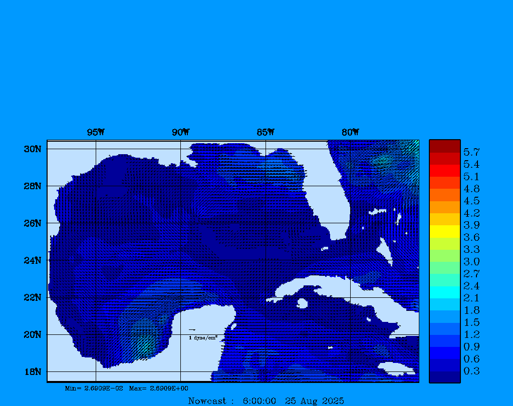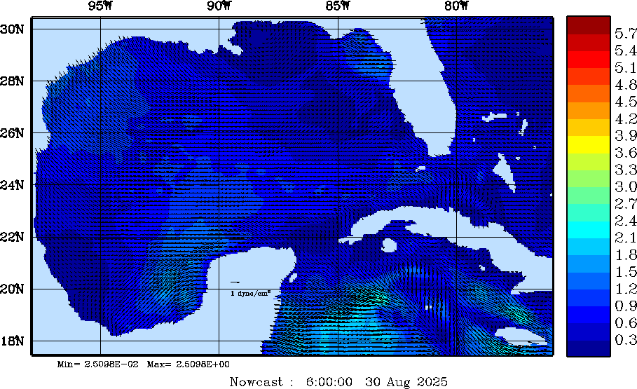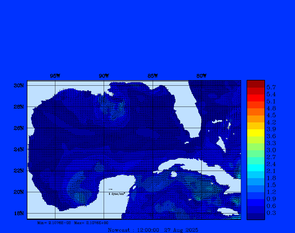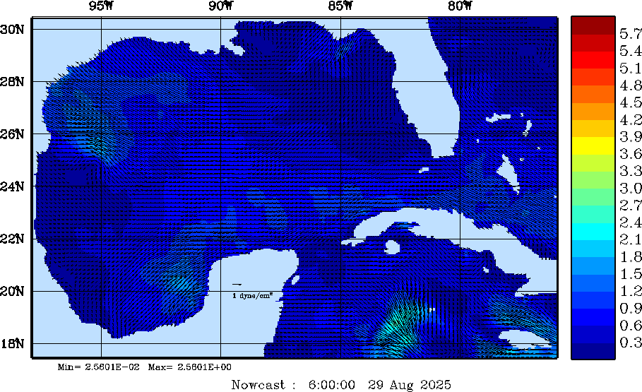 Wind Stress Snapshots (dynes/cm2); processed by MSEAS from merged NCEP fields |