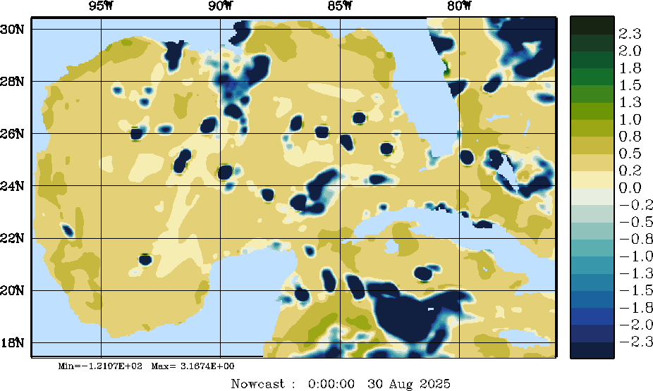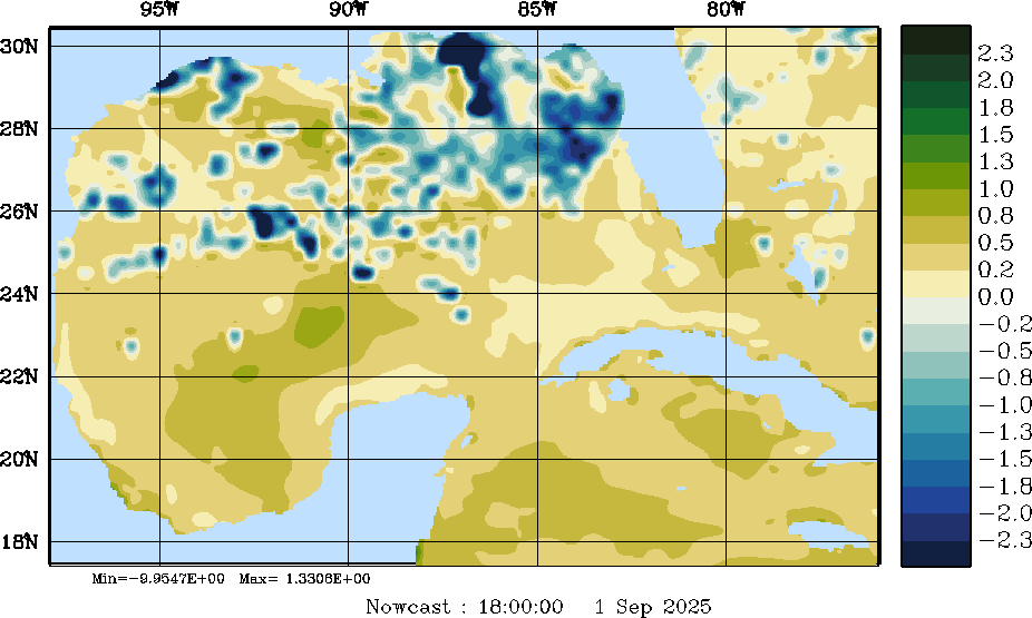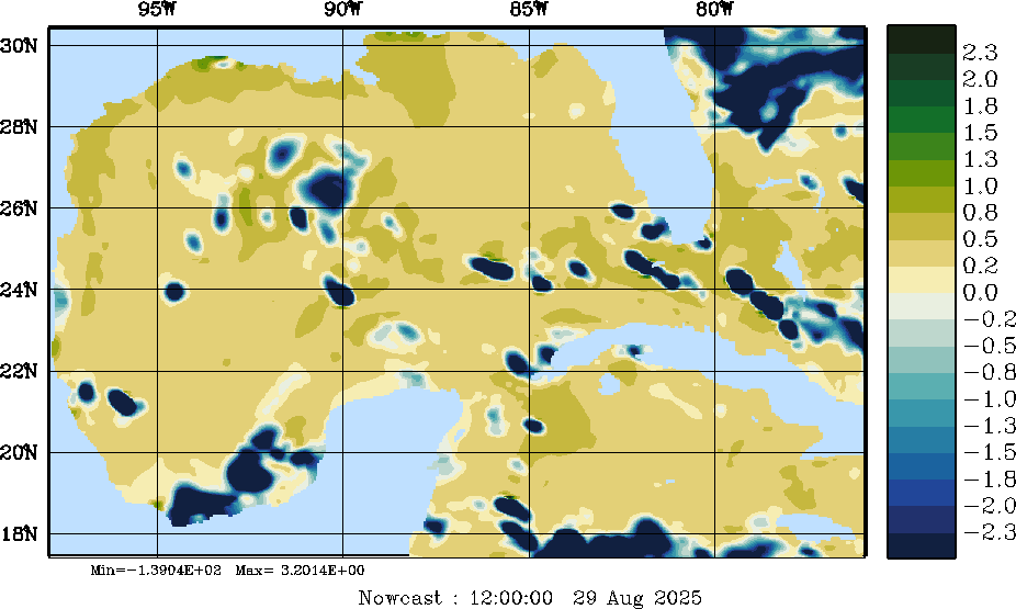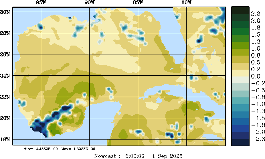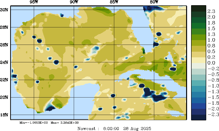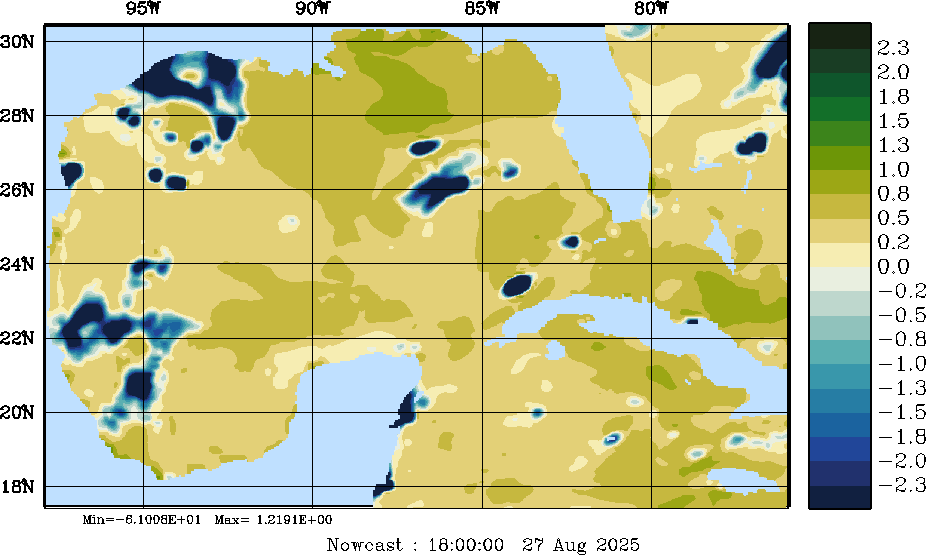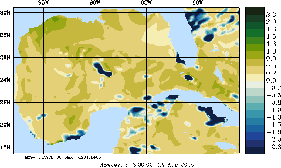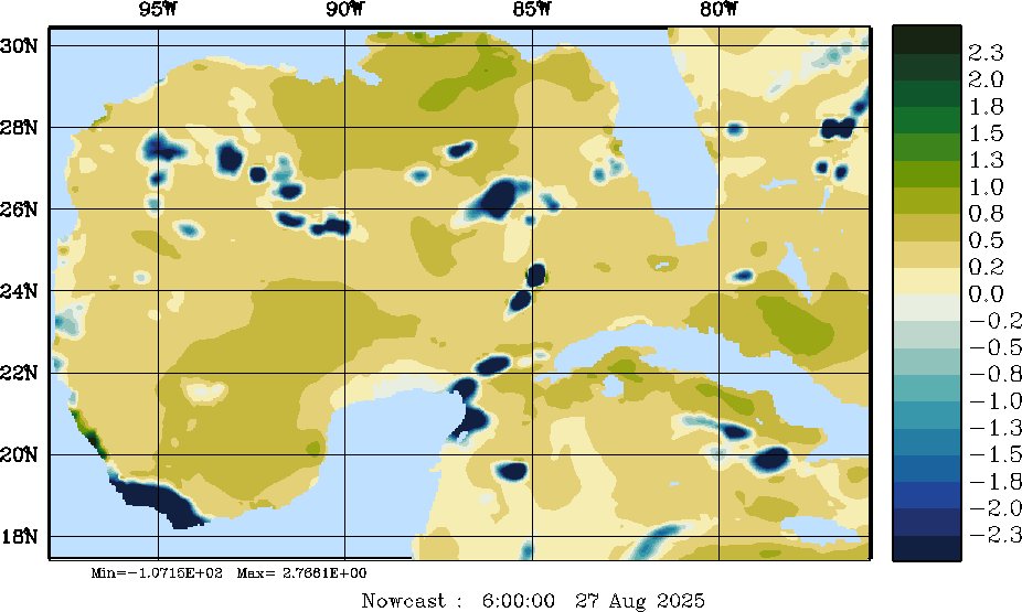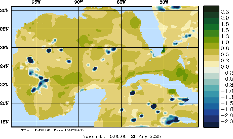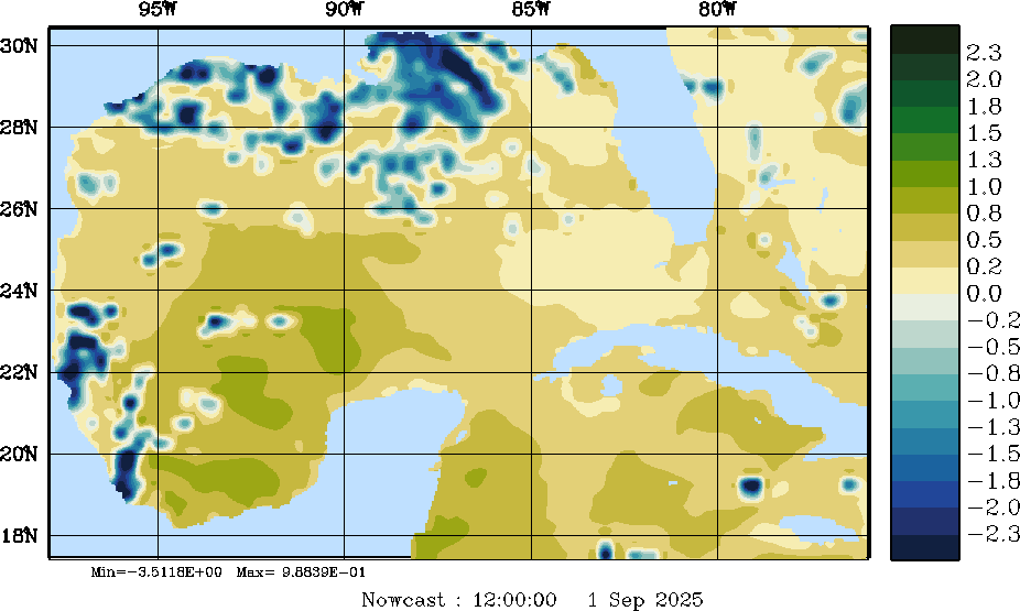 | E - P Snapshots (cm/day); processed by MSEAS from merged NCEP fields |