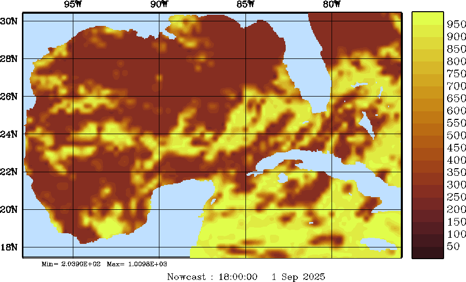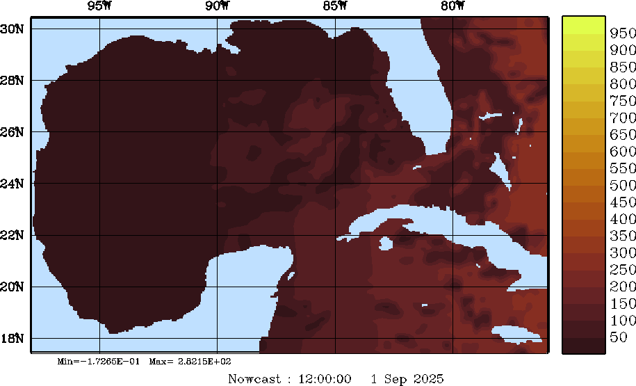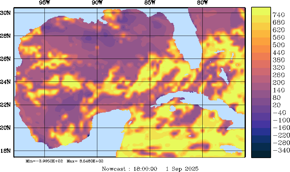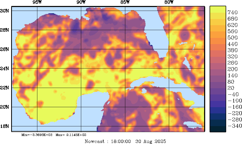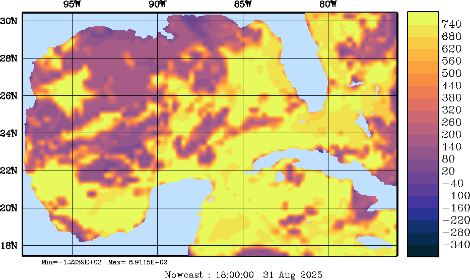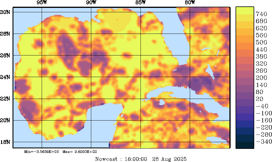 | SW Radiation Snapshots (W/m2); processed by MSEAS from merged NCEP fields |