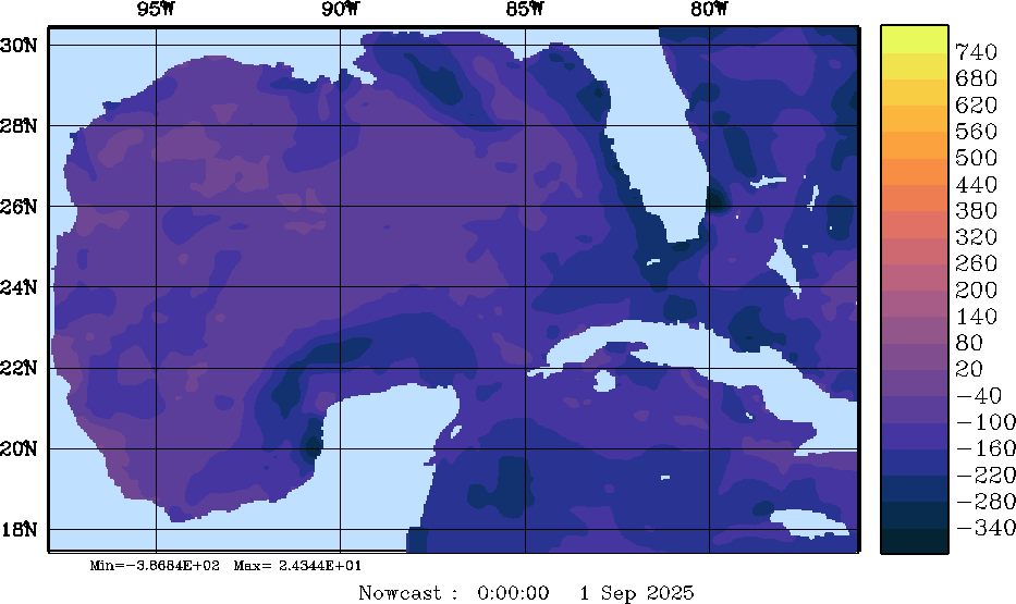 | Net Heat Flux Snapshots (W/m2); processed by MSEAS from merged NCEP fields |