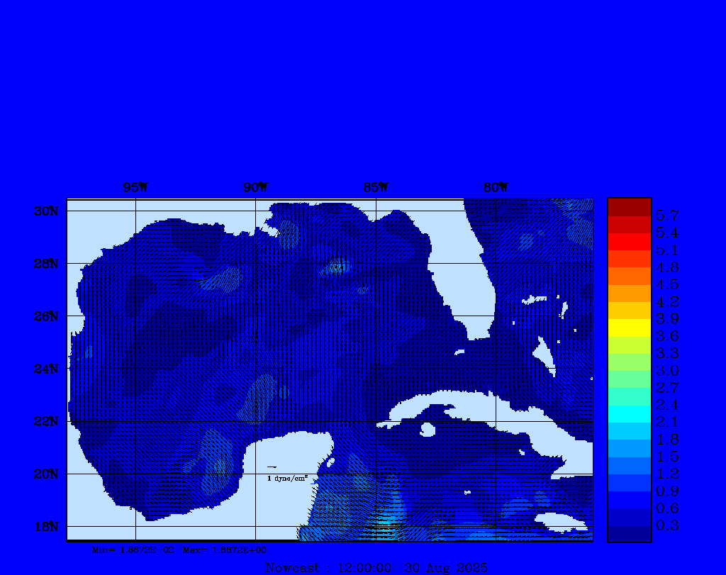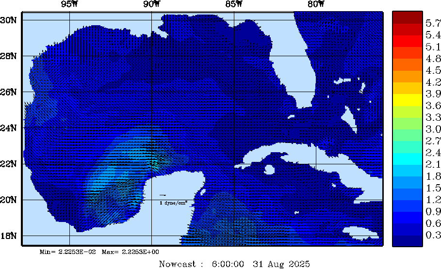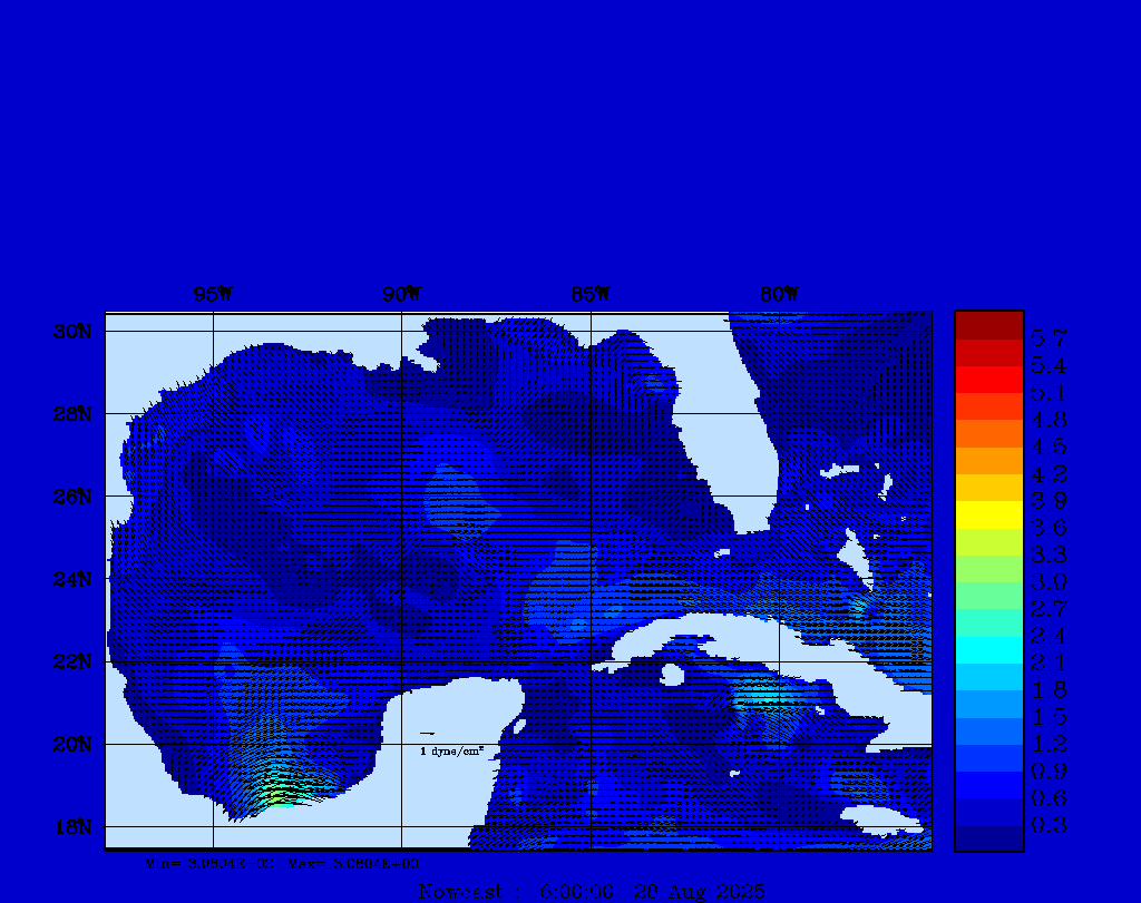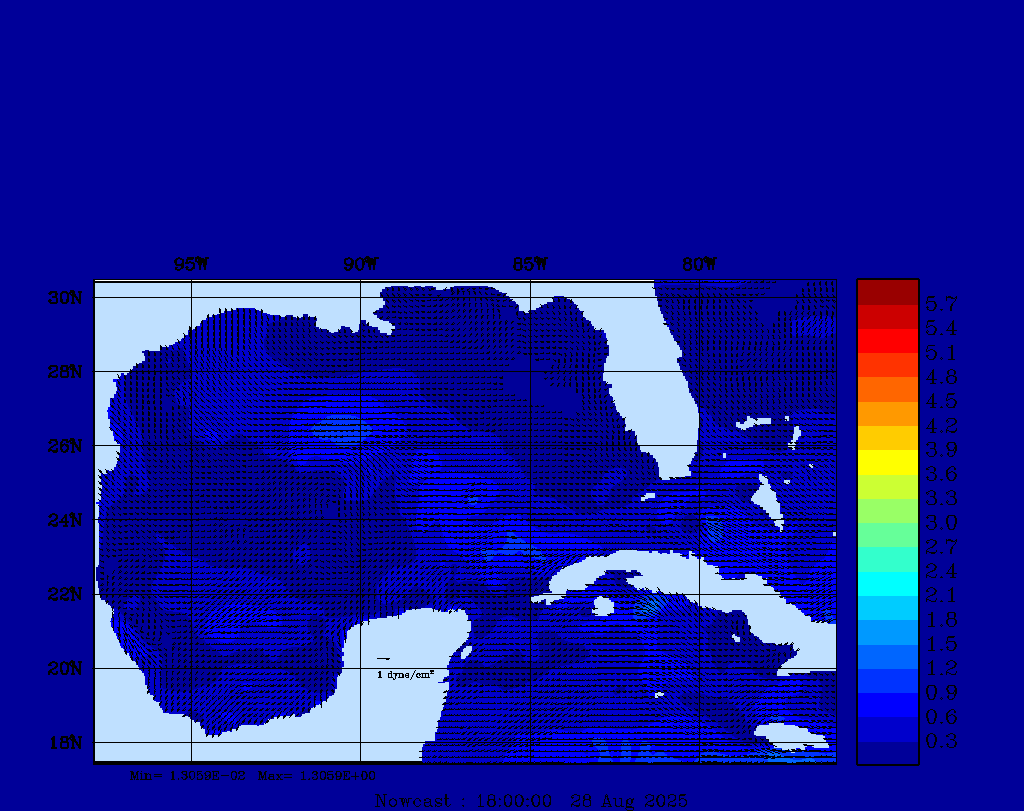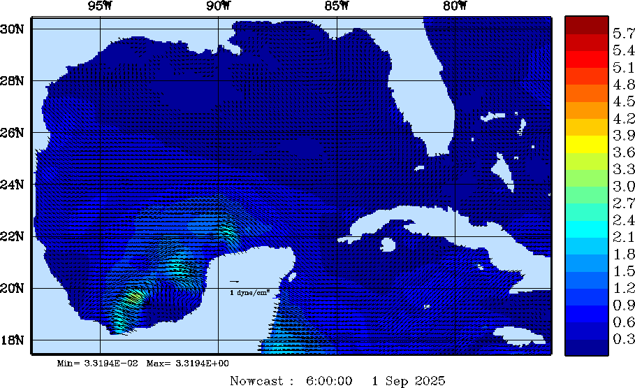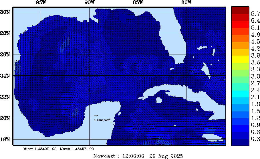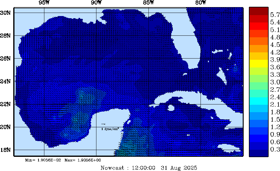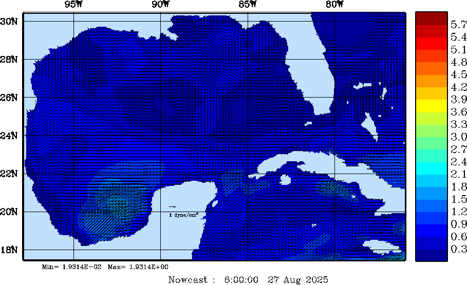| Wind Stress Snapshots (dynes/cm2); processed by MSEAS from merged NCEP fields |