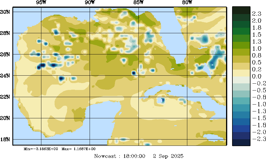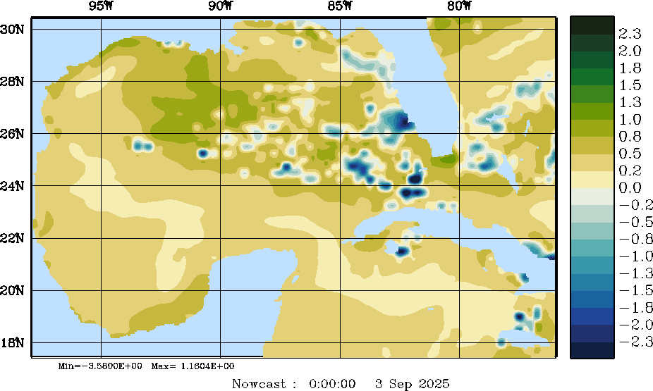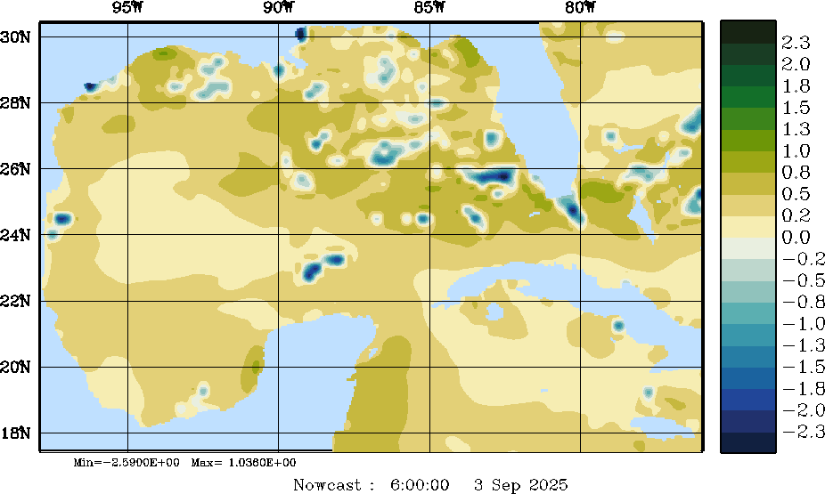 E - P Snapshots (cm/day); processed by MSEAS from merged NCEP fields |
