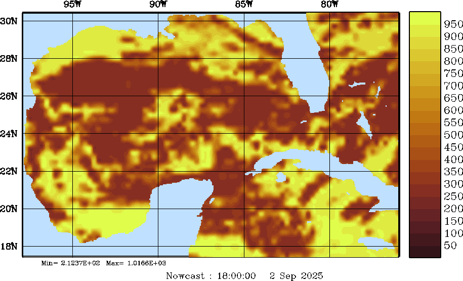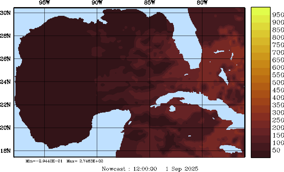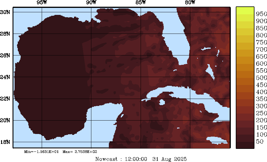 SW Radiation Snapshots (W/m2); processed by MSEAS from merged NCEP fields |