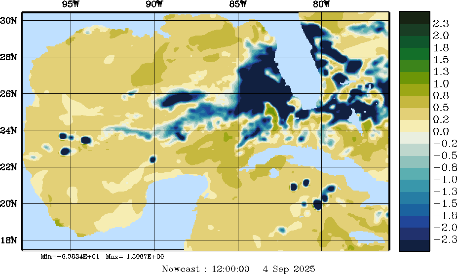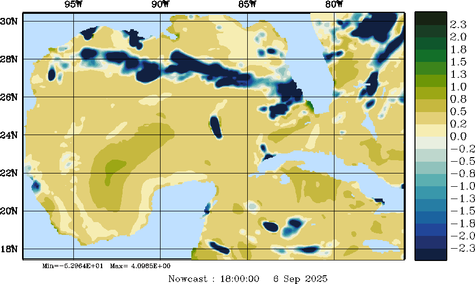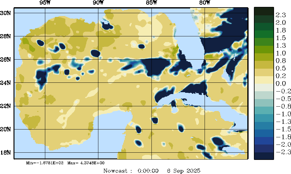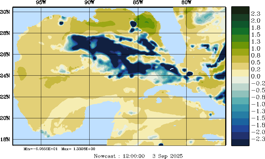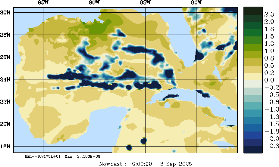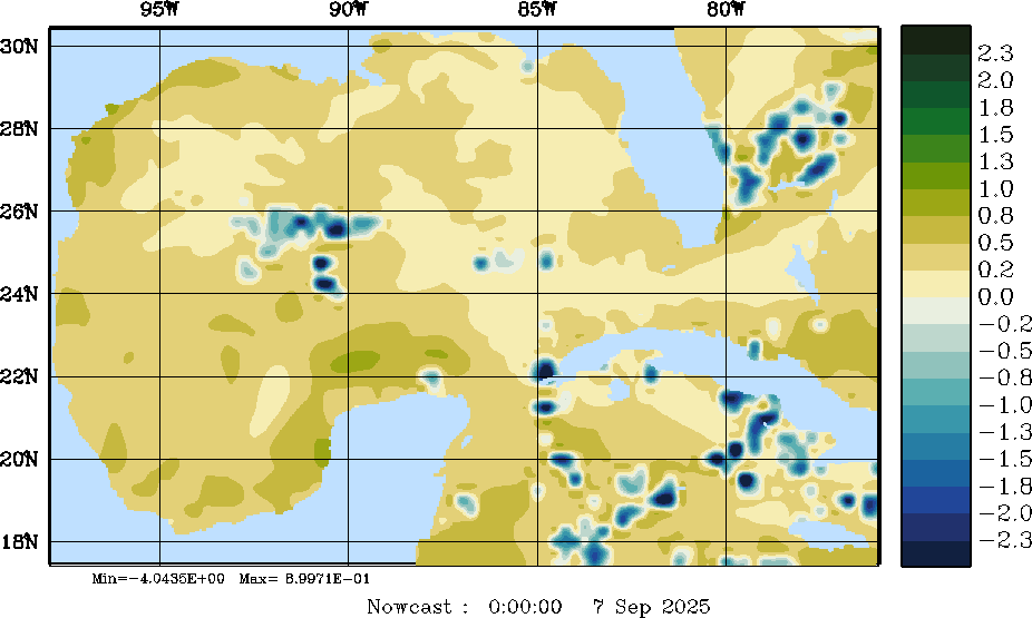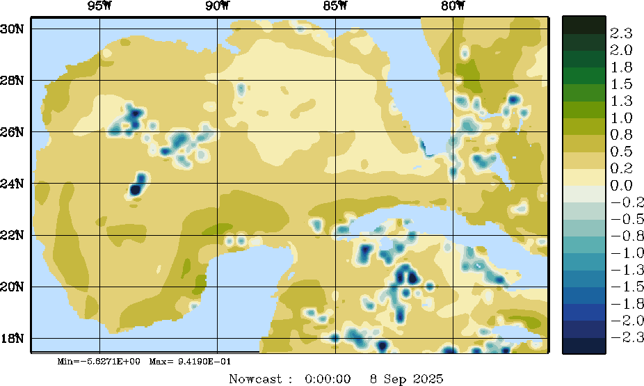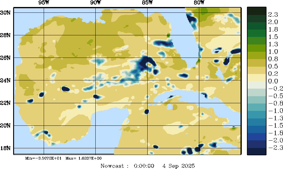 E - P Snapshots (cm/day); processed by MSEAS from merged NCEP fields |