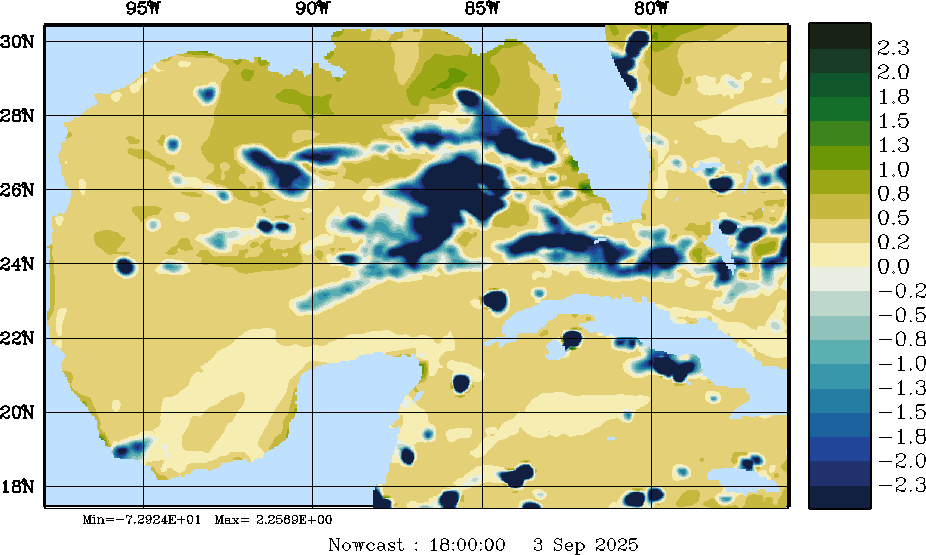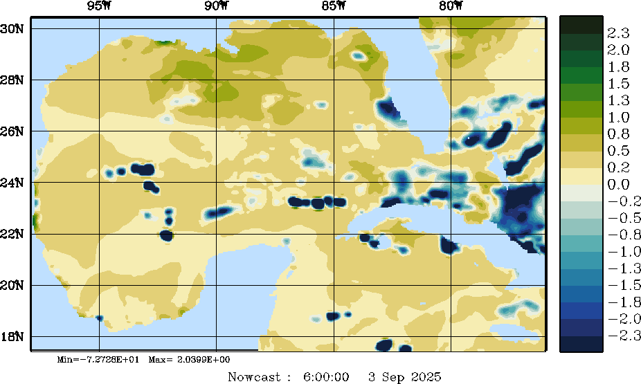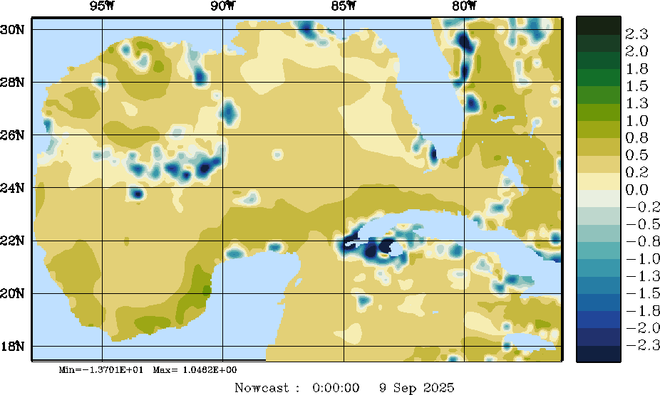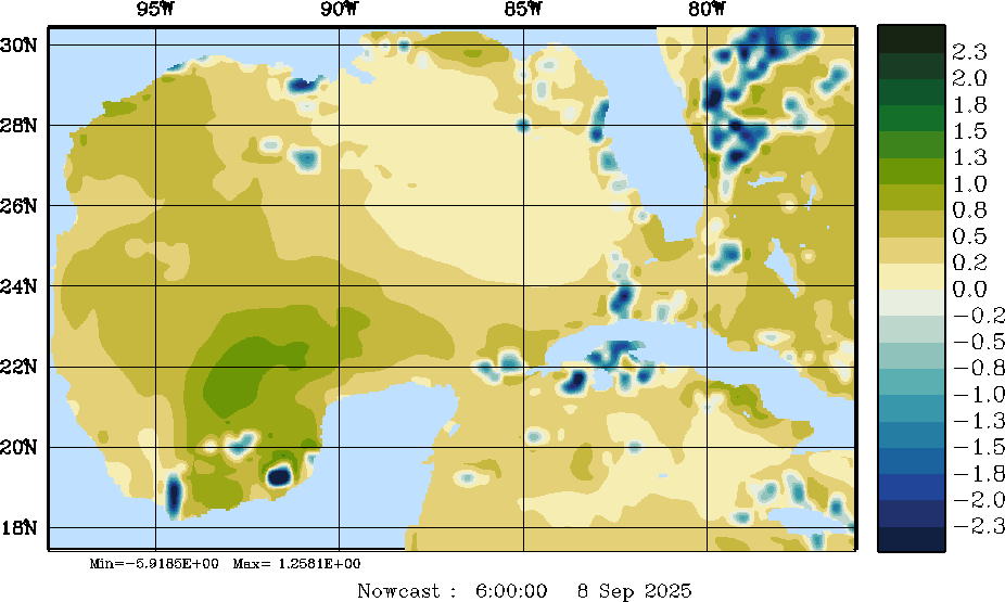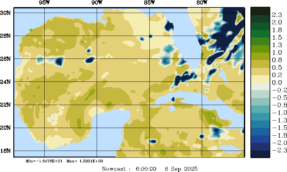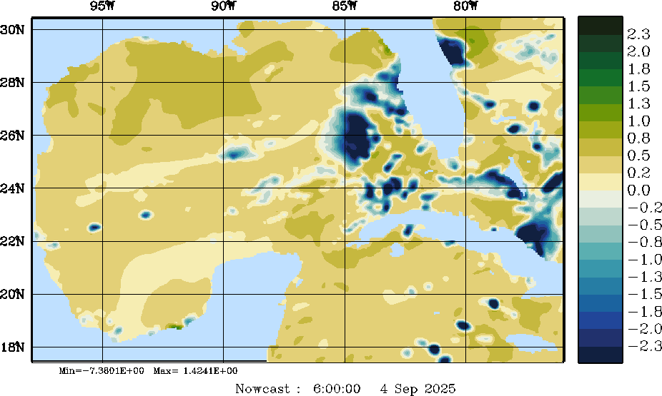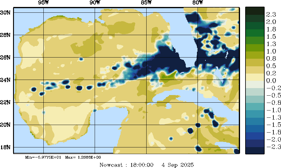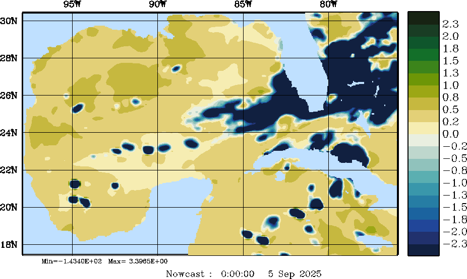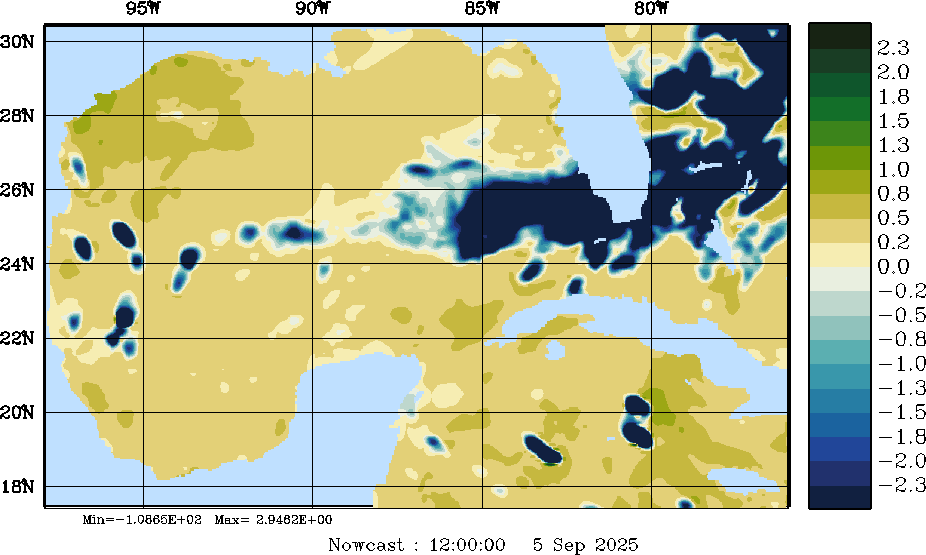 E - P Snapshots (cm/day); processed by MSEAS from merged NCEP fields |