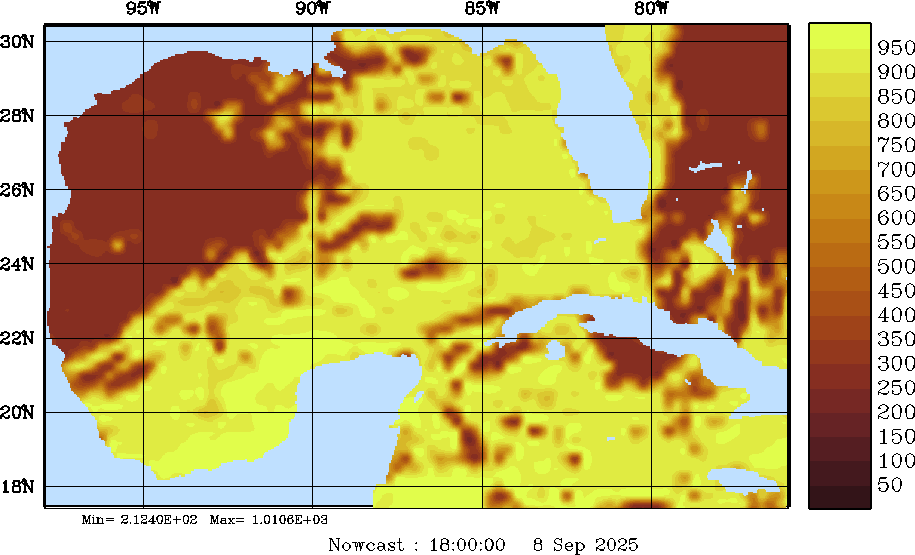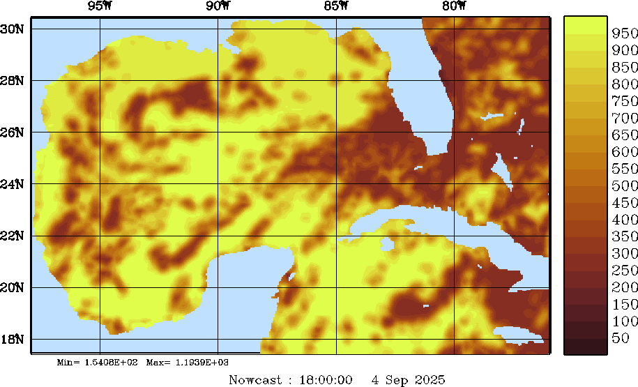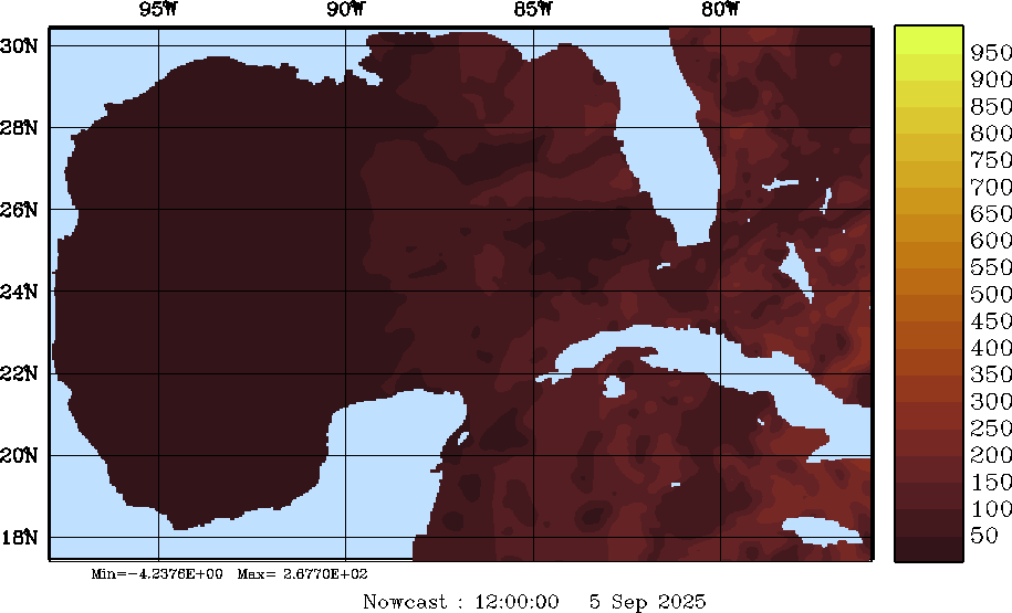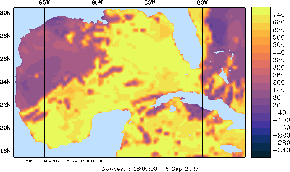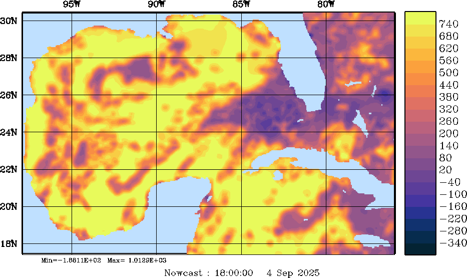 SW Radiation Snapshots (W/m2); processed by MSEAS from merged NCEP fields |