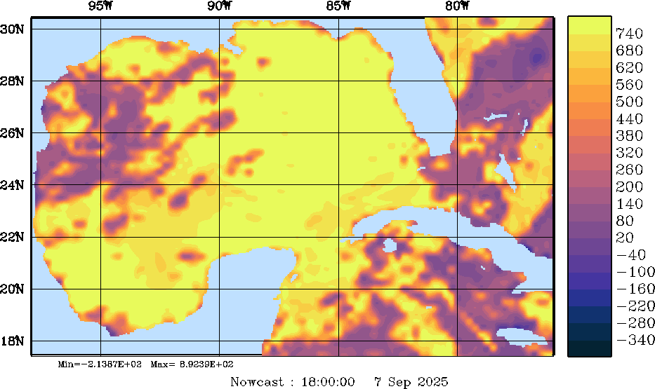 Net Heat Flux Snapshots (W/m2); processed by MSEAS from merged NCEP fields |