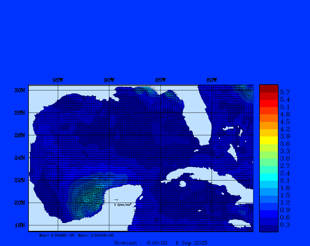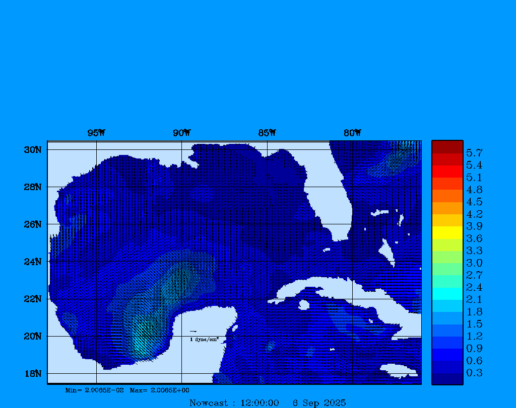 Wind Stress Snapshots (dynes/cm2); processed by MSEAS from merged NCEP fields |