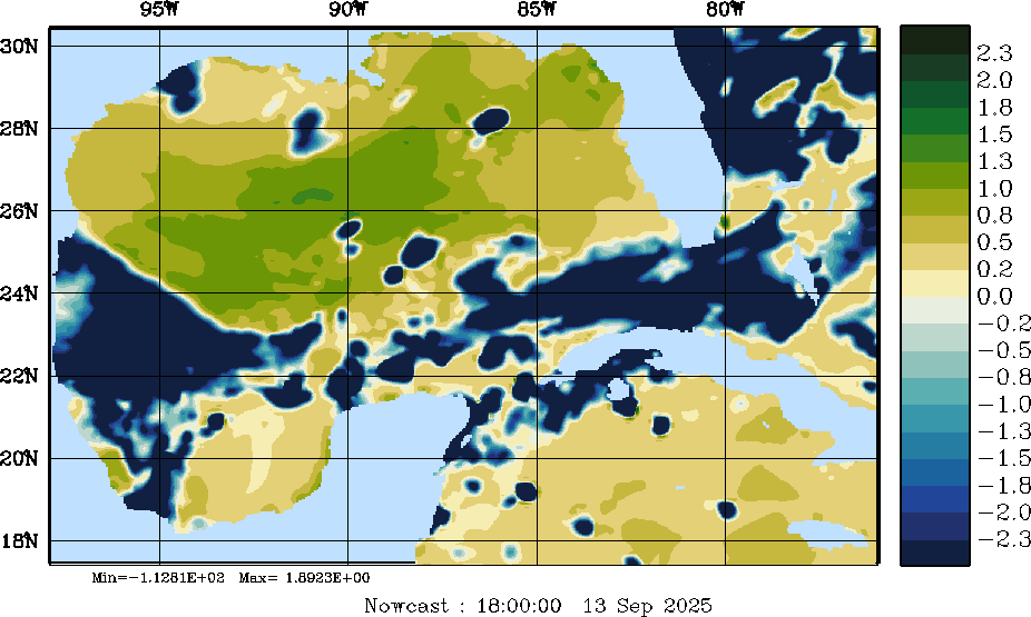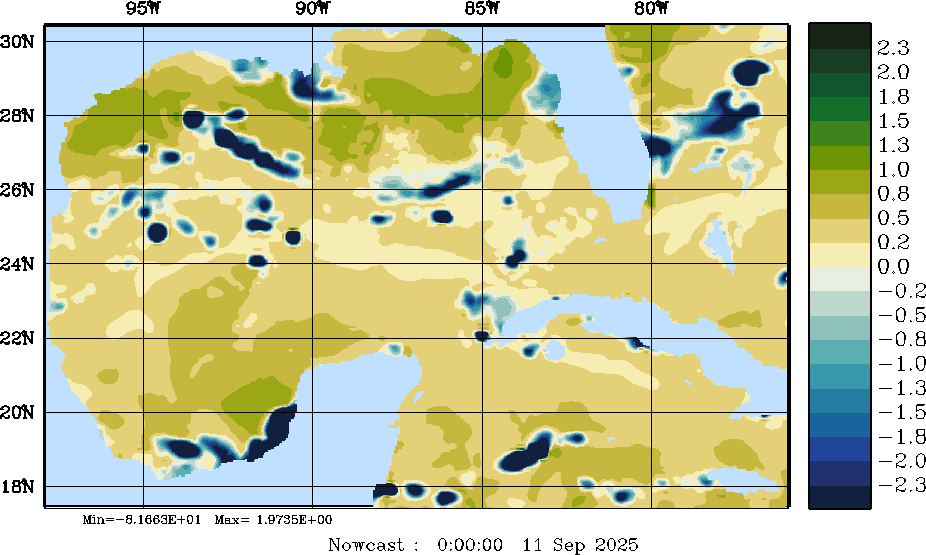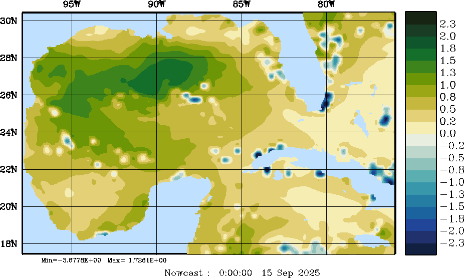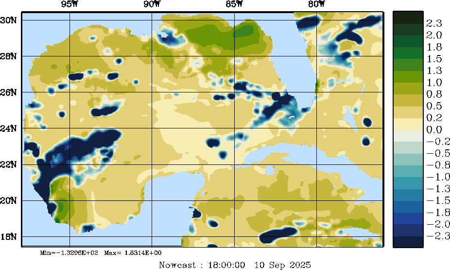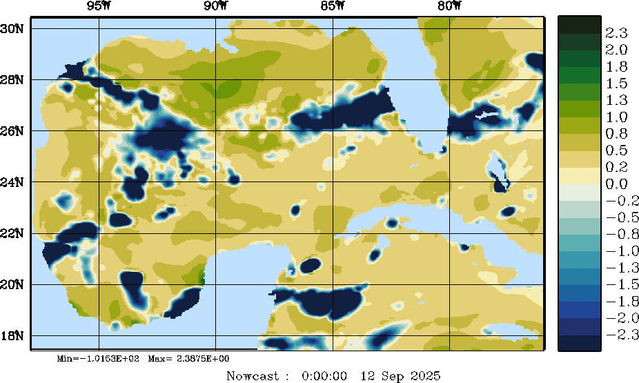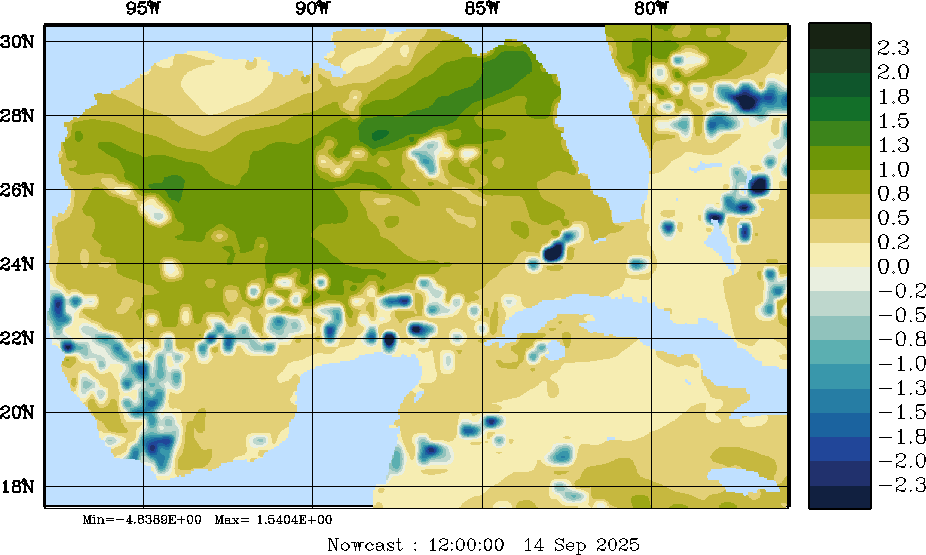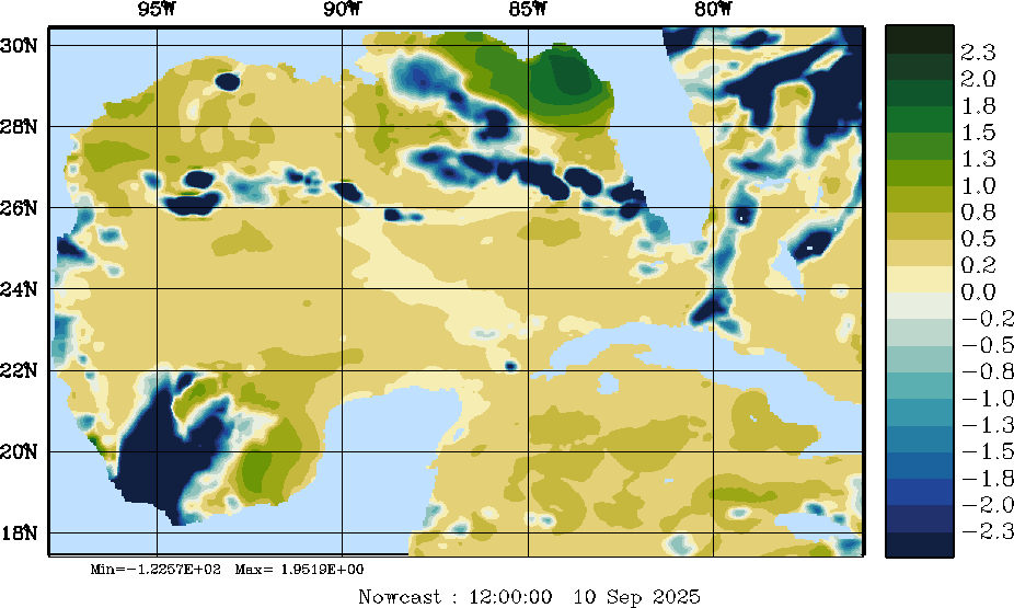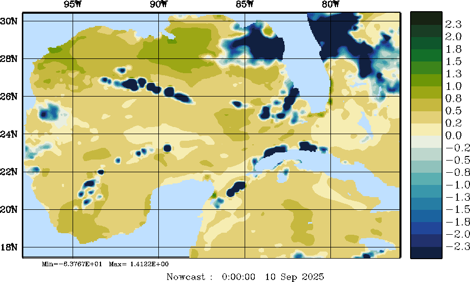 E - P Snapshots (cm/day); processed by MSEAS from merged NCEP fields |