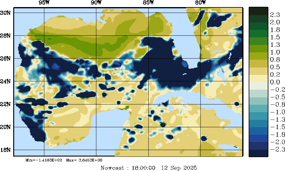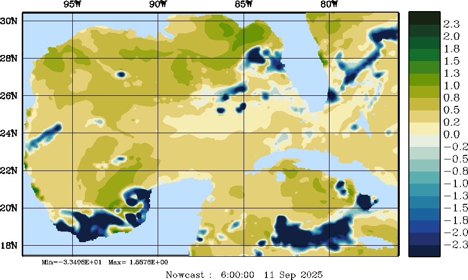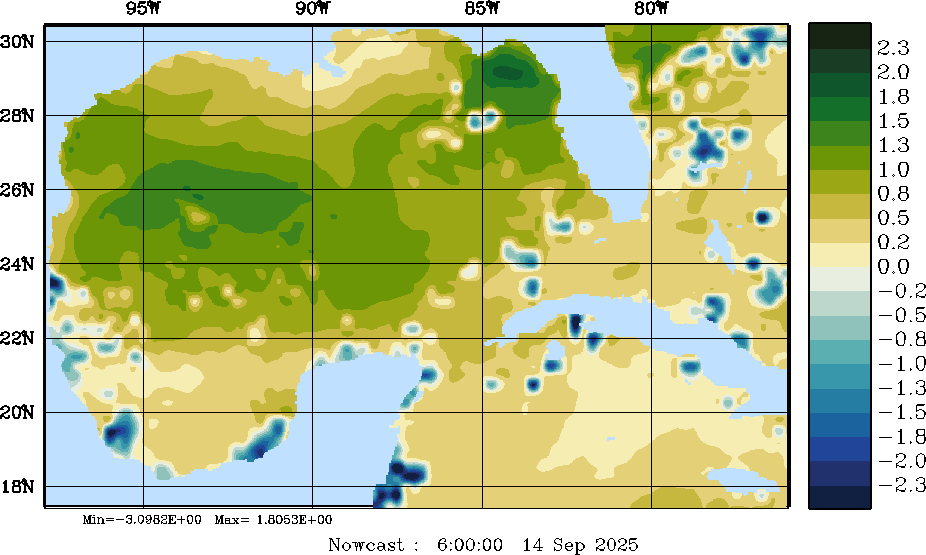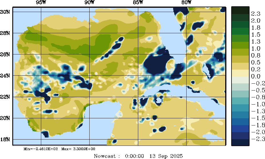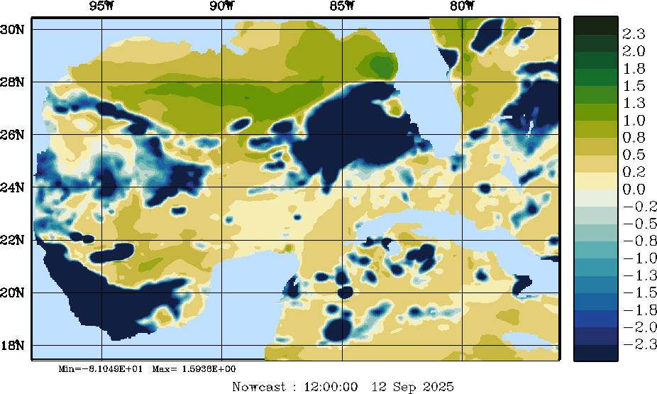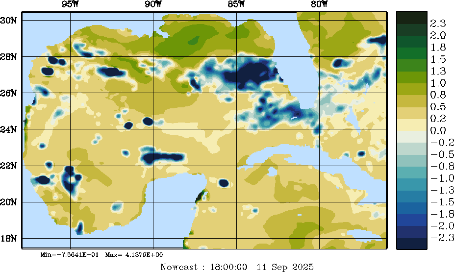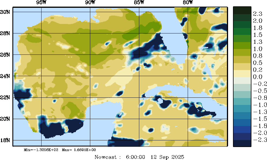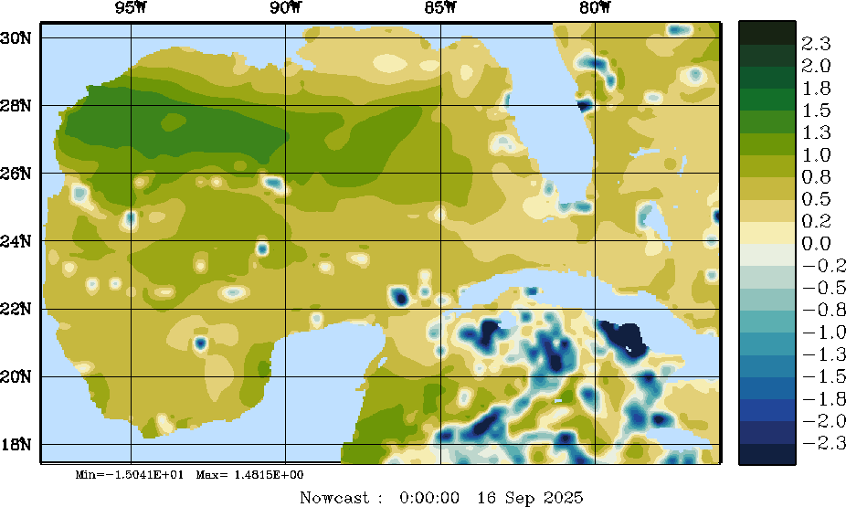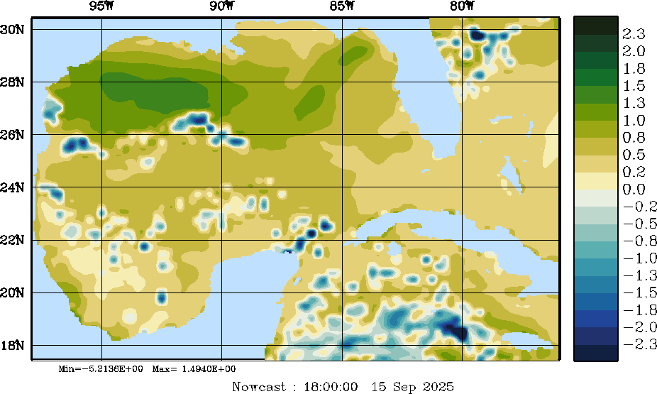 E - P Snapshots (cm/day); processed by MSEAS from merged NCEP fields |