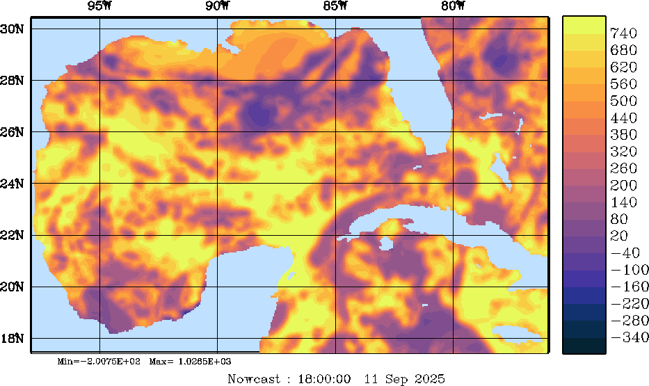 SW Radiation Snapshots (W/m2); processed by MSEAS from merged NCEP fields |