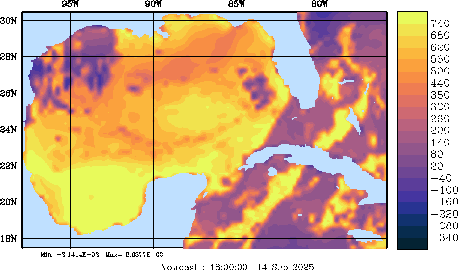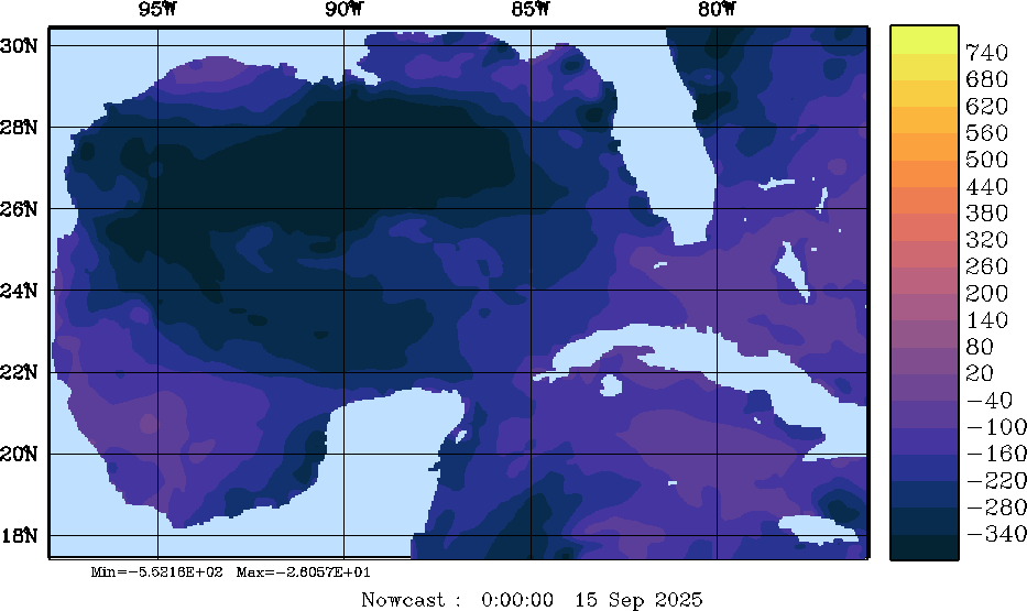 Net Heat Flux Snapshots (W/m2); processed by MSEAS from merged NCEP fields |