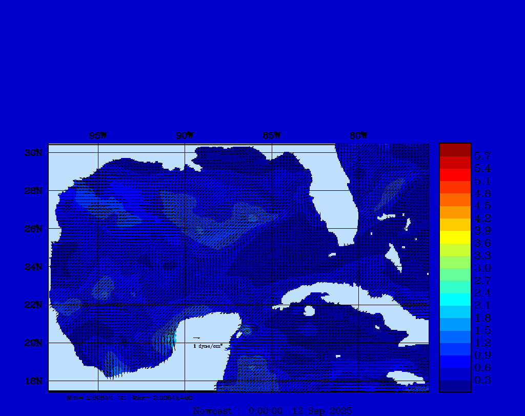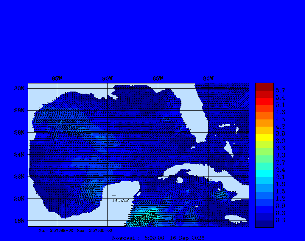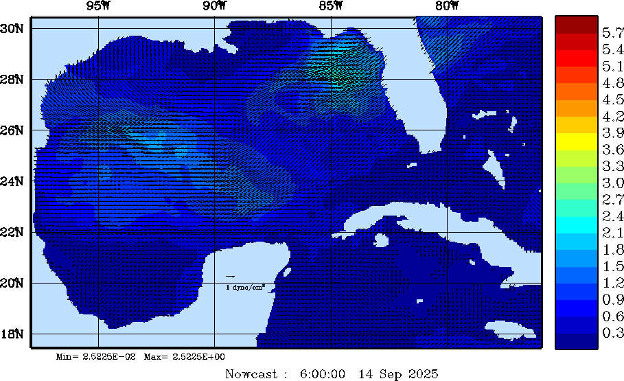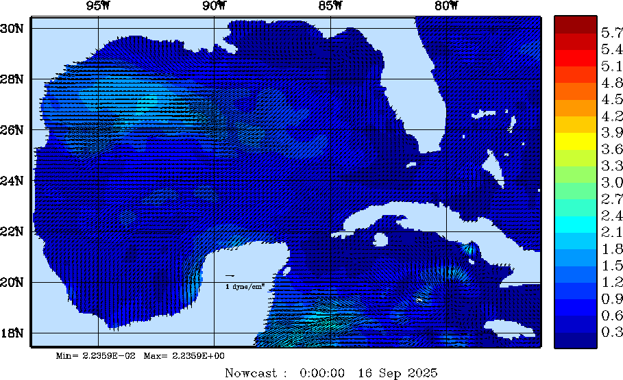 Wind Stress Snapshots (dynes/cm2); processed by MSEAS from merged NCEP fields |