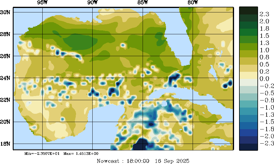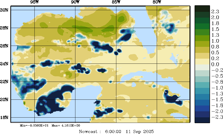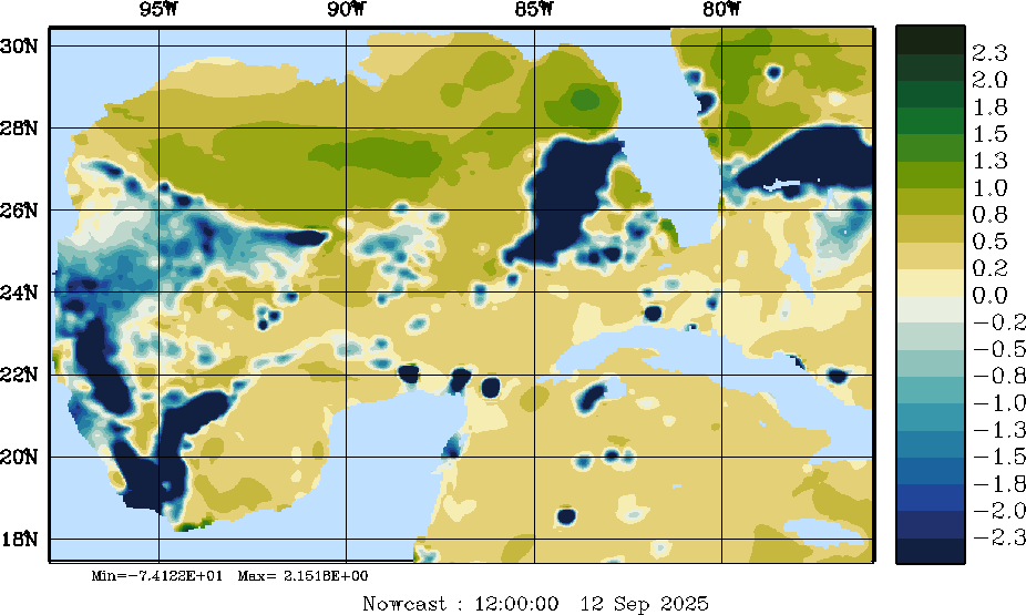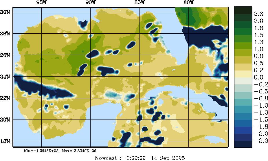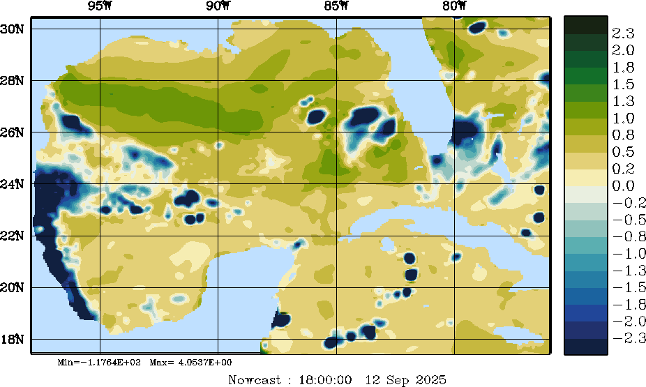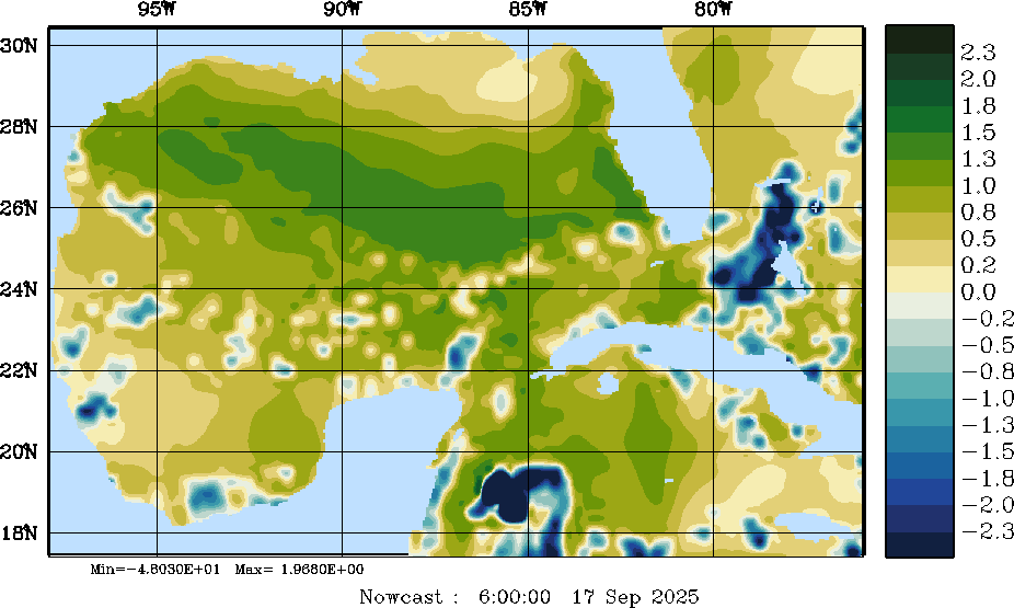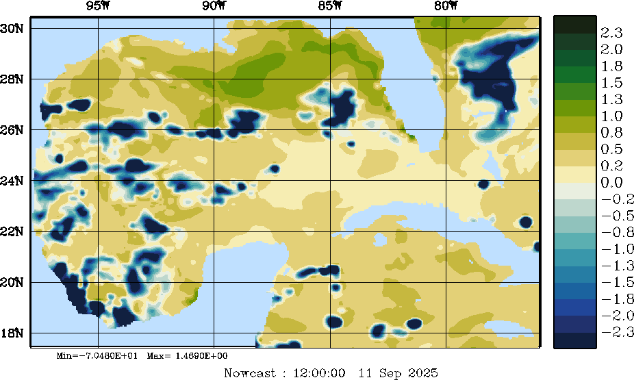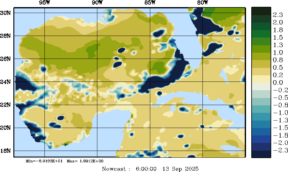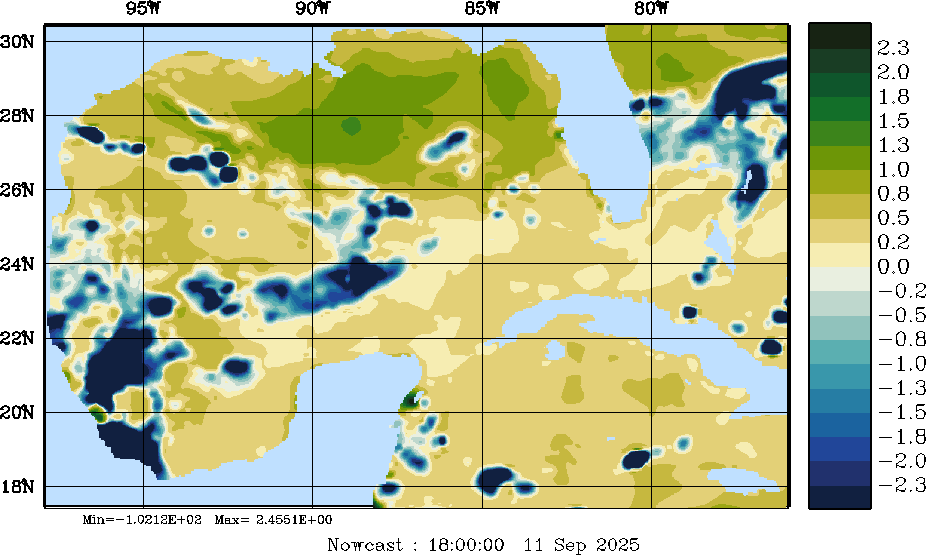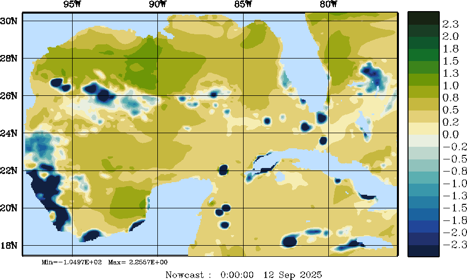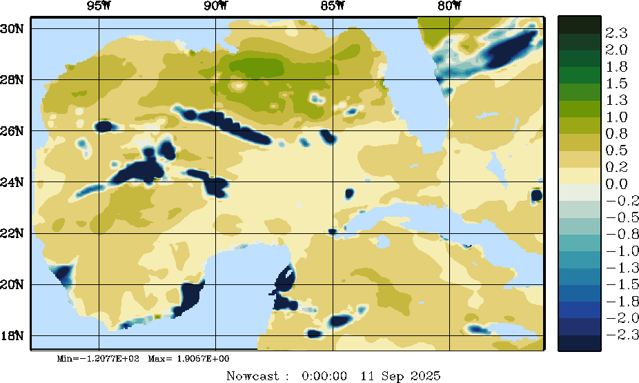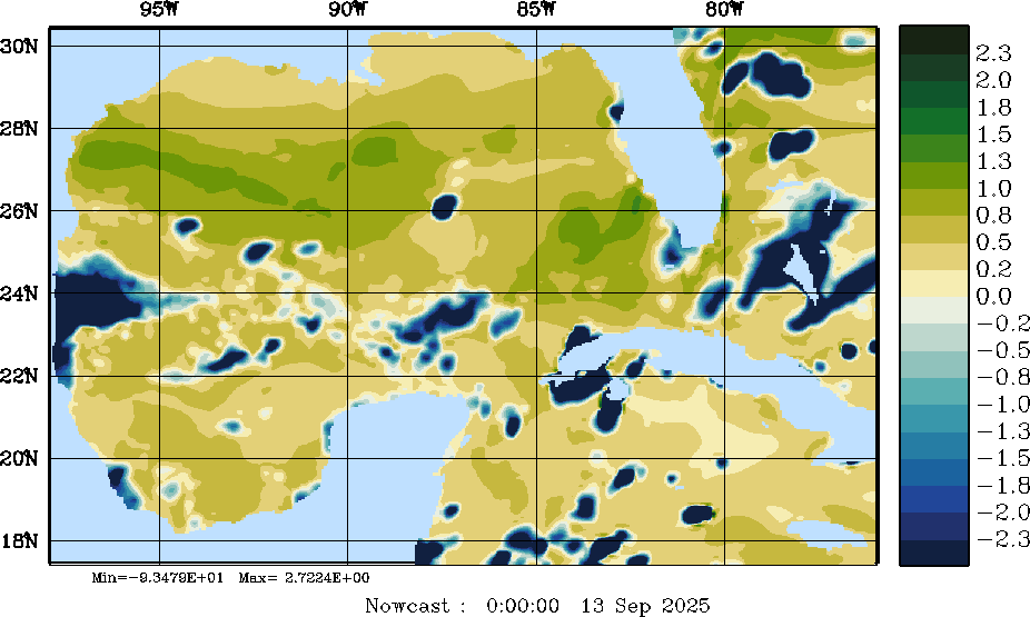 | E - P Snapshots (cm/day); processed by MSEAS from merged NCEP fields |
