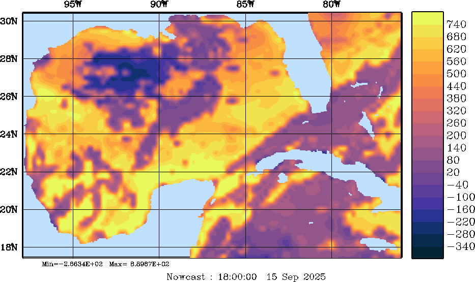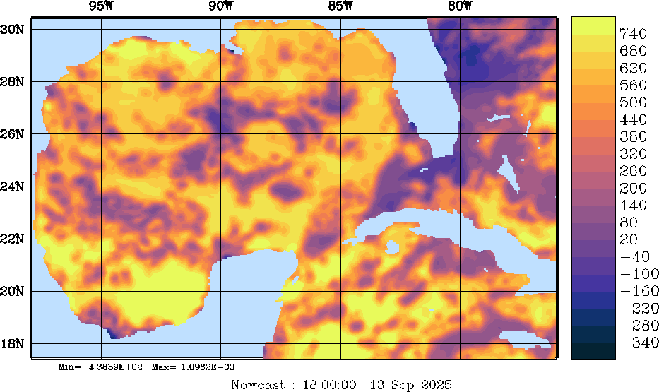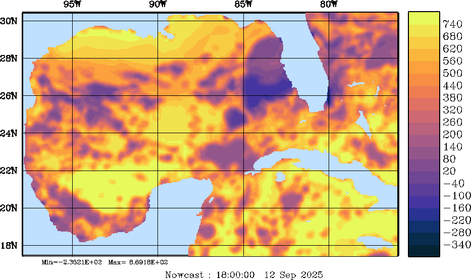 | SW Radiation Snapshots (W/m2); processed by MSEAS from merged NCEP fields |