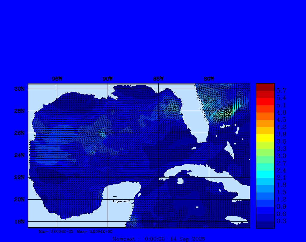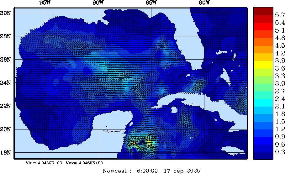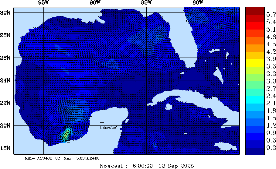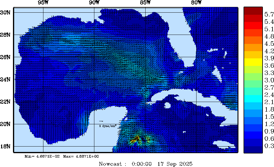 | Wind Stress Snapshots (dynes/cm2); processed by MSEAS from merged NCEP fields |