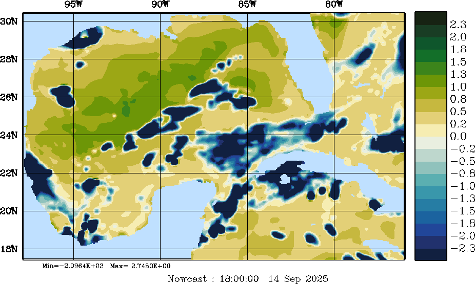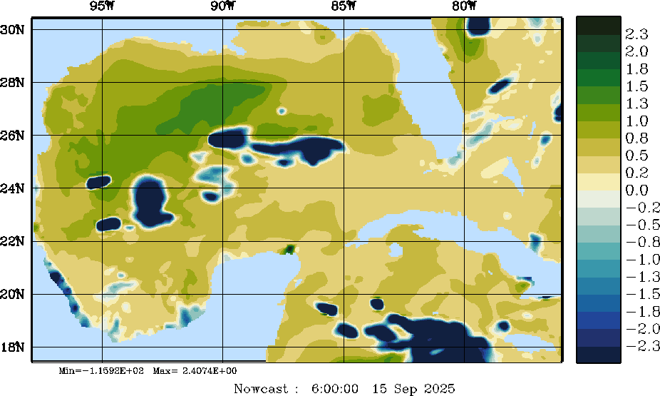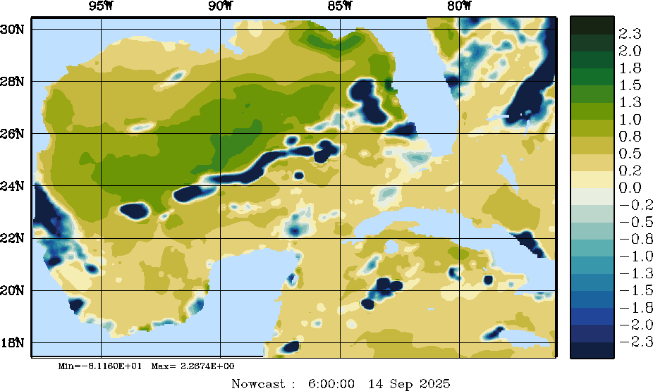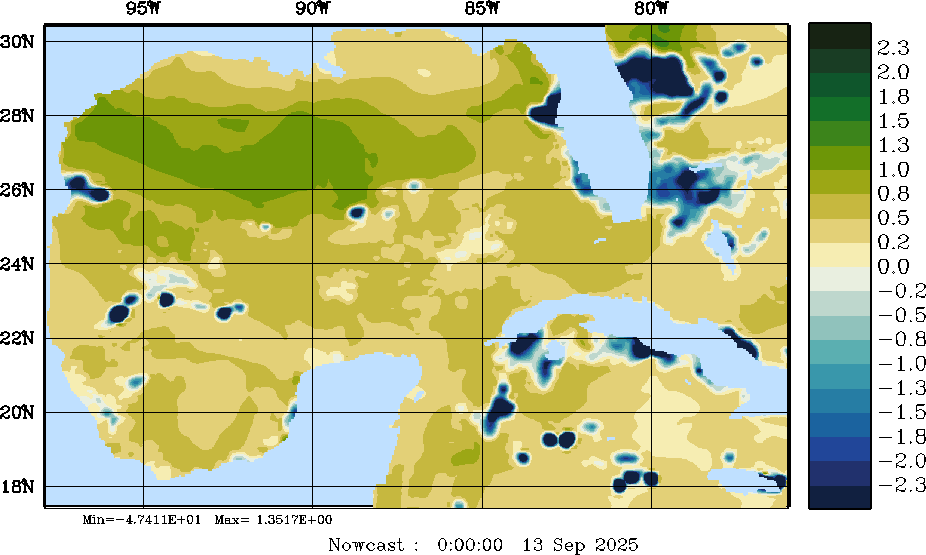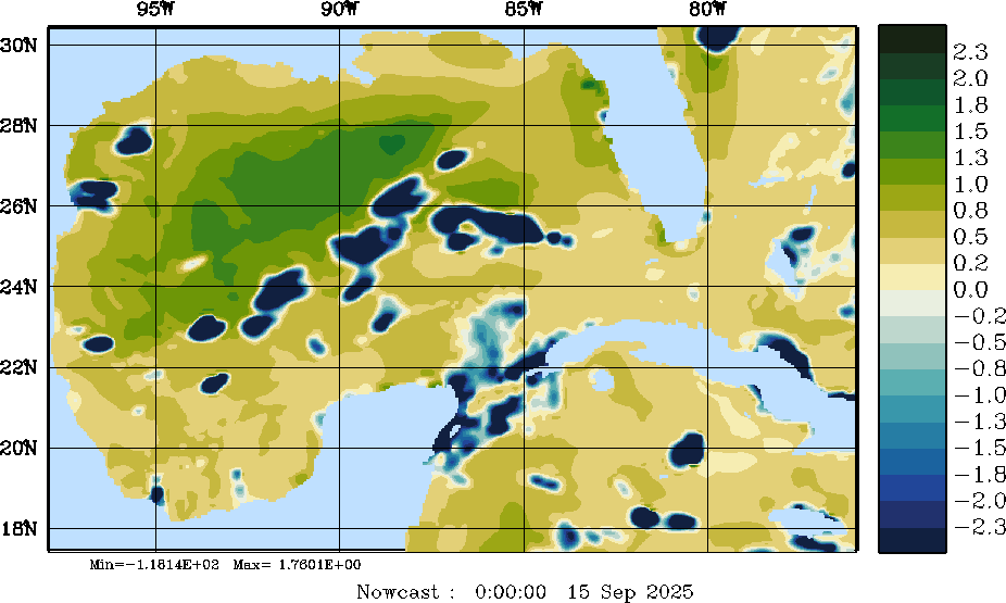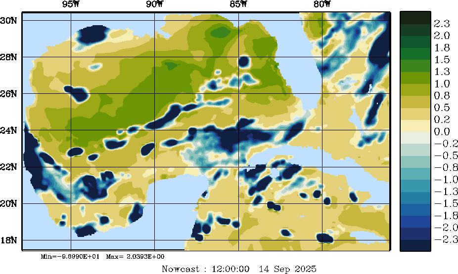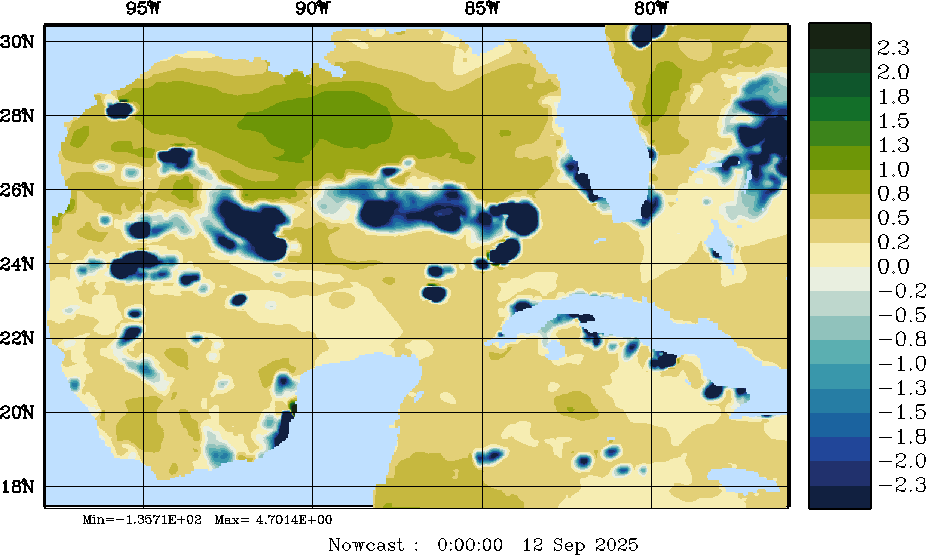 | E - P Snapshots (cm/day); processed by MSEAS from merged NCEP fields |