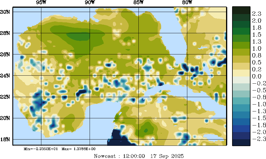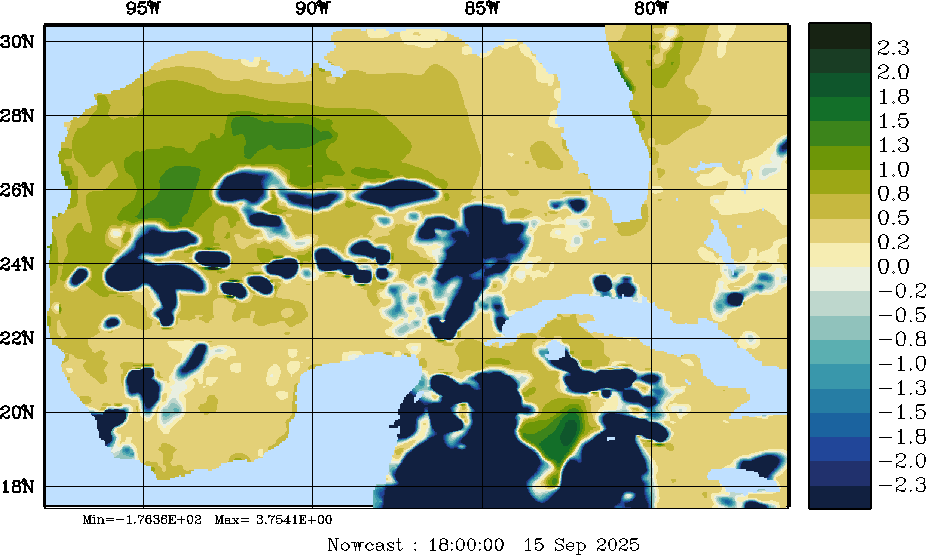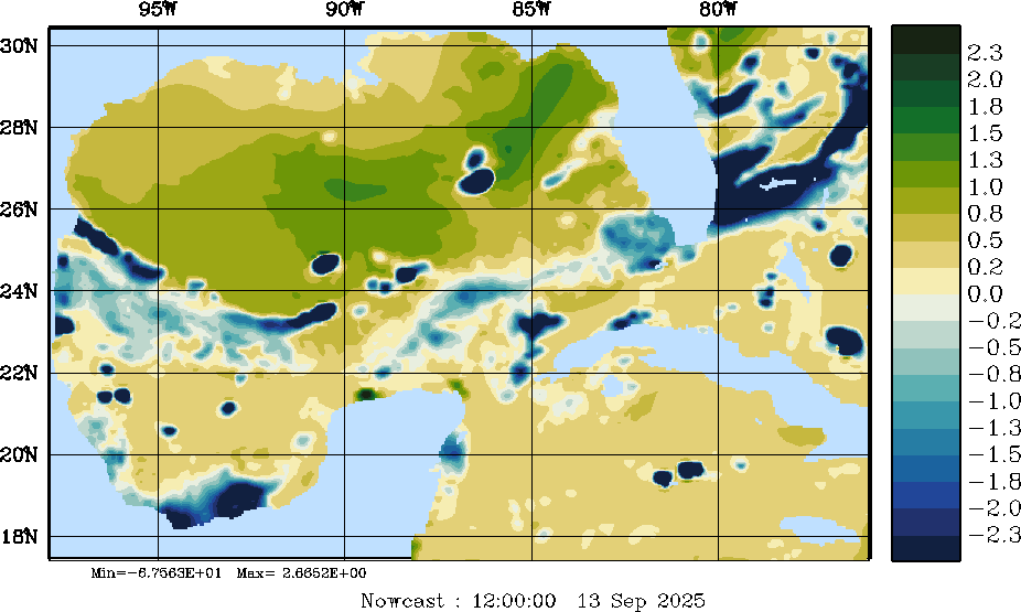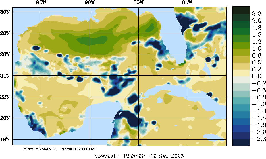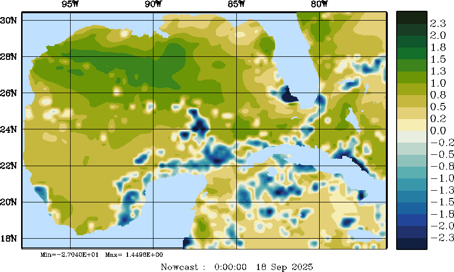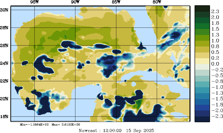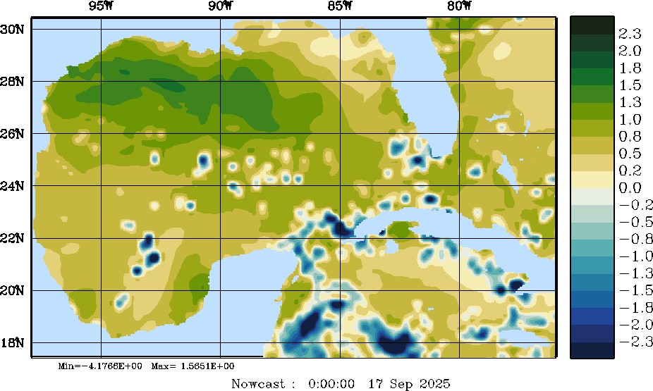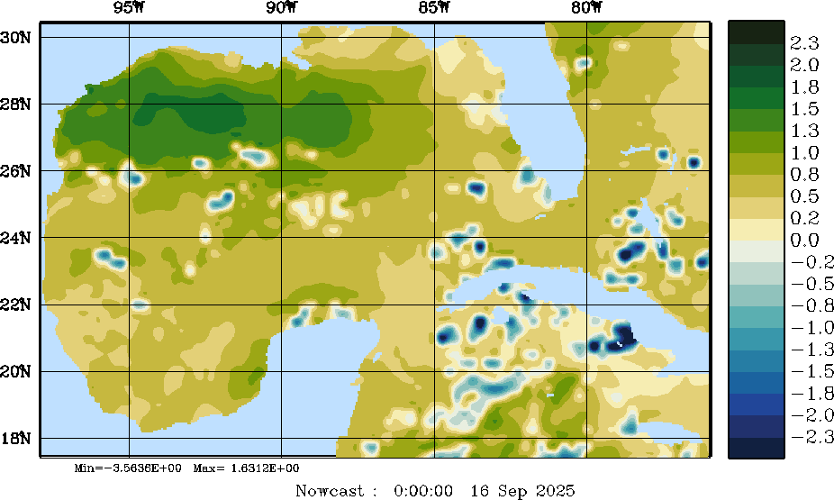 | E - P Snapshots (cm/day); processed by MSEAS from merged NCEP fields |
