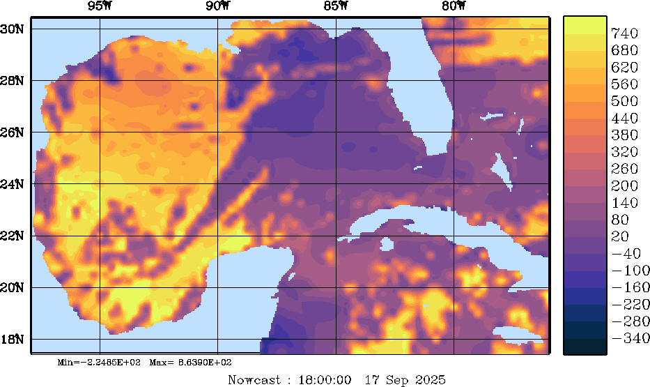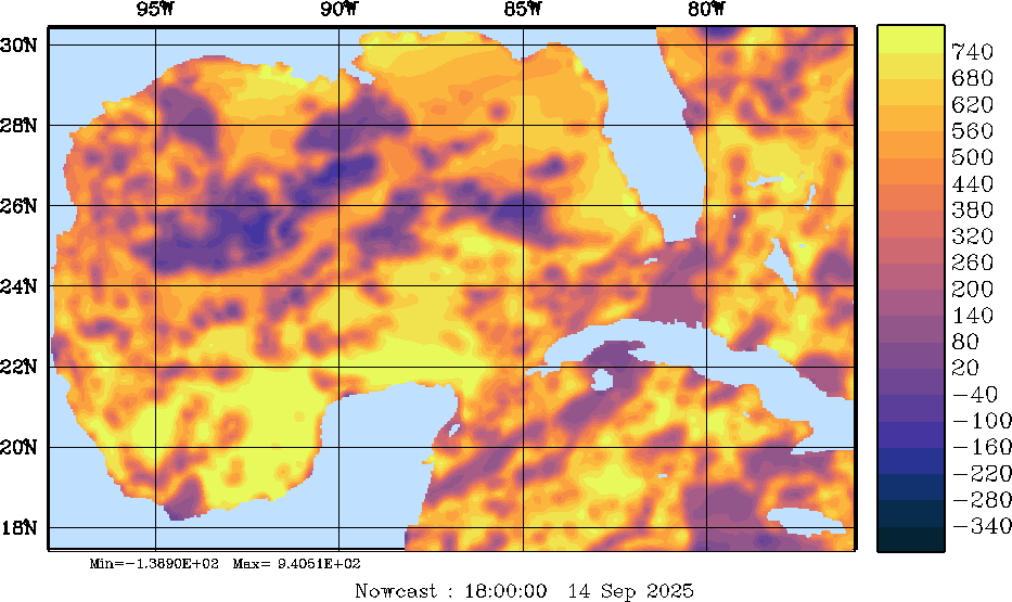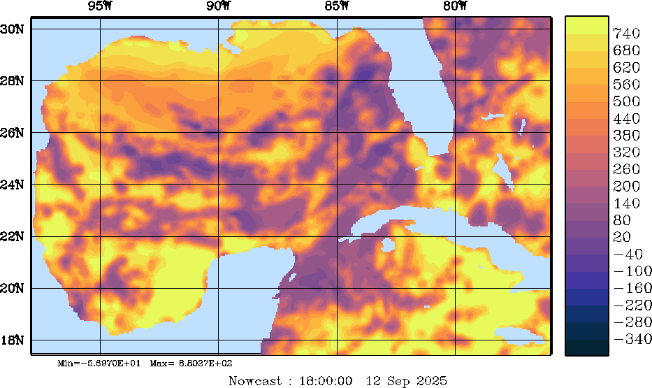 | SW Radiation Snapshots (W/m2); processed by MSEAS from merged NCEP fields |