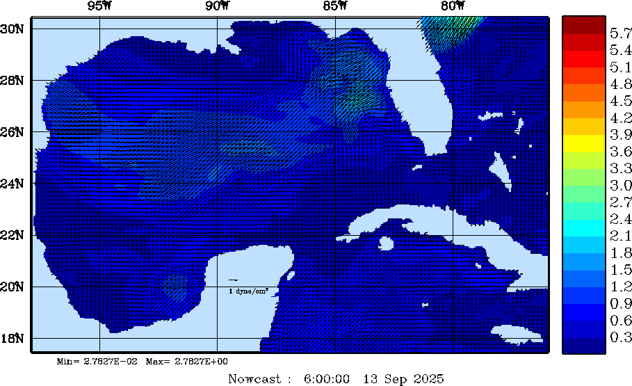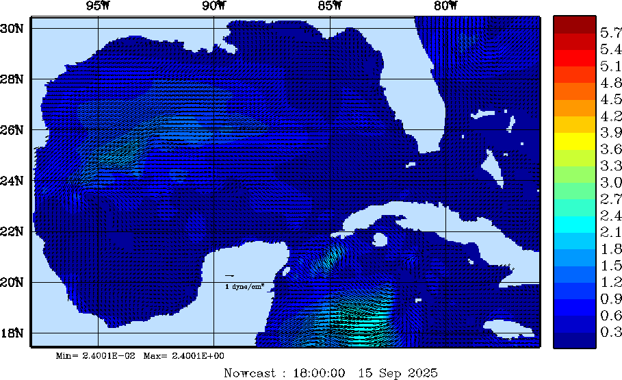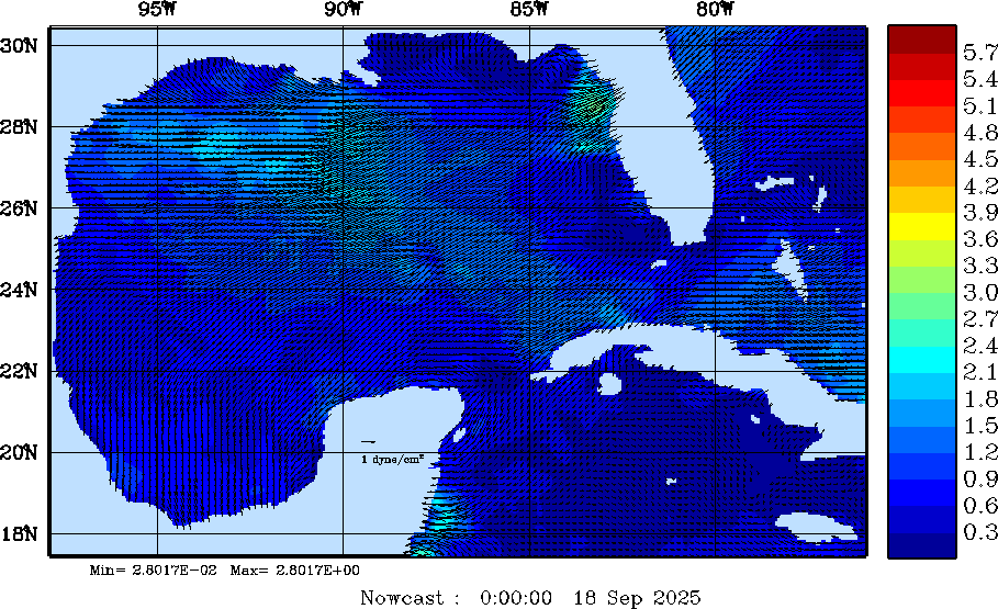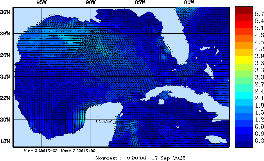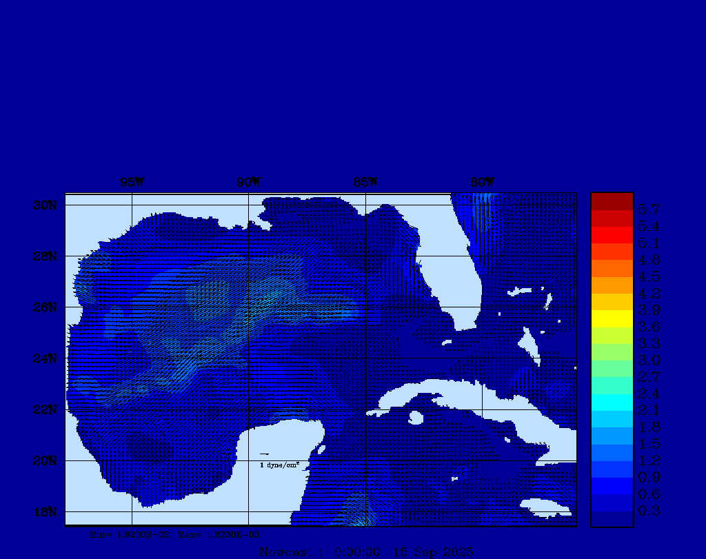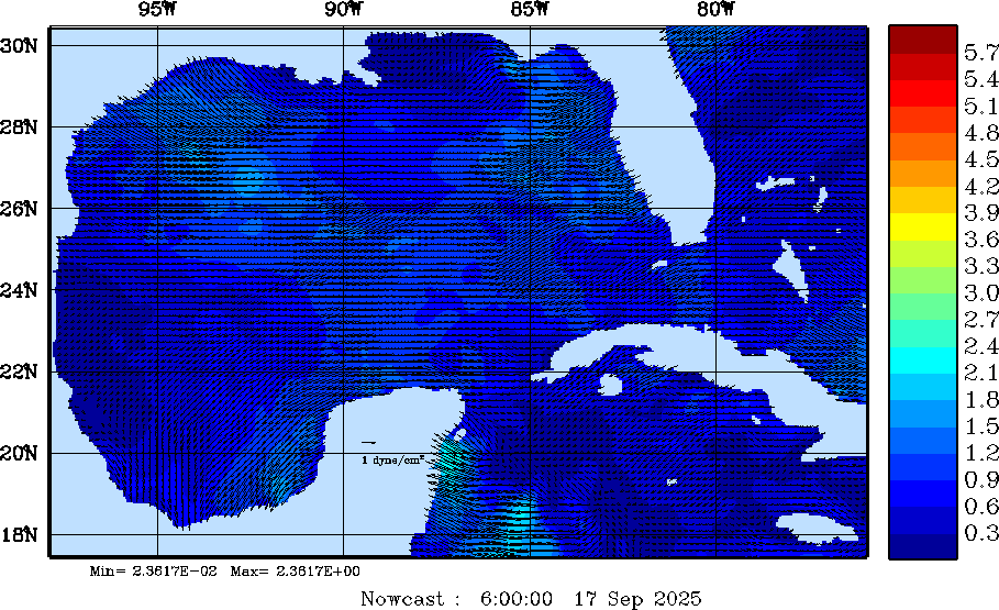 | Wind Stress Snapshots (dynes/cm2); processed by MSEAS from merged NCEP fields |