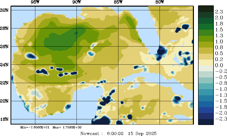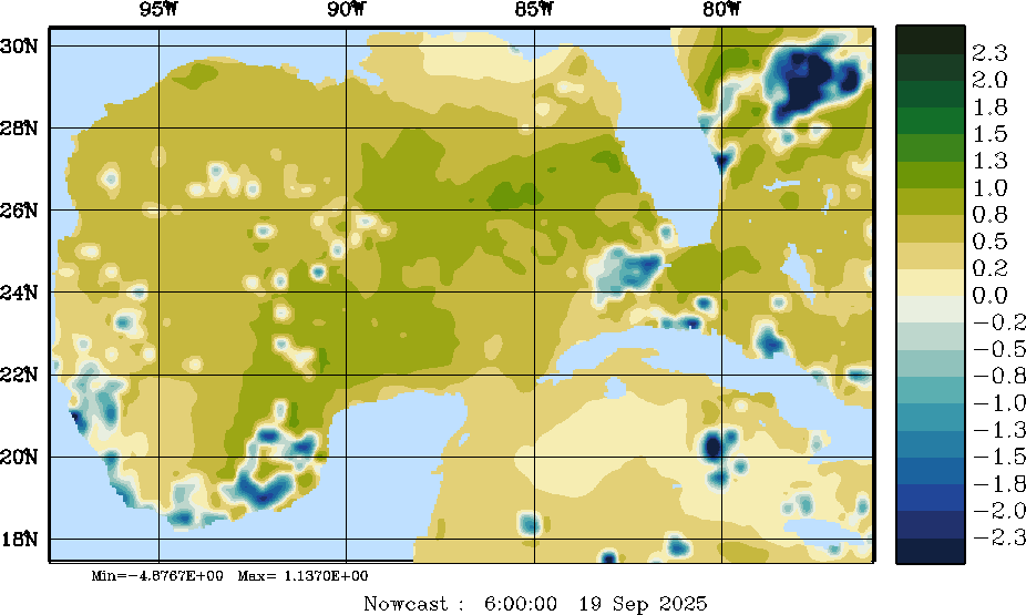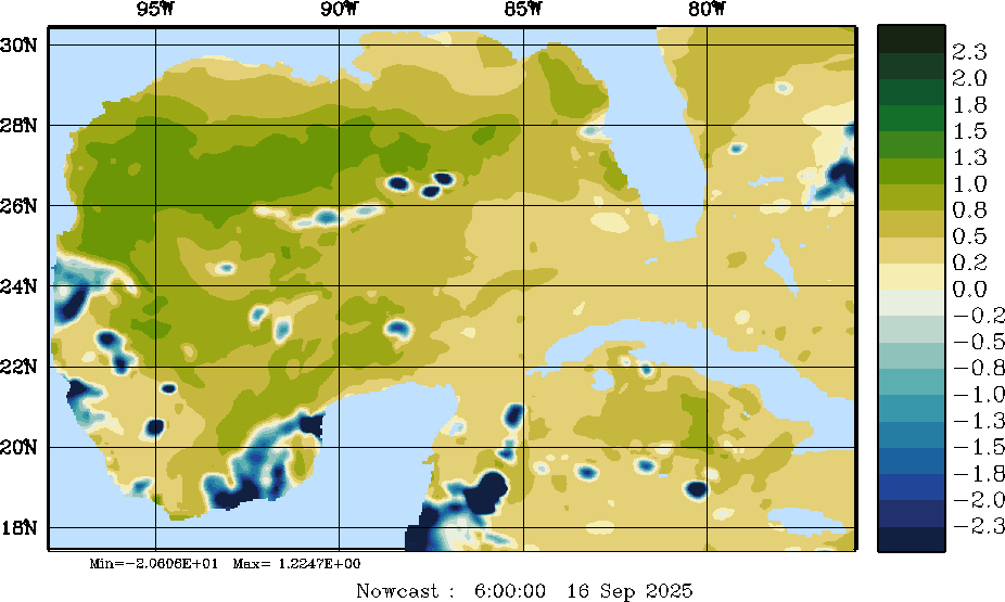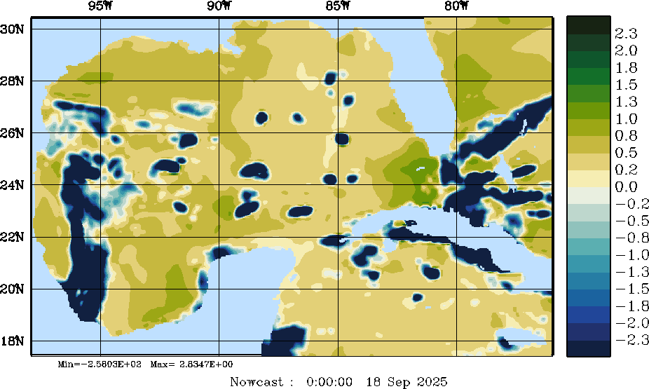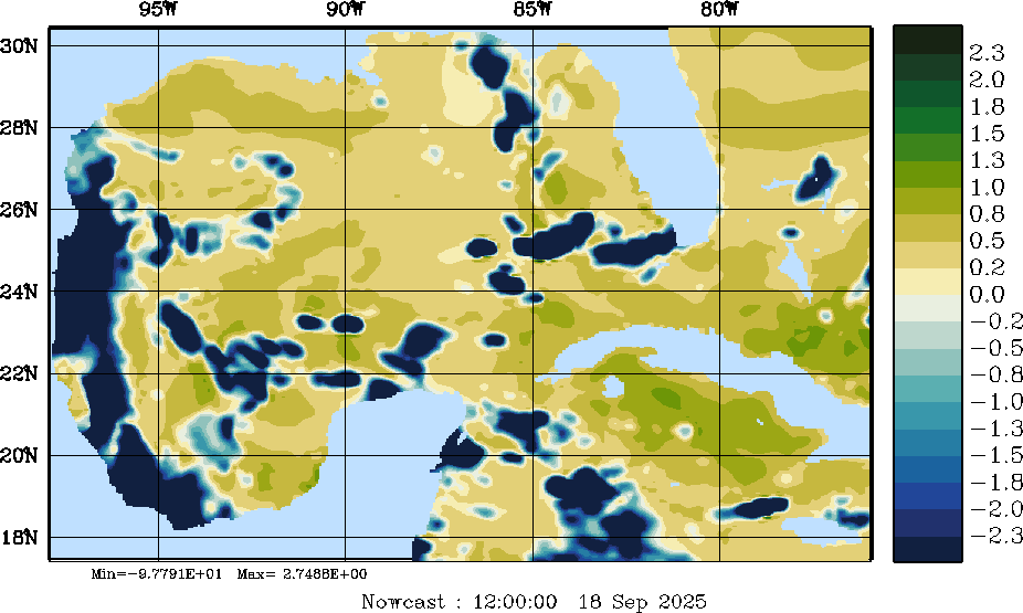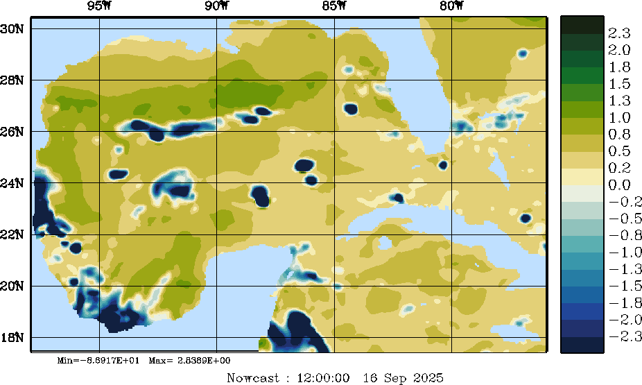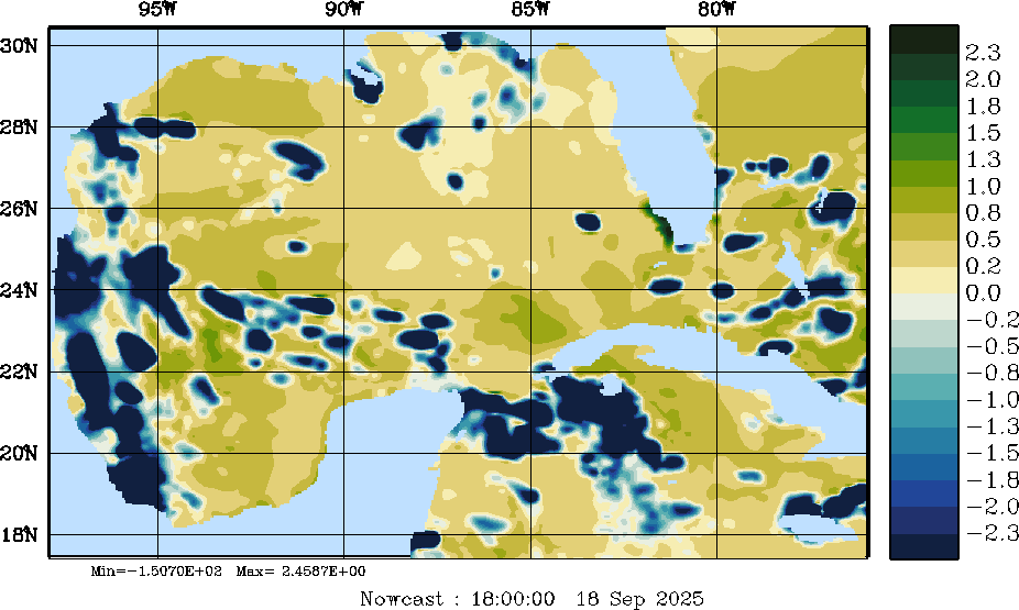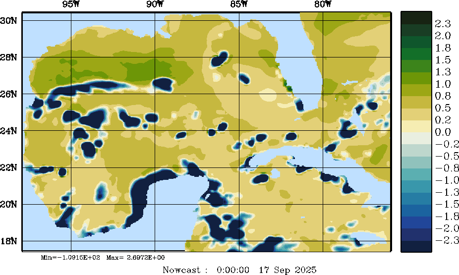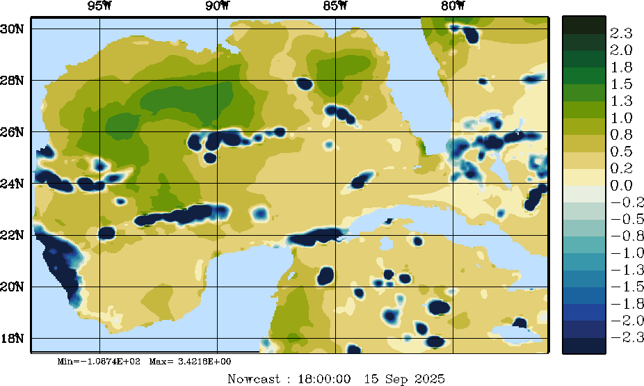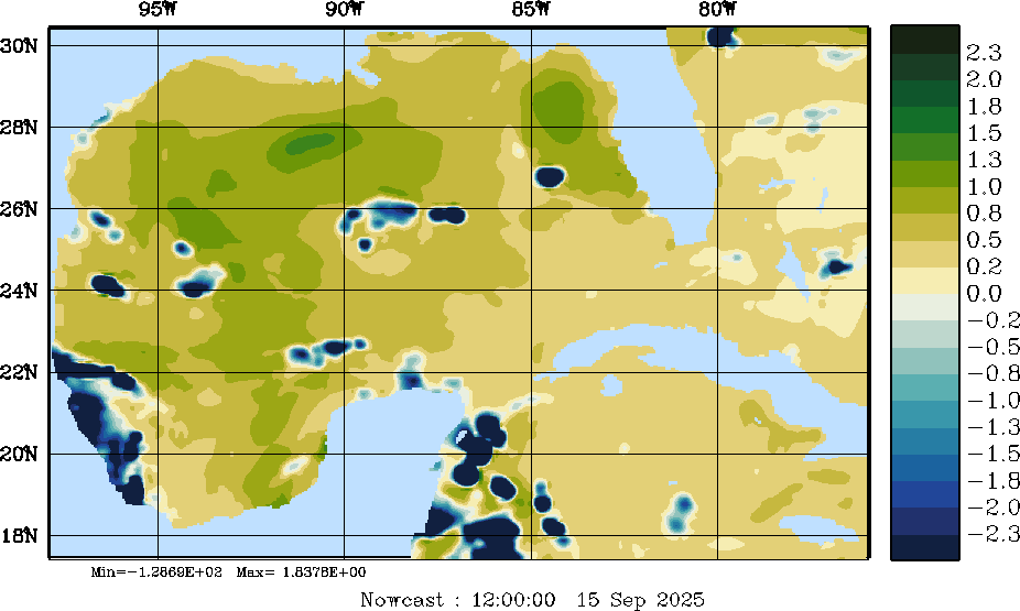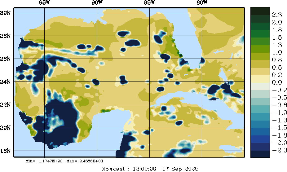 | E - P Snapshots (cm/day); processed by MSEAS from merged NCEP fields |