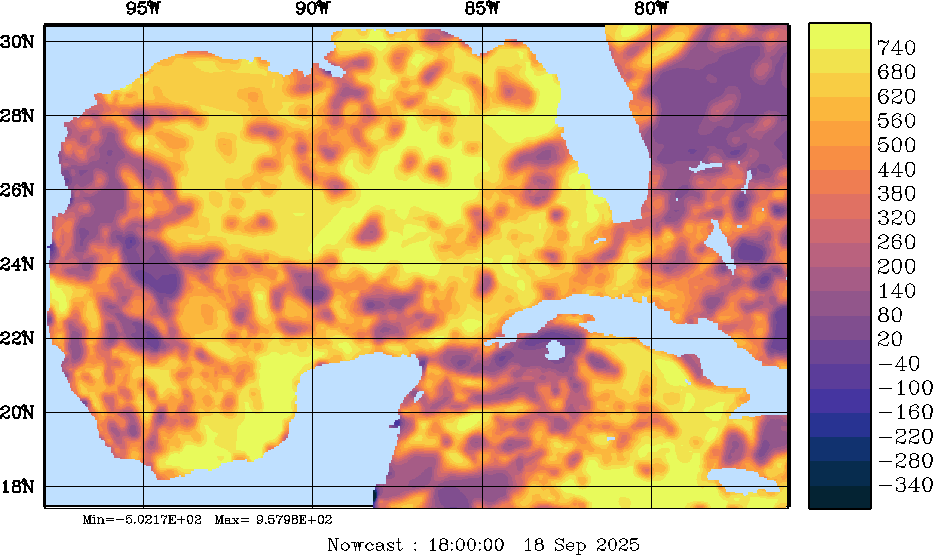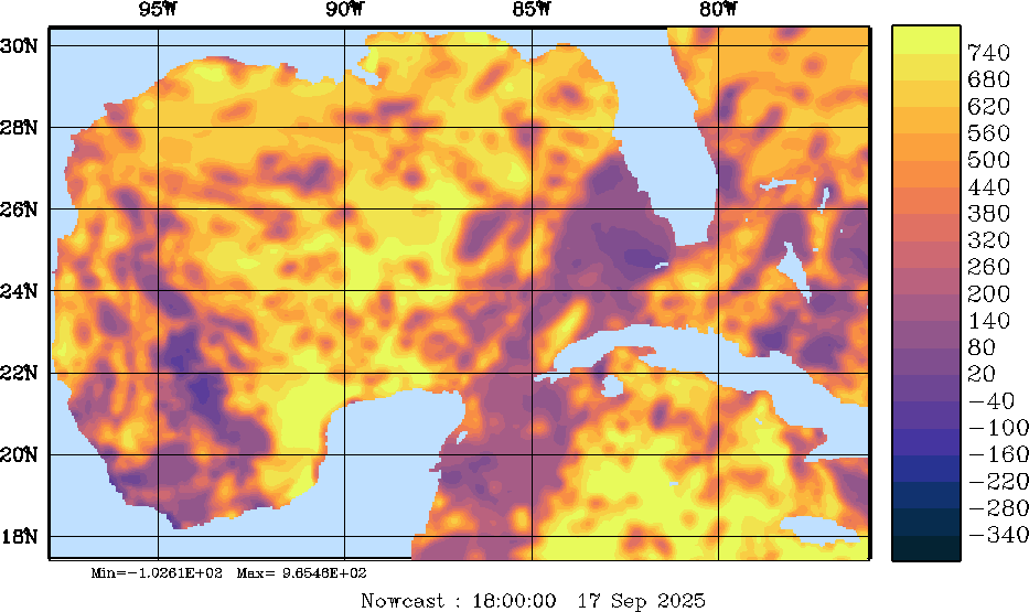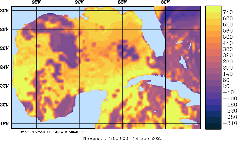 | SW Radiation Snapshots (W/m2); processed by MSEAS from merged NCEP fields |