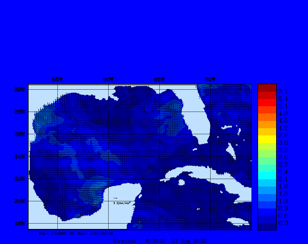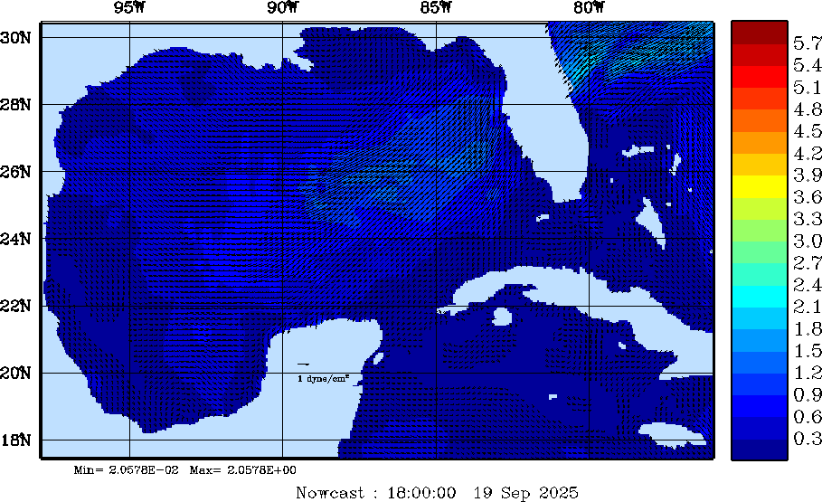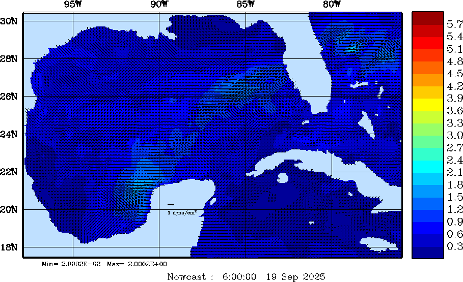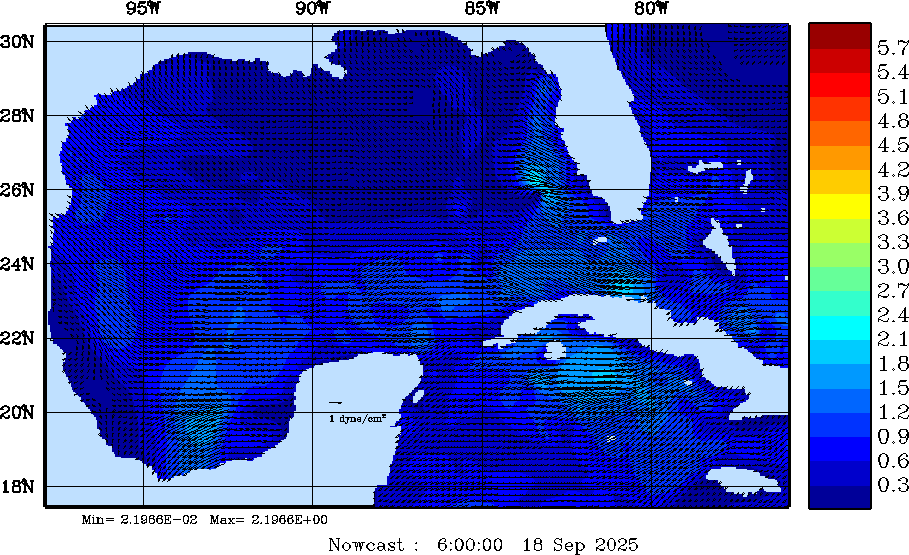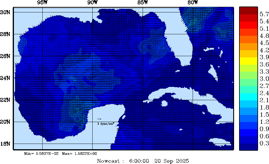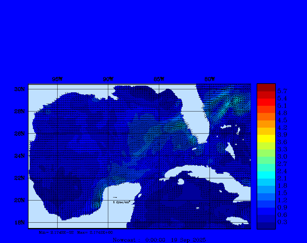 | Wind Stress Snapshots (dynes/cm2); processed by MSEAS from merged NCEP fields |